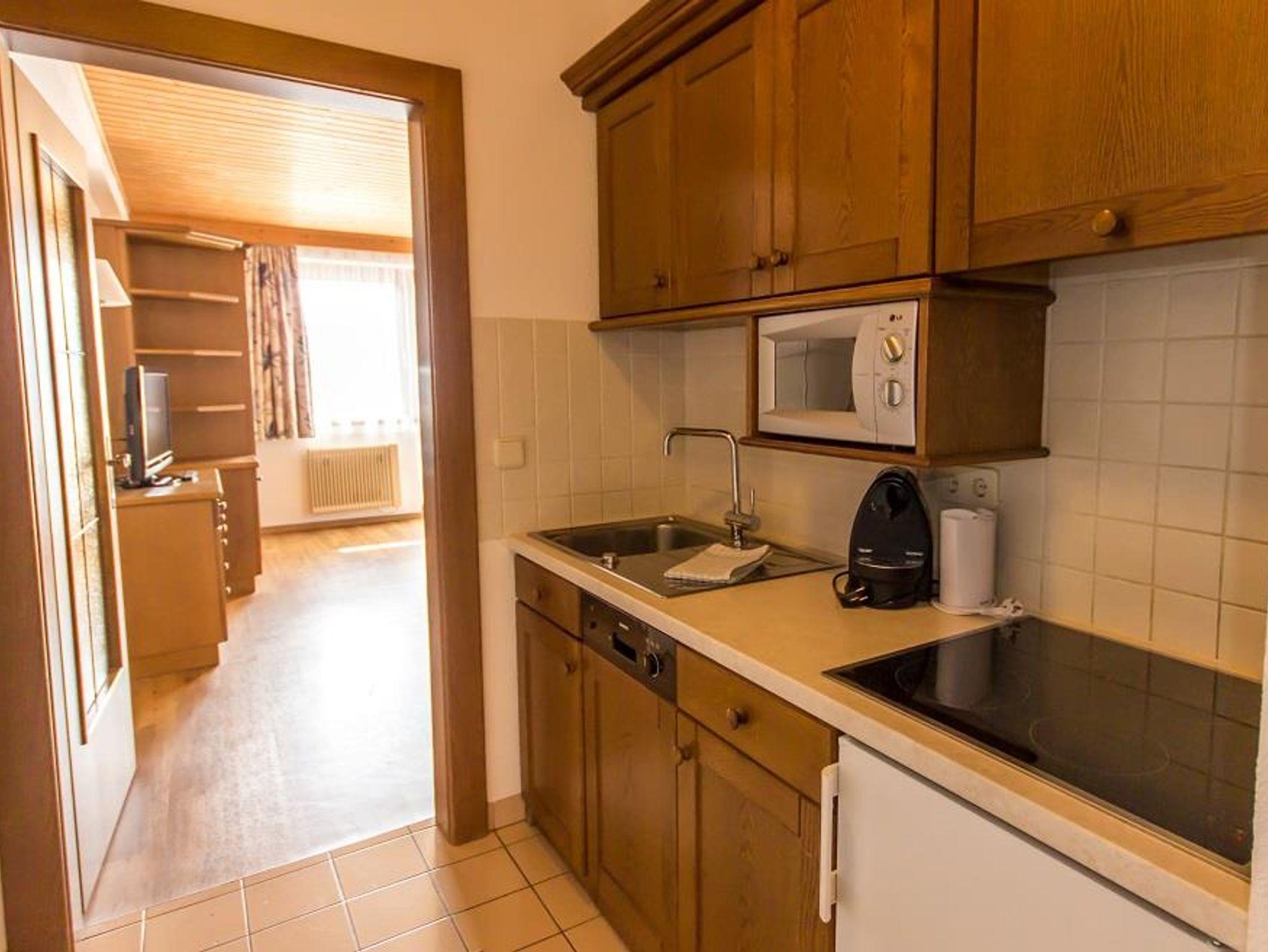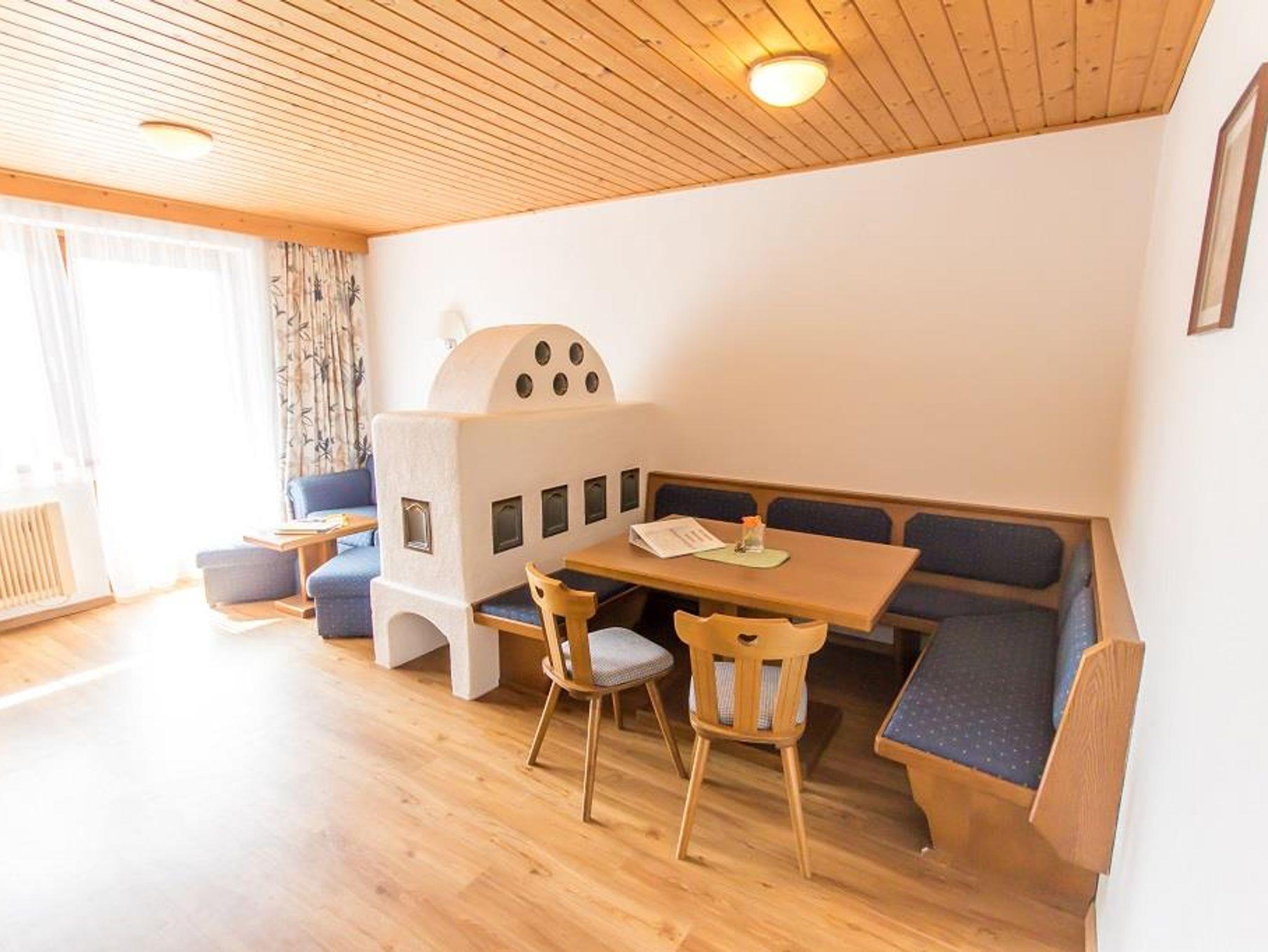 bestehend aus zwei Schlafräumen, einem Wohnraum mit Kachelofen und Ausziehcouch, Kochnische mit Geschirrspüler, Espresso Kaffeemaschine und Mikrowelle, Bad, WC getrennt LCD-TV mit Radio, Süd- und Westterrasse, Nichtraucherappartement