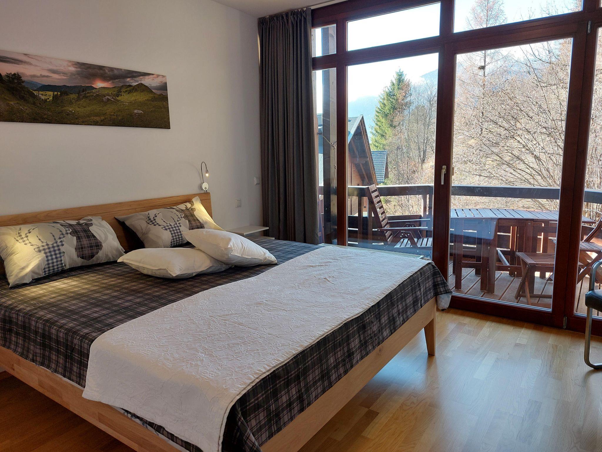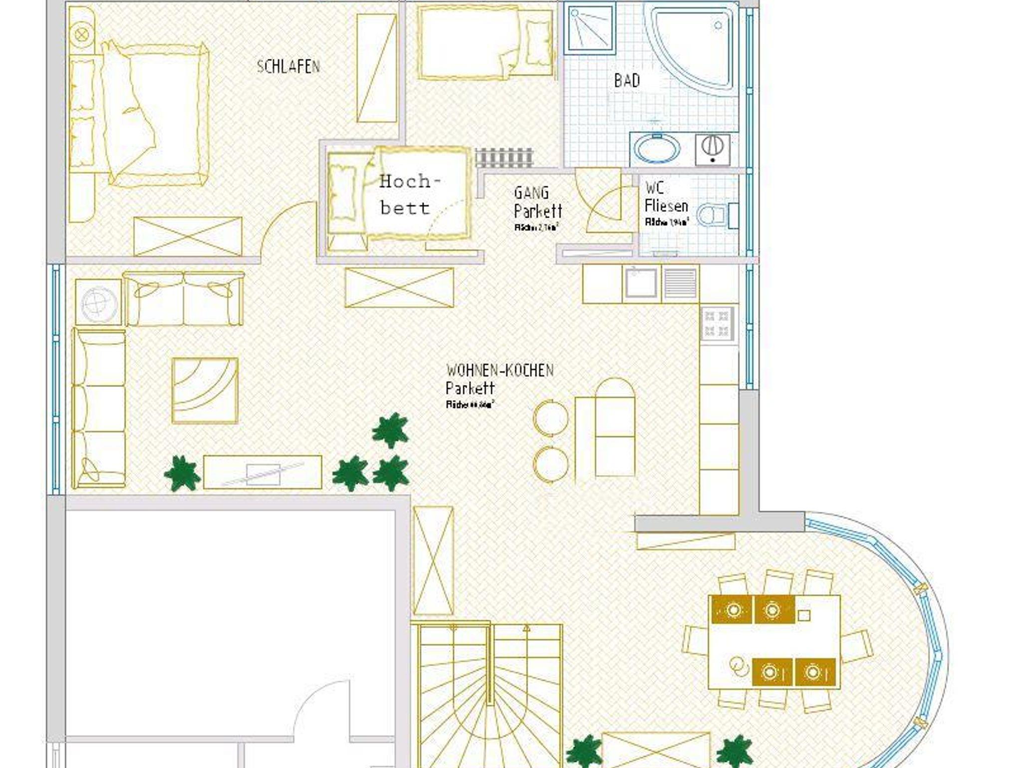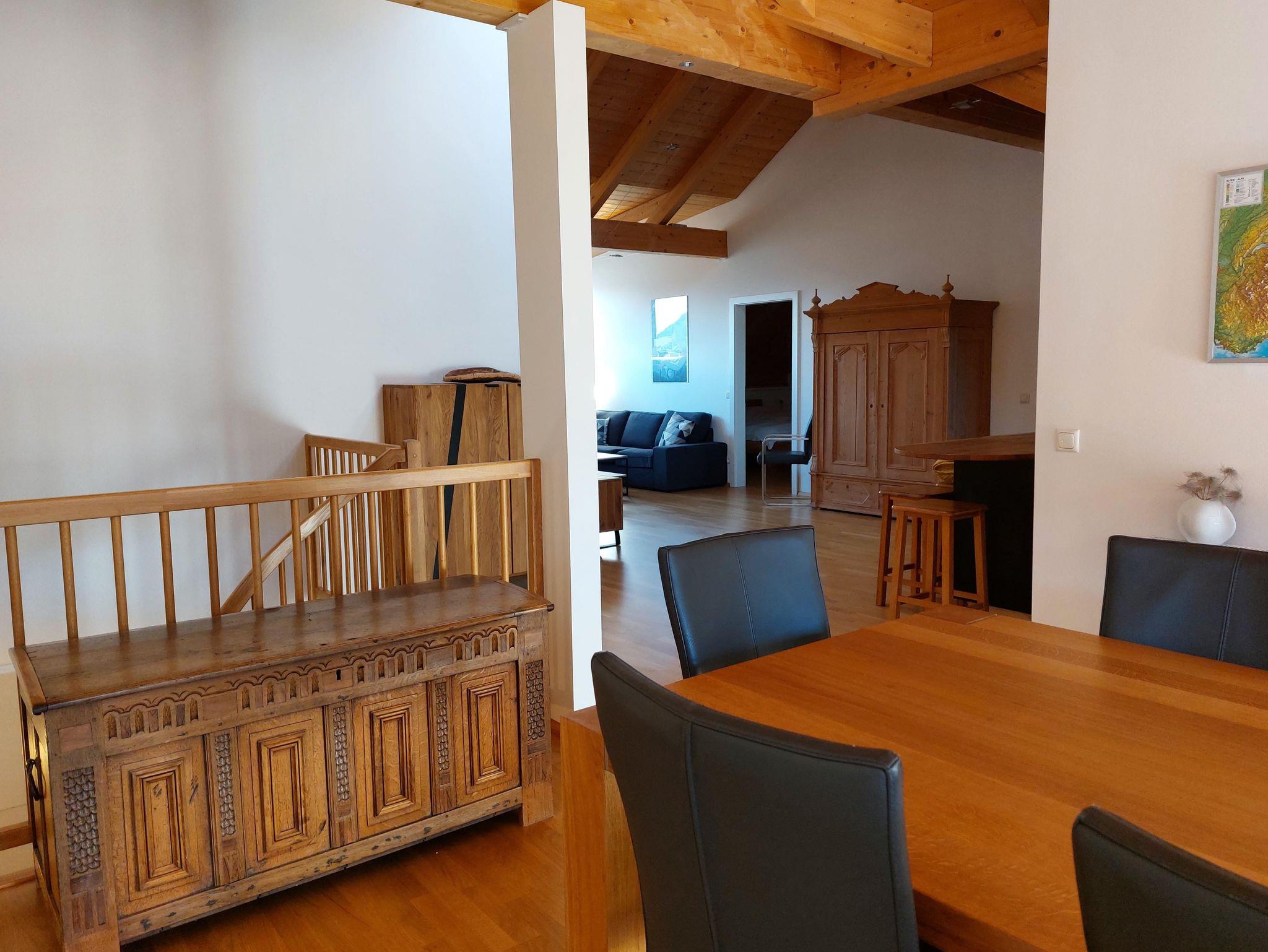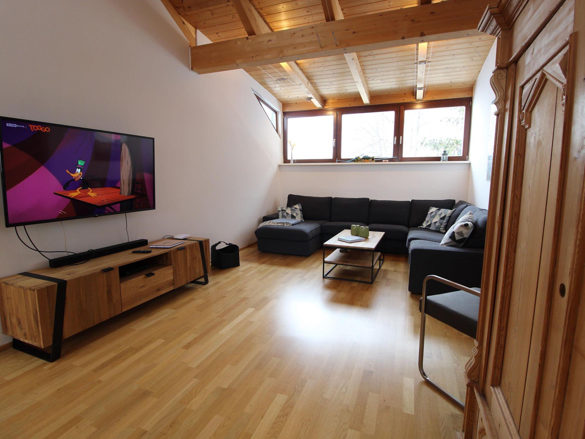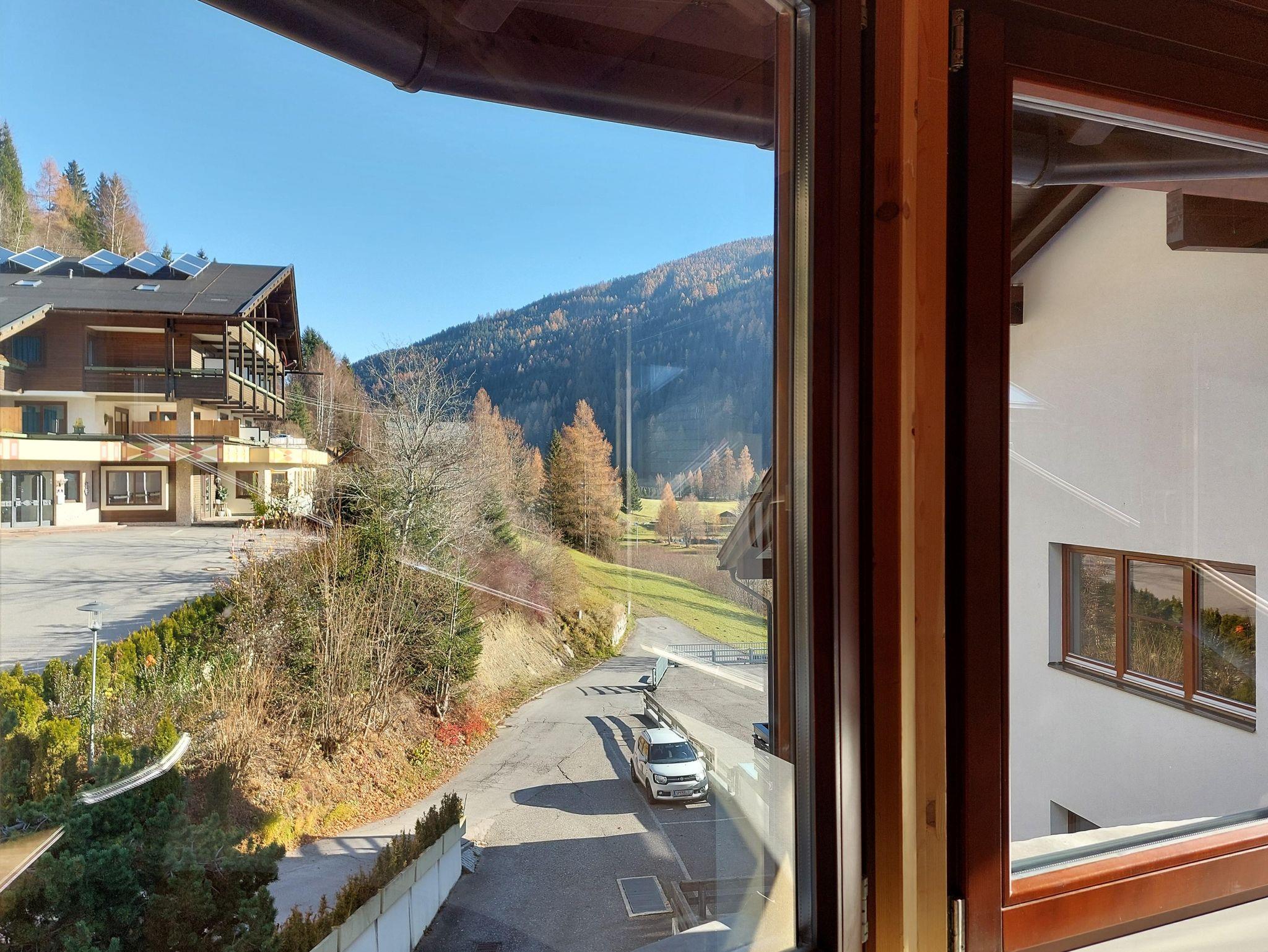 Hervorragende komfortable Wohnung auf zwei Ebenen. Am Eingang eine Garderobe mit Skiraumecke und Schuhwärmer sowie ein WC, ein Doppelzimmer mit Balkon und en-suite Bad mit Dusche. Eine Treppe führt in die obere Ebene, wo in einem großen offenen Raum die völlig ausgestattete Küche, der Esstisch und der Ruhebereich mit Sofa und TV Platz finden. Im Schlafbereich ein Schlafzimmer mit Doppelbett, ein Badezimmer mit Jacuzzi, Dusche und Waschmaschine, eine separate Toilette und das Kinderzimmer, mit einem Einzelbett, das zum Doppelbett wird, und einem wunderschönen Zwischengeschoss zum Spielen. Drei Außenparkplätze.
