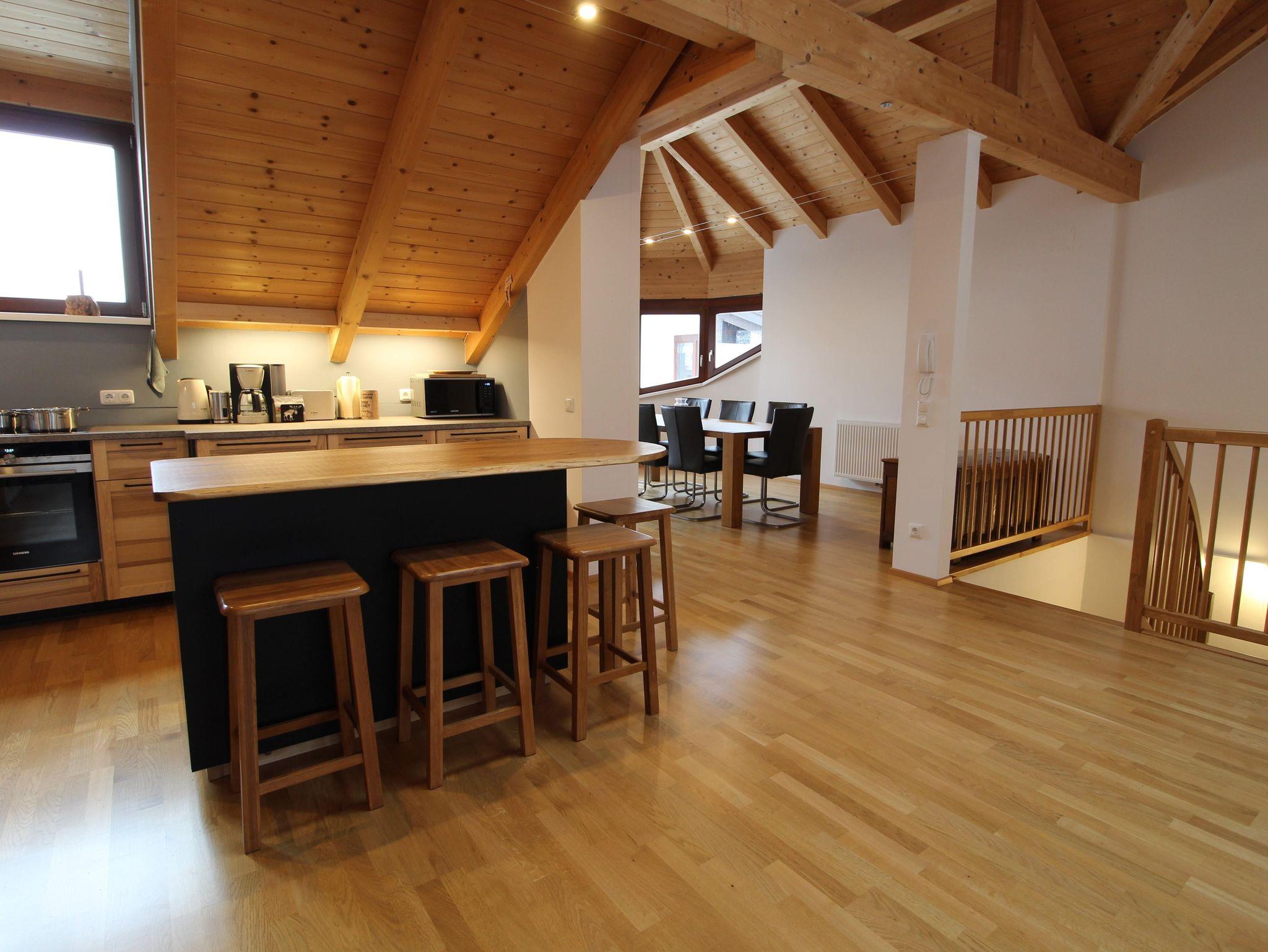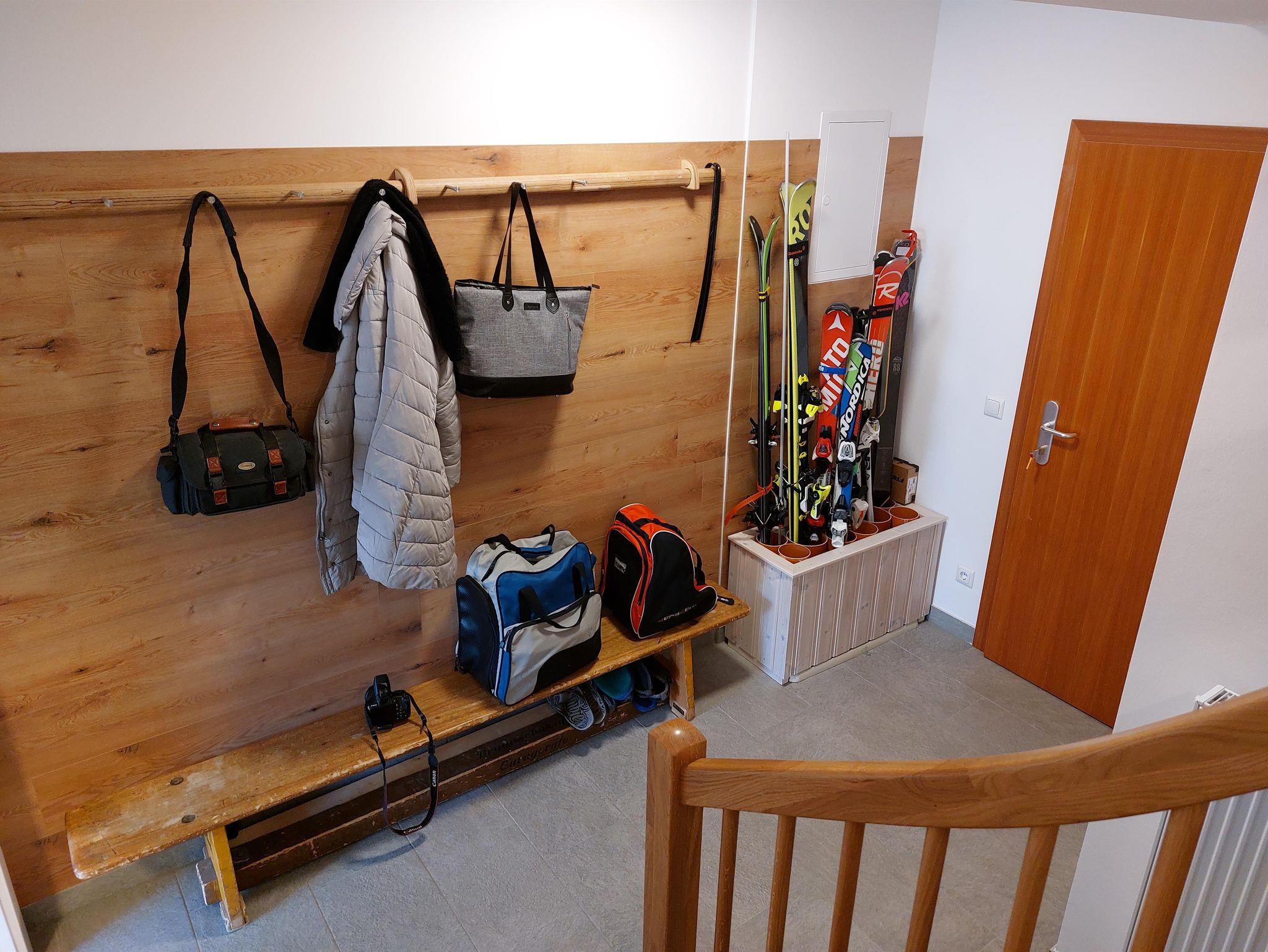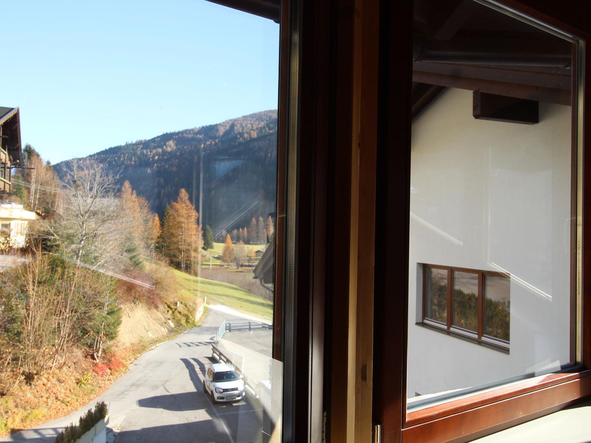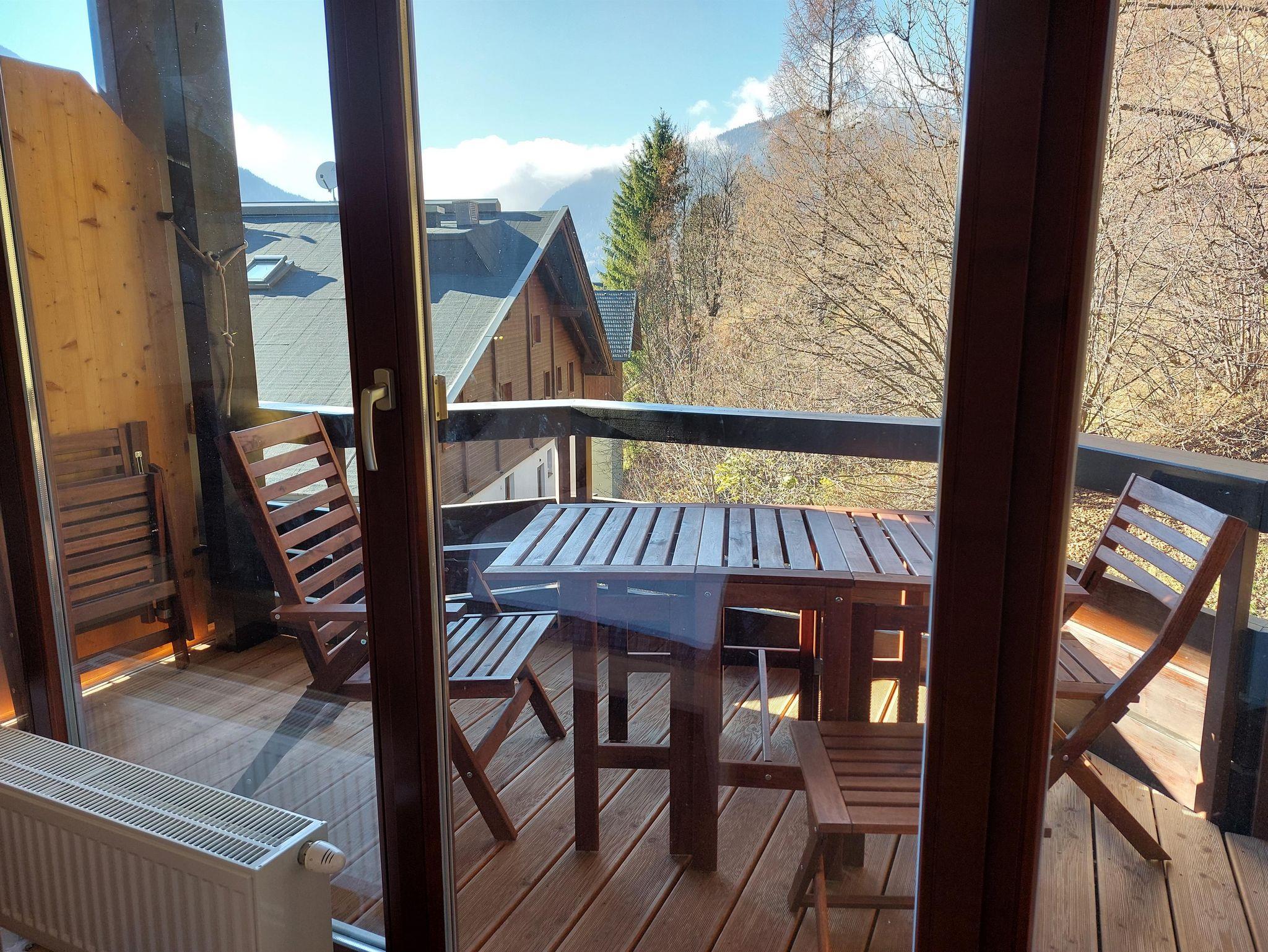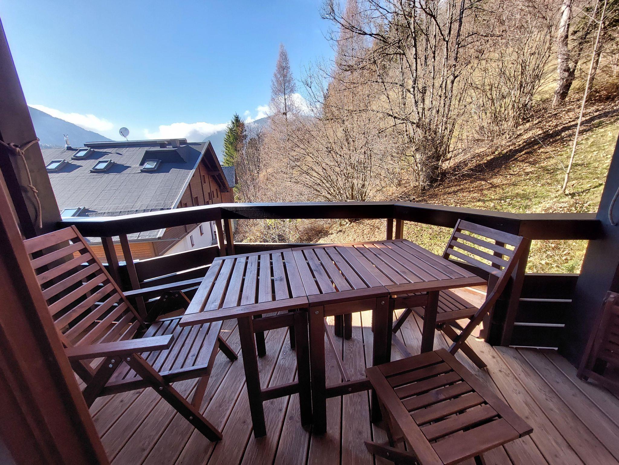 Hervorragende komfortable Wohnung auf zwei Ebenen. Am Eingang eine Garderobe mit Skiraumecke und Schuhwärmer sowie ein WC, ein Doppelzimmer mit Balkon und en-suite Bad mit Dusche. Eine Treppe führt in die obere Ebene, wo in einem großen offenen Raum die völlig ausgestattete Küche, der Esstisch und der Ruhebereich mit Sofa und TV Platz finden. Im Schlafbereich ein Schlafzimmer mit Doppelbett, ein Badezimmer mit Jacuzzi, Dusche und Waschmaschine, eine separate Toilette und das Kinderzimmer, mit einem Einzelbett, das zum Doppelbett wird, und einem wunderschönen Zwischengeschoss zum Spielen. Drei Außenparkplätze.