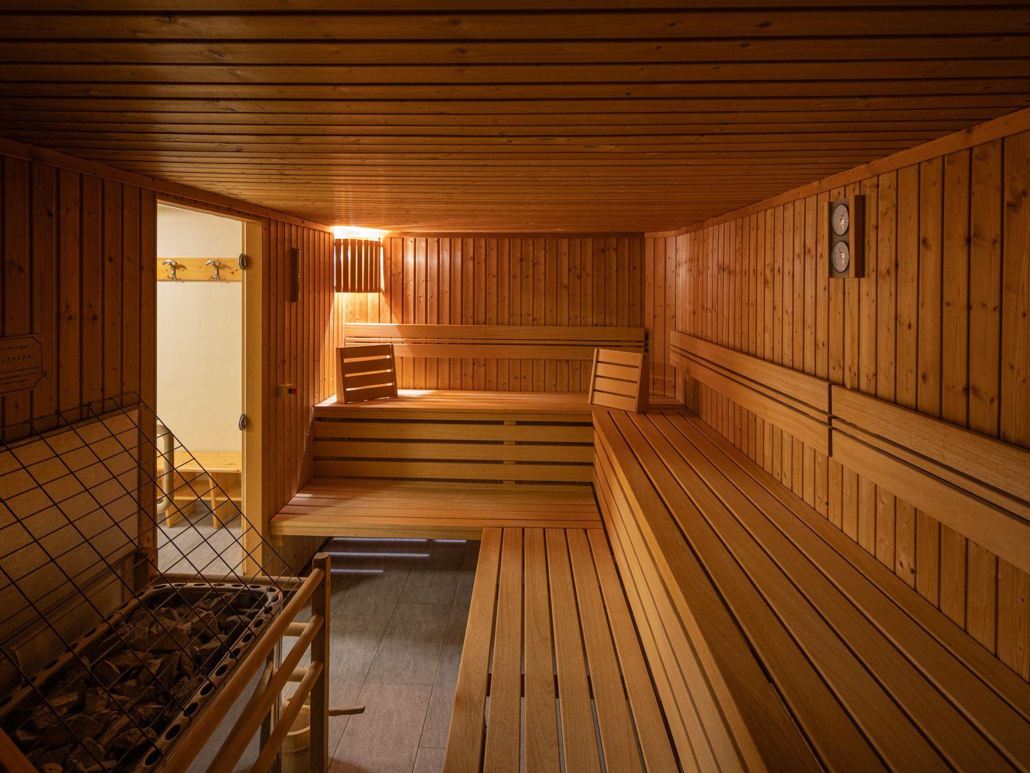 Wir bieten unseren Gästen auch einen großen, erstklassigen Wellnessbereich mit Innen- und Außenbecken, Dampfsauna, finnischer Sauna und Kräutersauna und einen Fitnessraum.
