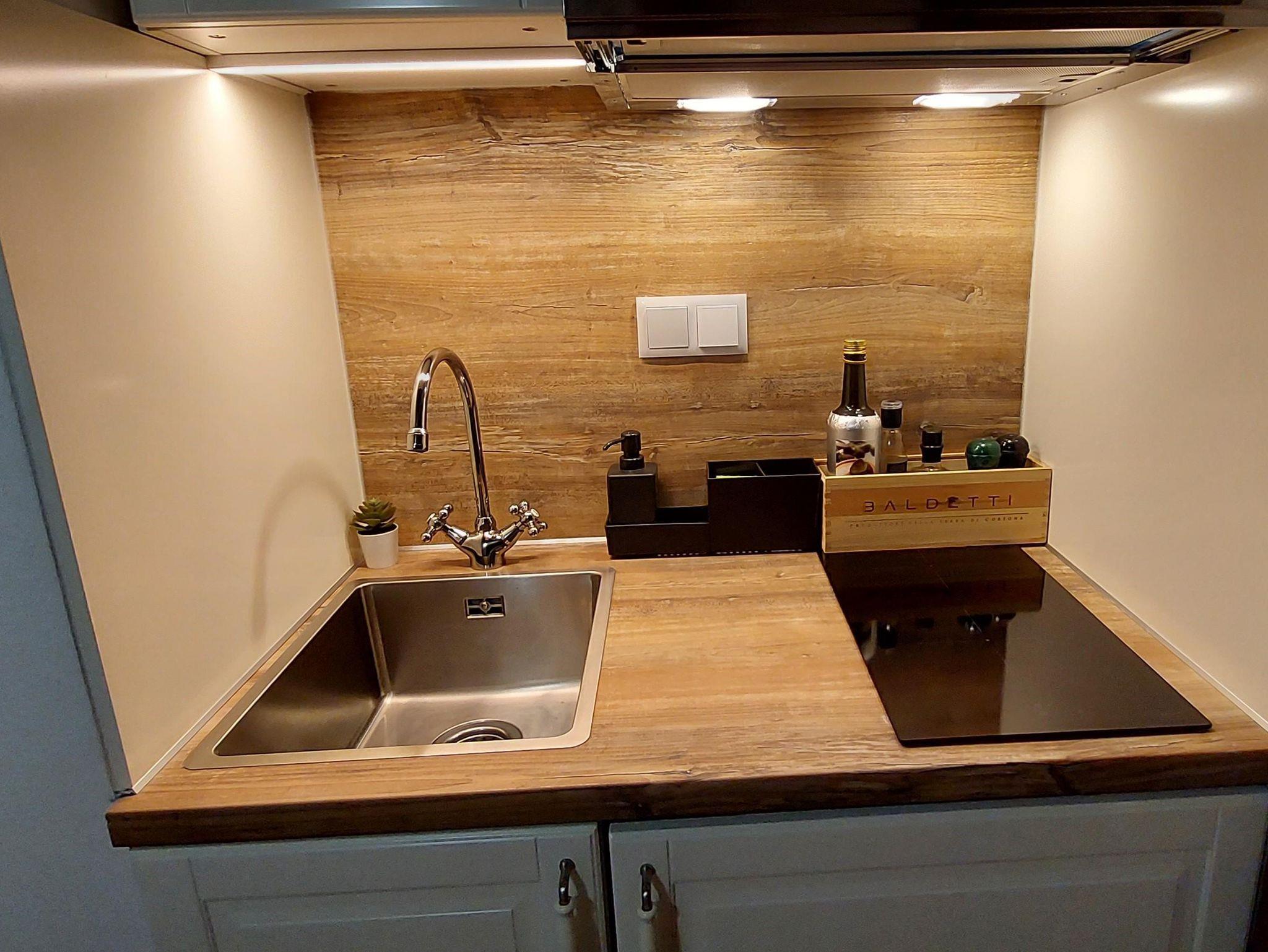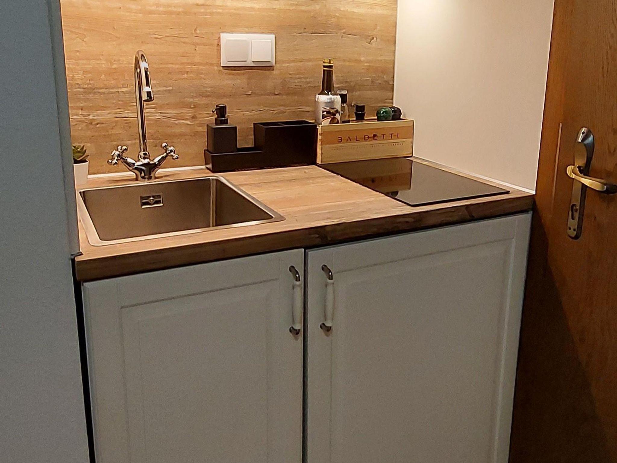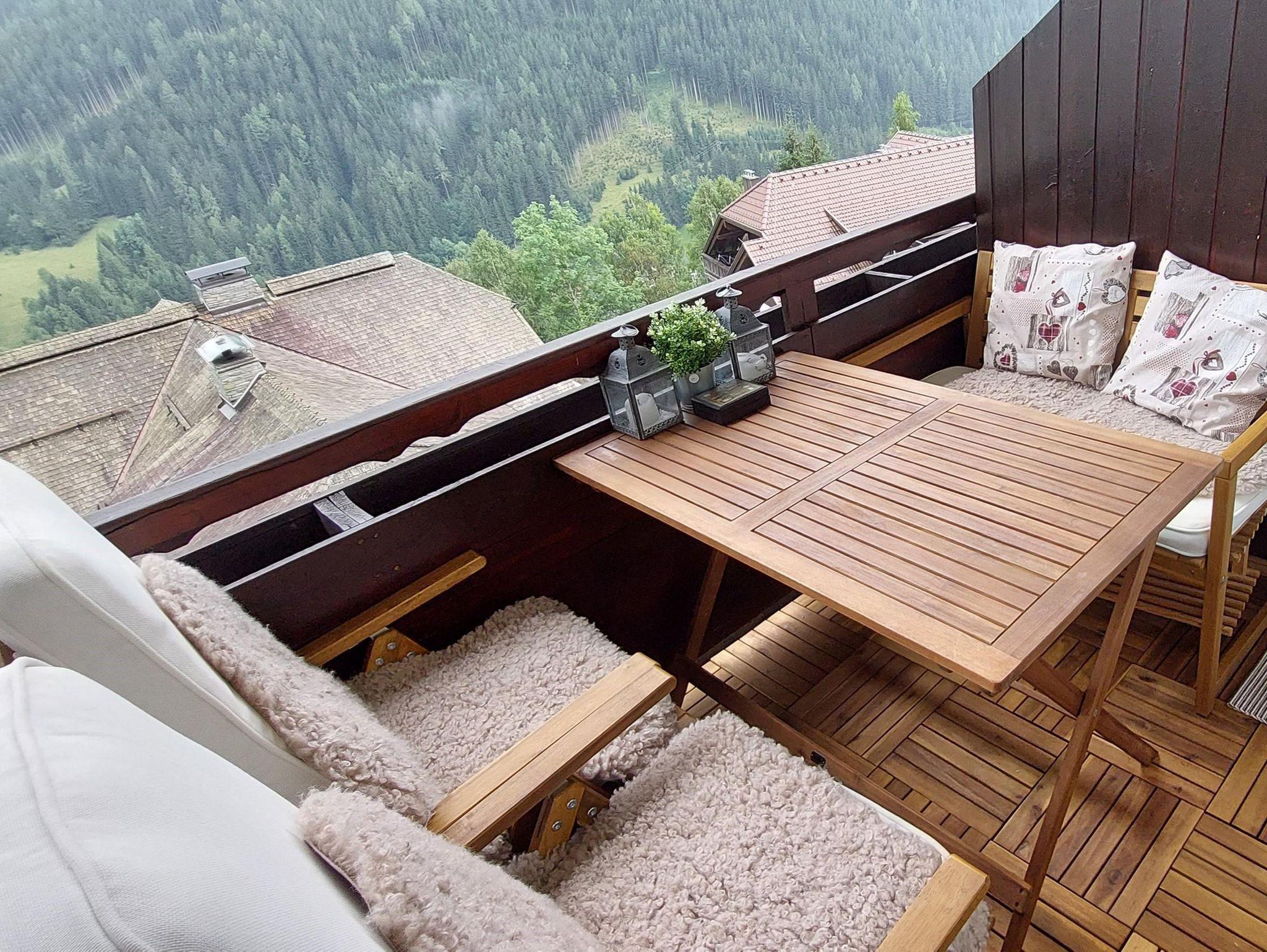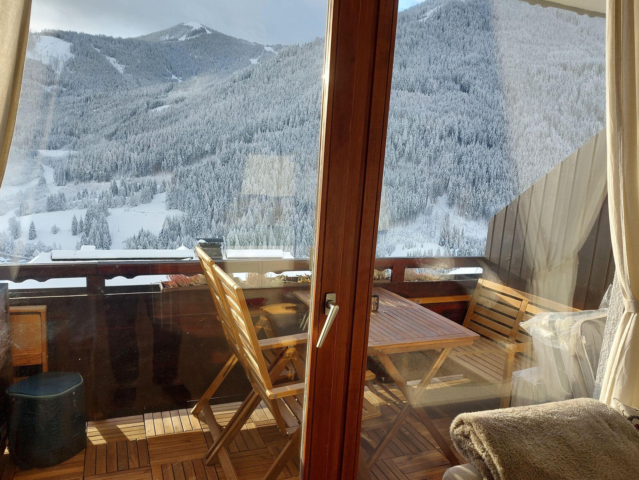 Es handelt sich um ein Studio-Apartment, das über ein großes Doppelbett und ein Wohnzimmer mit Schlafsofa und Esstisch verfügt und Platz für bis zu zwei Erwachsene und ein Kind bietet. Obwohl klein, verfügt die gut ausgestattete Küche über einen Kühlschrank mit Gefrierfach, ein Induktionskochfeld, eine Dunstabzugshaube, einen Mikrowellenherd, eine Espressomaschine, eine Moka-Kaffeemaschine, einen Wasserkocher, einen Toaster und komplette Kochutensilien. Das Badezimmer ist mit einer Dusche ausgestattet. Eine der Hauptattraktionen der Wohnung ist die gut ausgestattete Terrasse mit einer Außenkochstelle, einem Tisch, einer Bank und Liegestühlen zum Sonnenbaden und einem beeindruckenden Ausblick auf Bad Kleinkirchheim und die umliegenden Berge, den alle Gäste genießen.