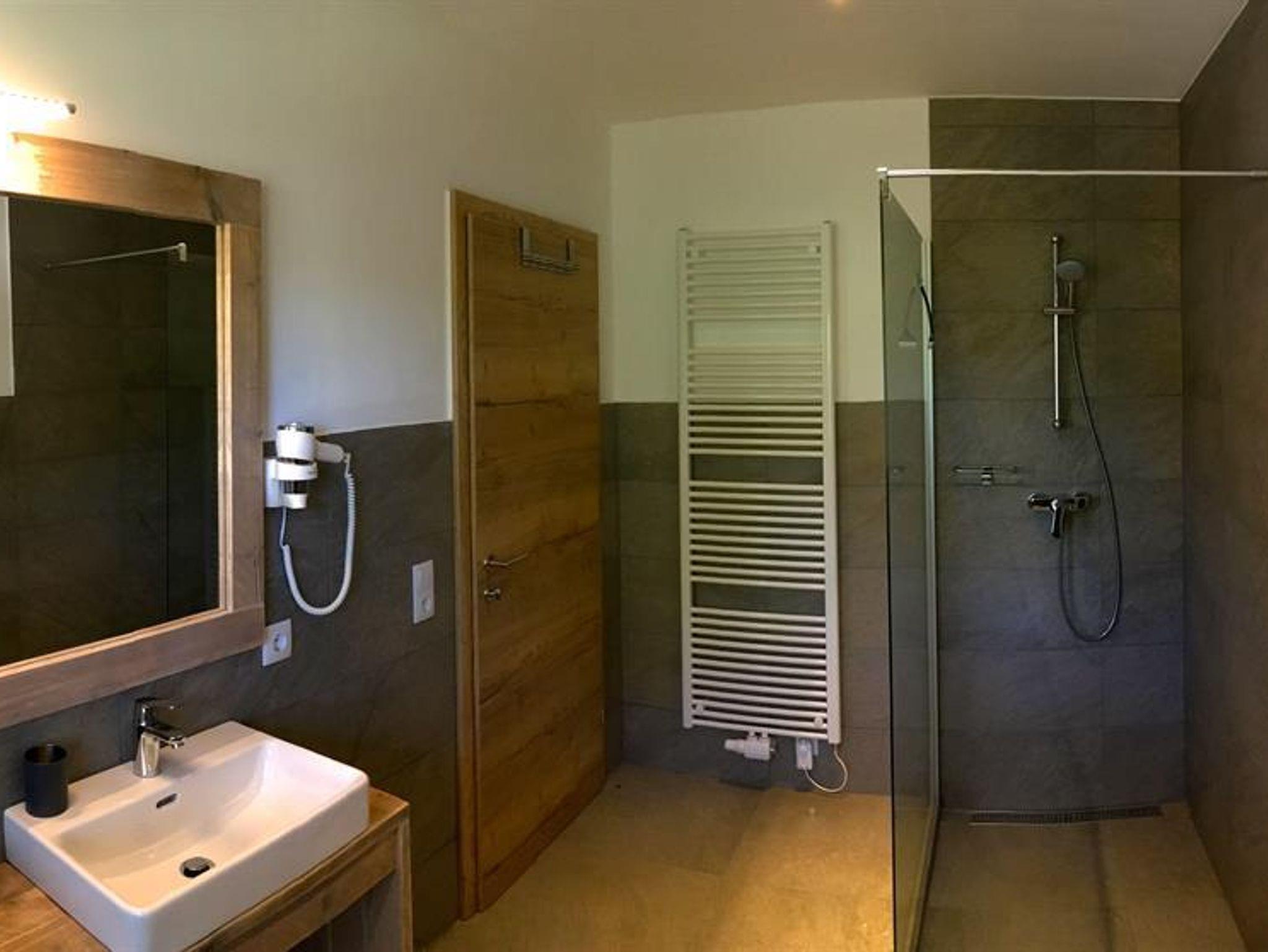 • Ein modernes Badezimmer mit kräftiger Dusche inklusive Föhn;