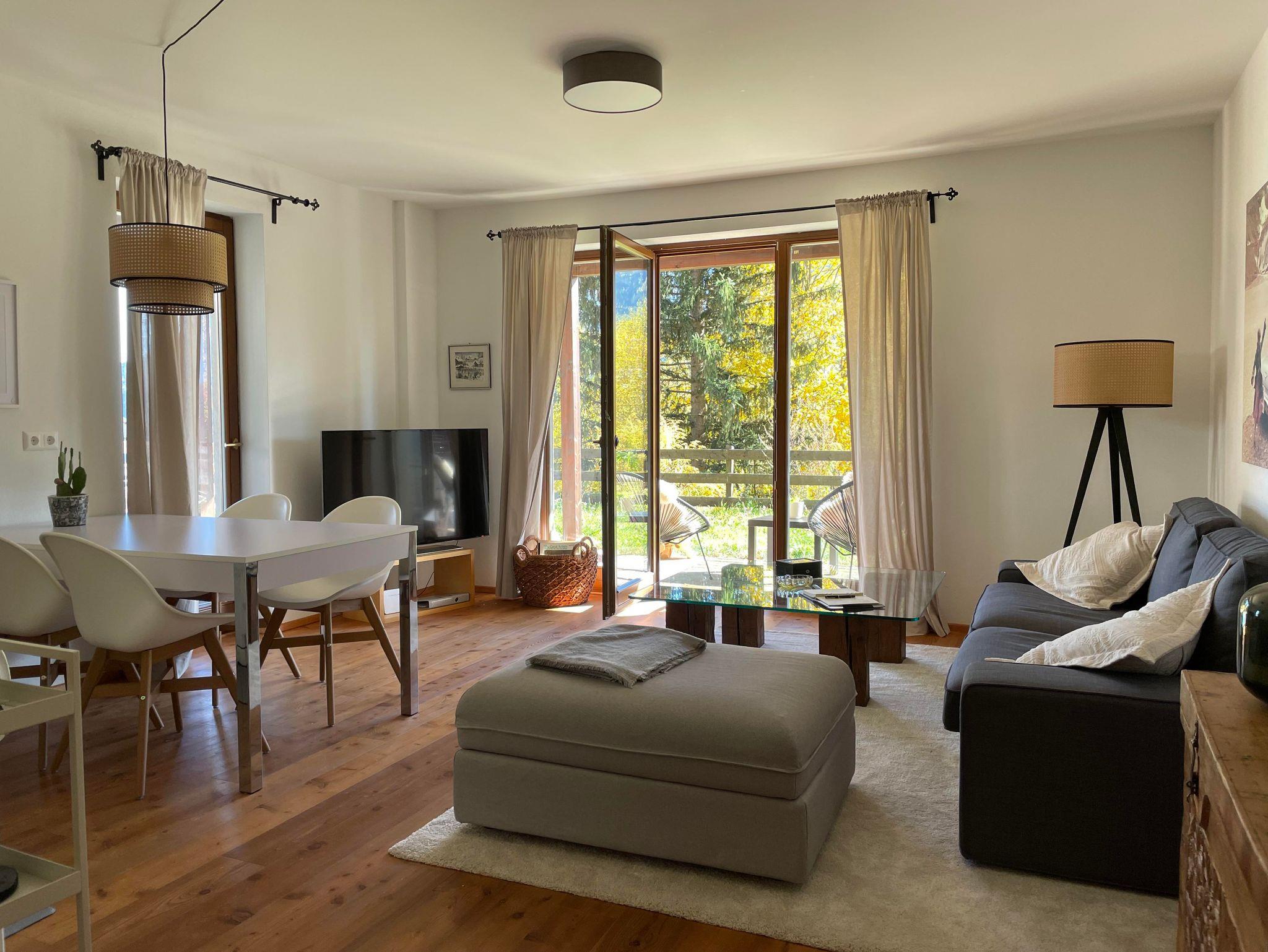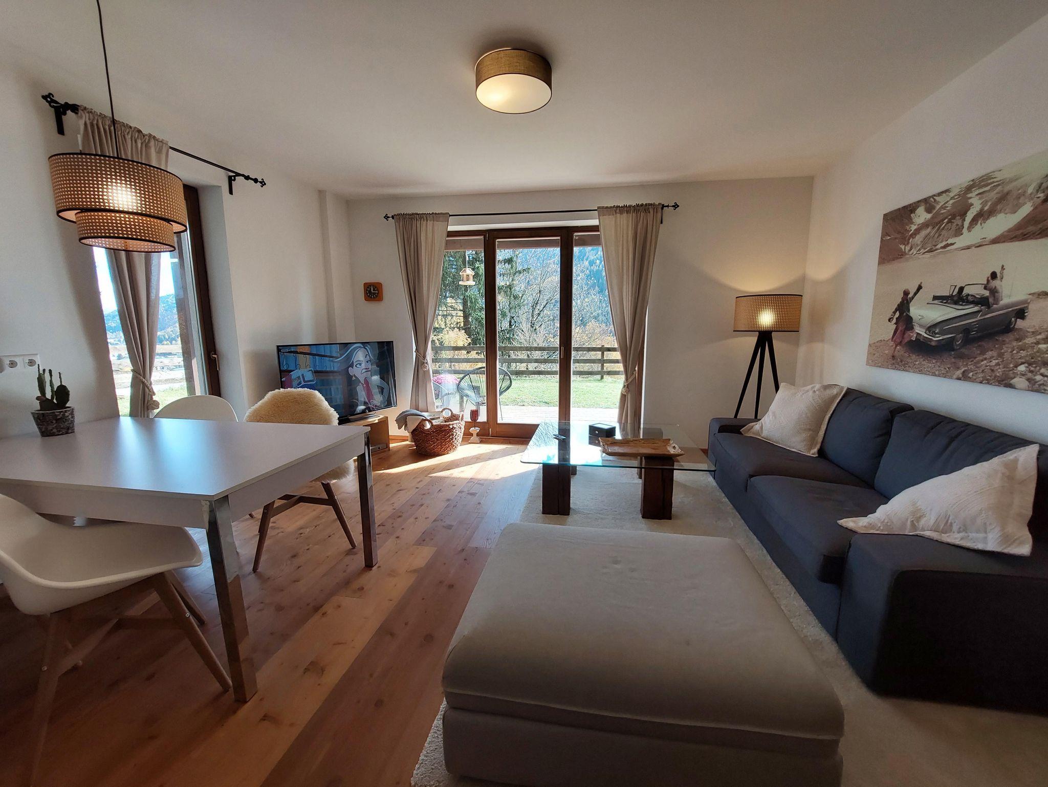 Moderne gemütliche Wohnung mit kleinem sonnigen Garten in Panoramalage, ca. 300m von den Skipisten entfernt.