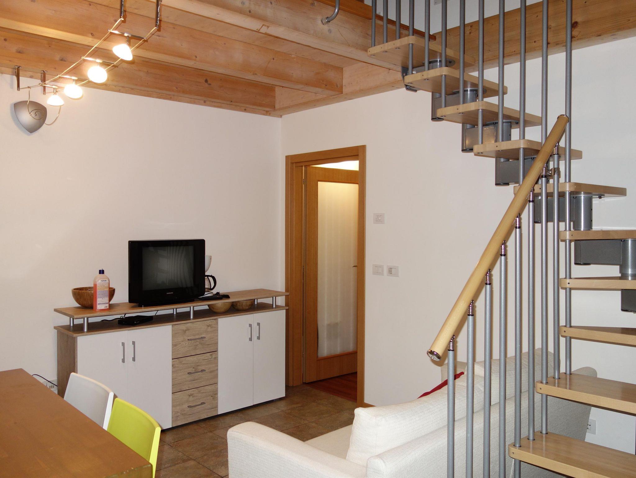 Schöne und helle Wohnung in panoramischer Lage über Bad Kleinkirchheim, zwei Autominuten von Supermärkten und Restaurants, in unmittelbarer Nähe zum Maibrunnbahn. Es handelt sich um ein auf zwei Niveaus entwickeltes Haus , mit bequemem Wohnzimmer mit Kochnische (mit Geschirrspueler) und großem panoramischen Balkon, einem Schlafzimmer mit Doppelbett, einem Badezimmer mit Dusche. Eine Treppe führt zur Zwischendecke, mit einem aufs Wohnzimmer schauende Dachboden , einem WC und einem Schlafzimmer mit Doppelbett. Parkplatz in der Garage.