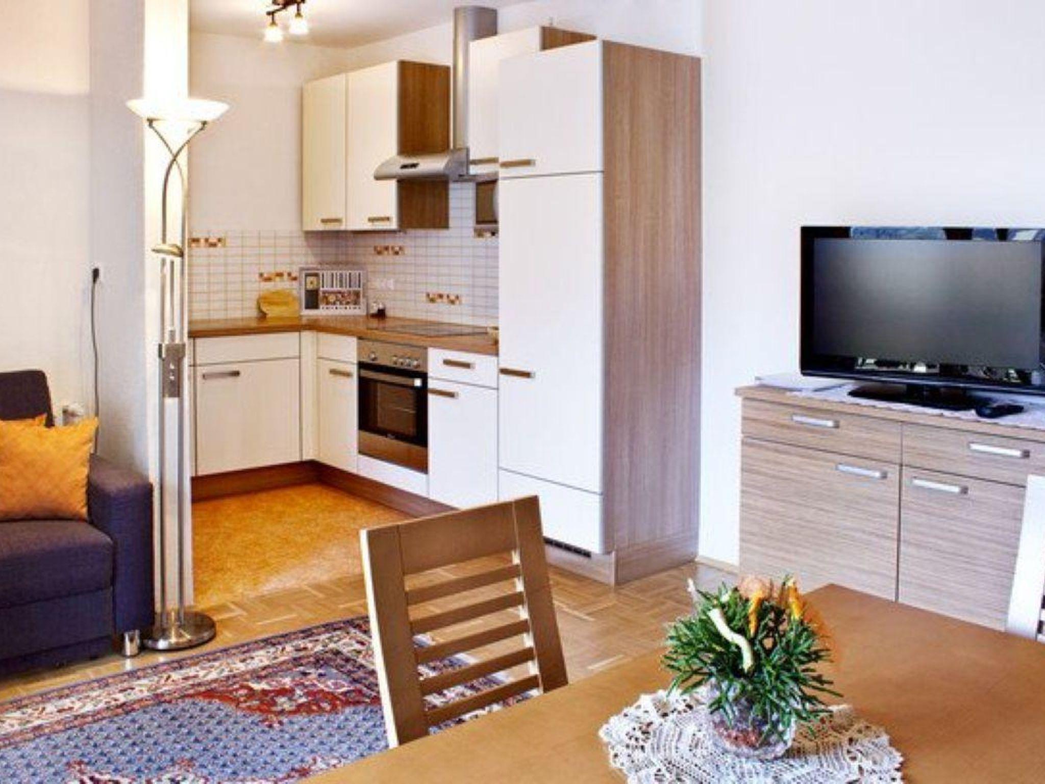 Appartement mit 45-50m², ausgestattet mit einem Schlafzimmer, Wohn-Schlafzimmer mit ausziehbarer Schlaf-Couch, Küche bzw. Wohnküche, Essbereich, Dusche/WC, FLAT-SAT-TV, großzügiger Balkon mit herrlichem Ausblick. Semmelservice! WLAN kostenlos!
