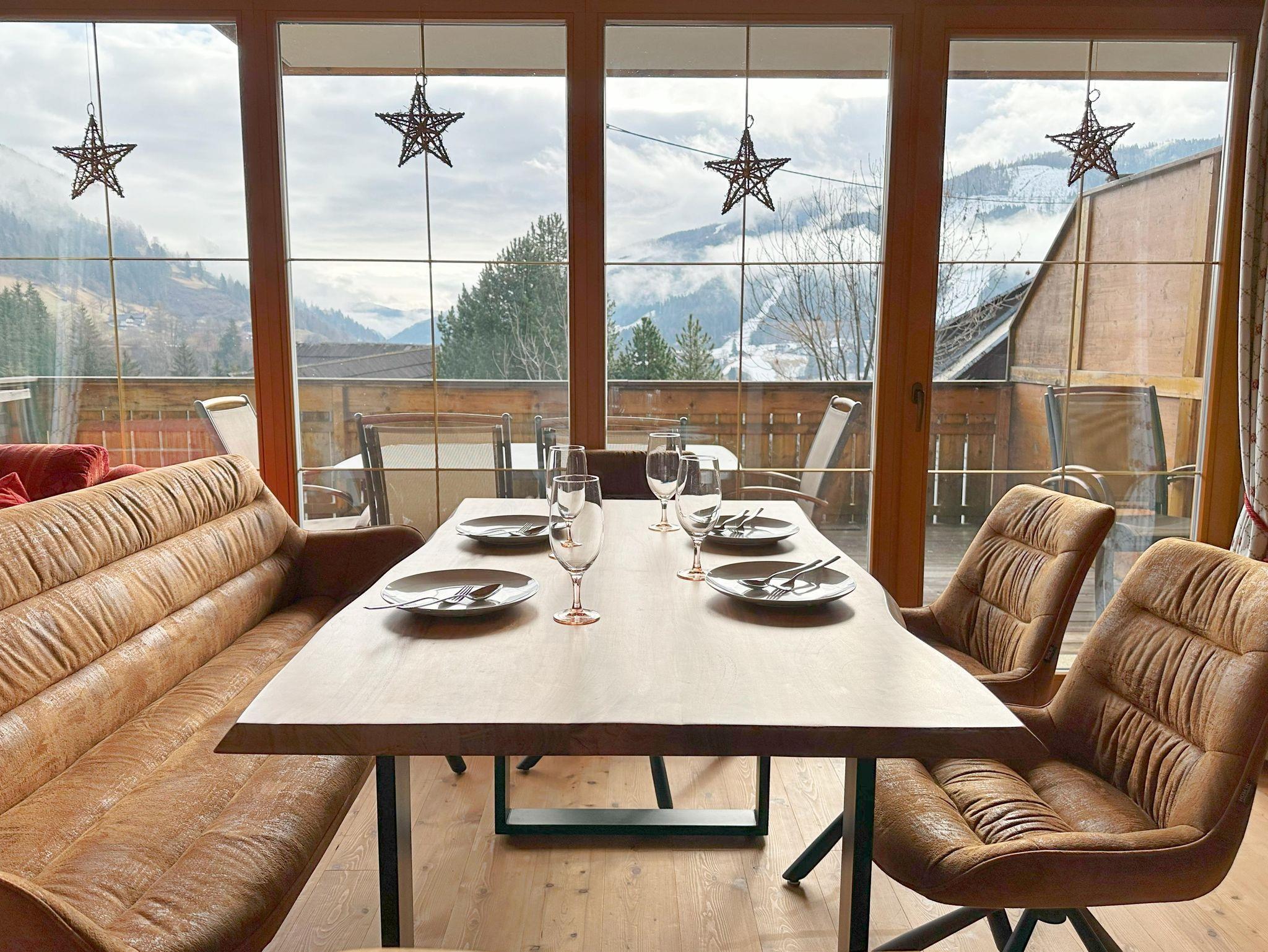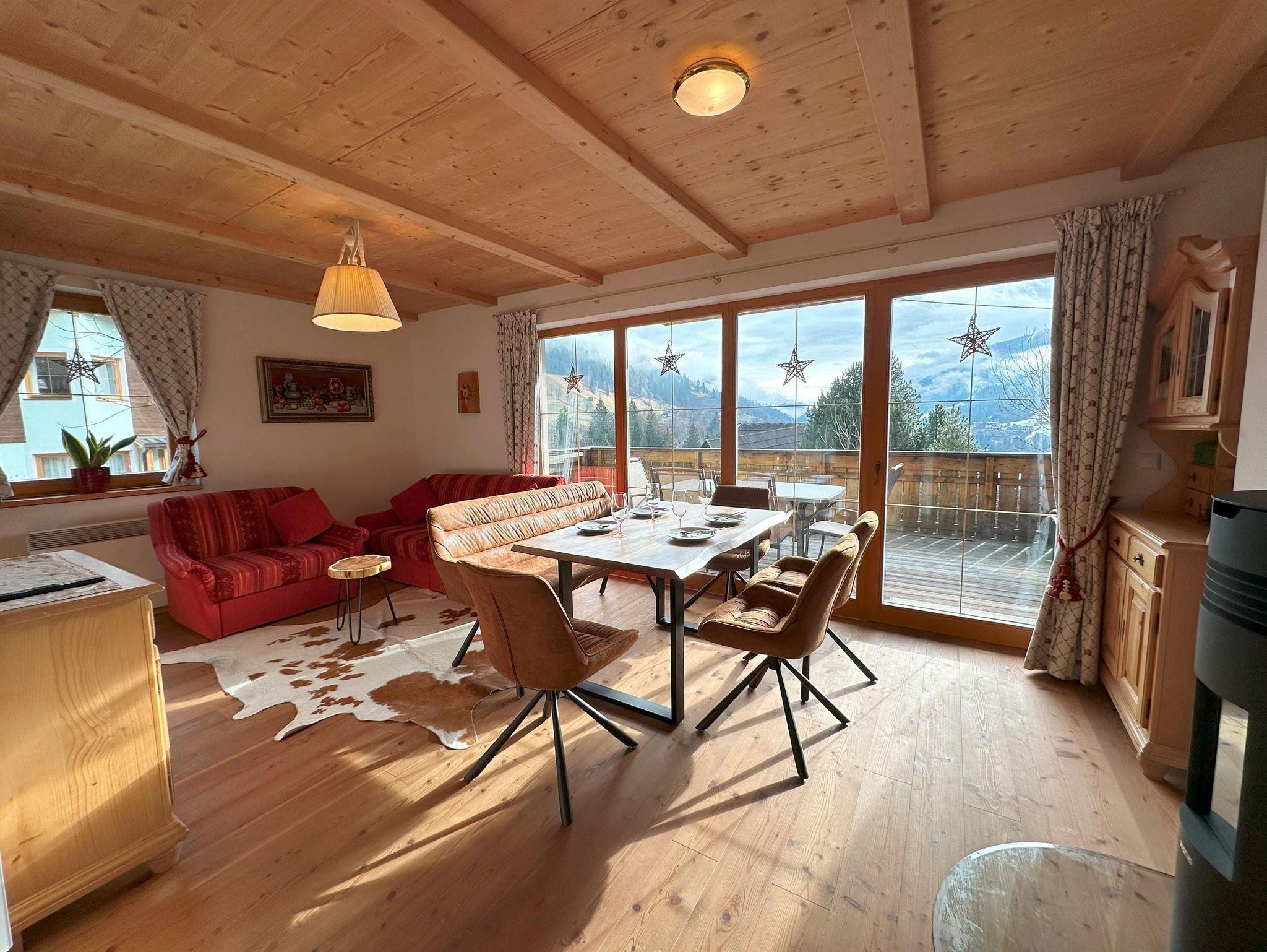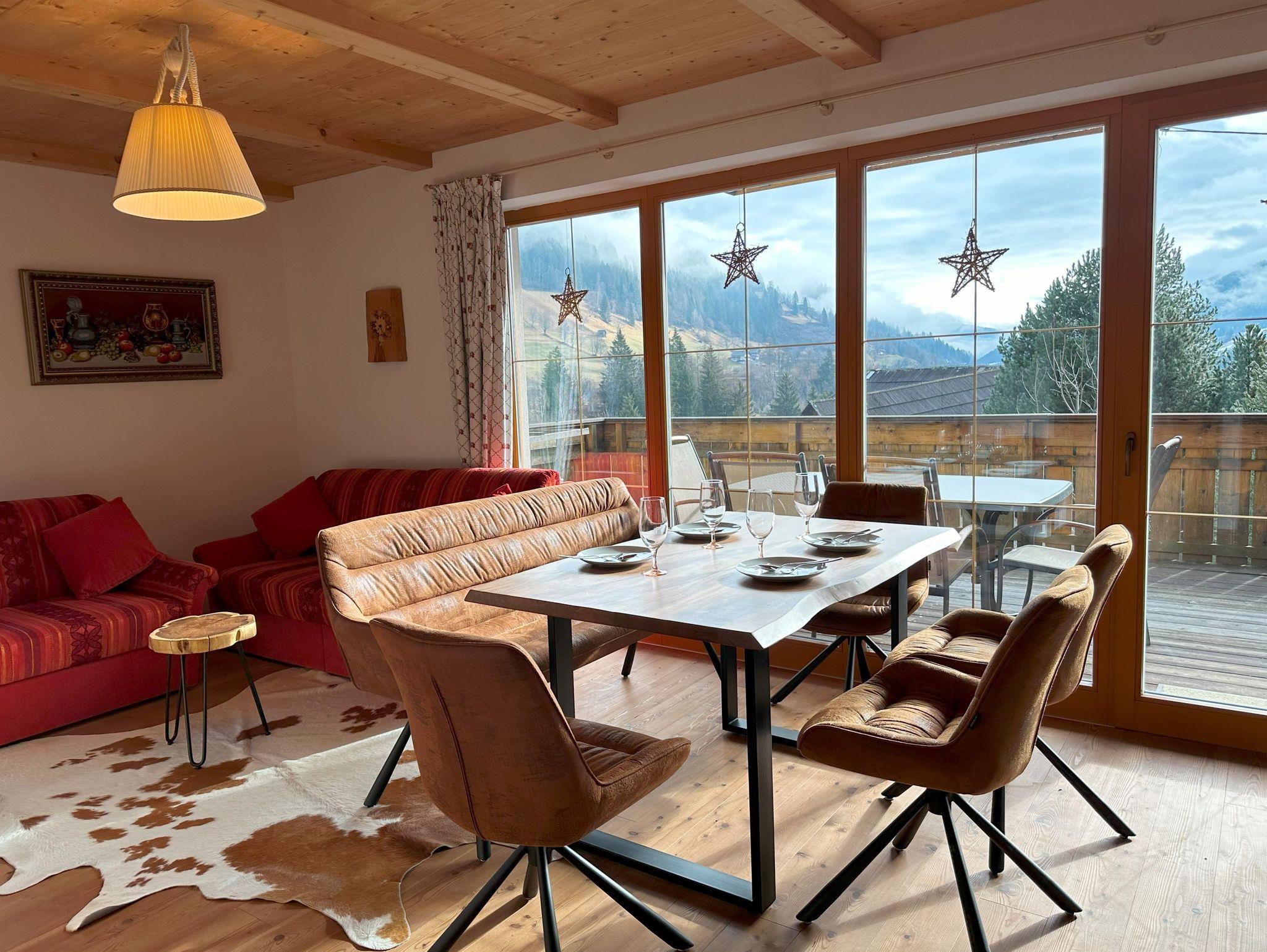 Helle und neue, SKI-TO-DOOR Wohnung für bis zu 7 Gästen im Ortsteil Obertschern , in panoramischer Lage mit Blick auf Tal und Skipiste, 5 Autominuten von Zentrum entfernt. Die Sonnwiesbahn liegt 50 m entfernt .