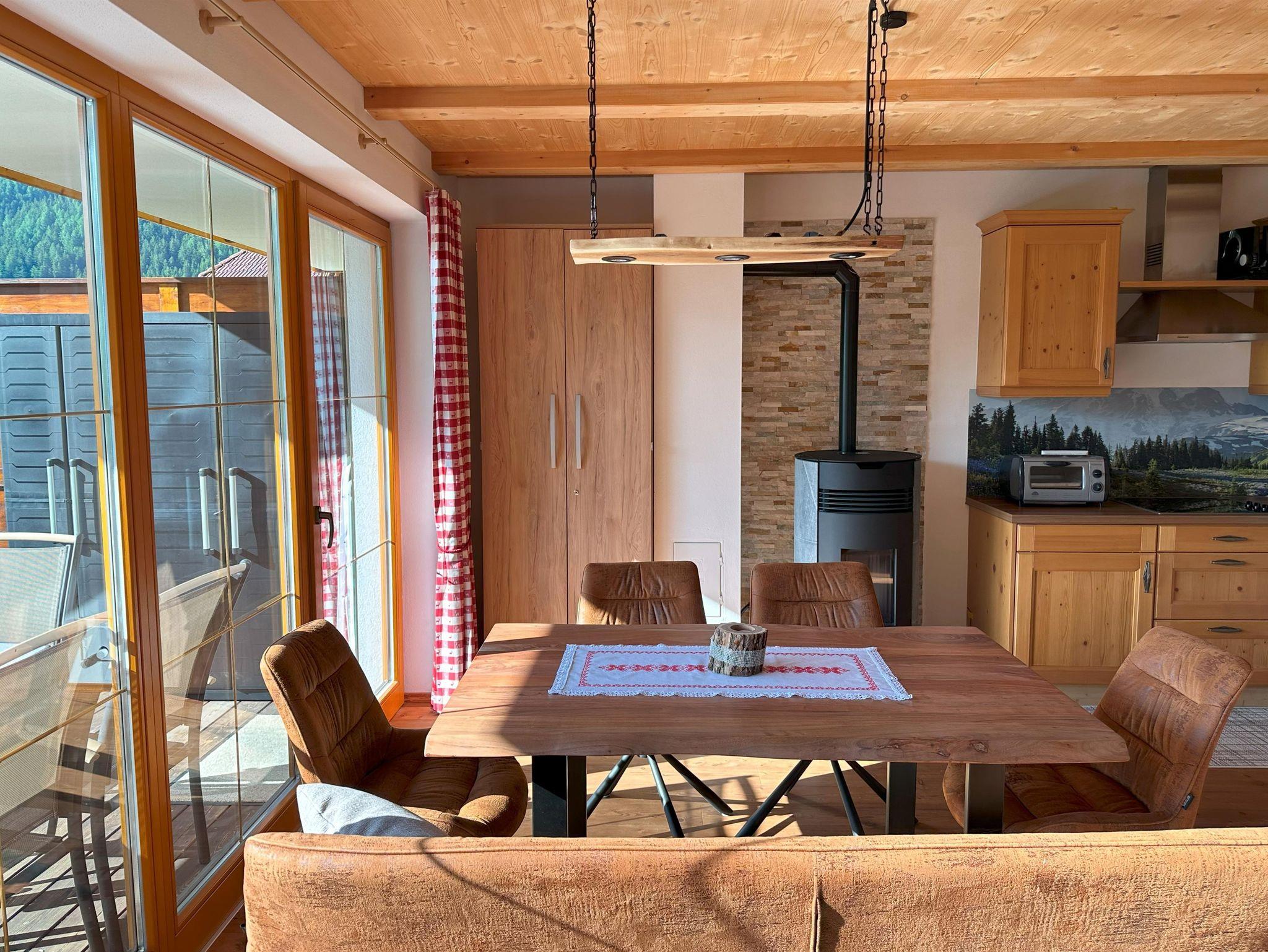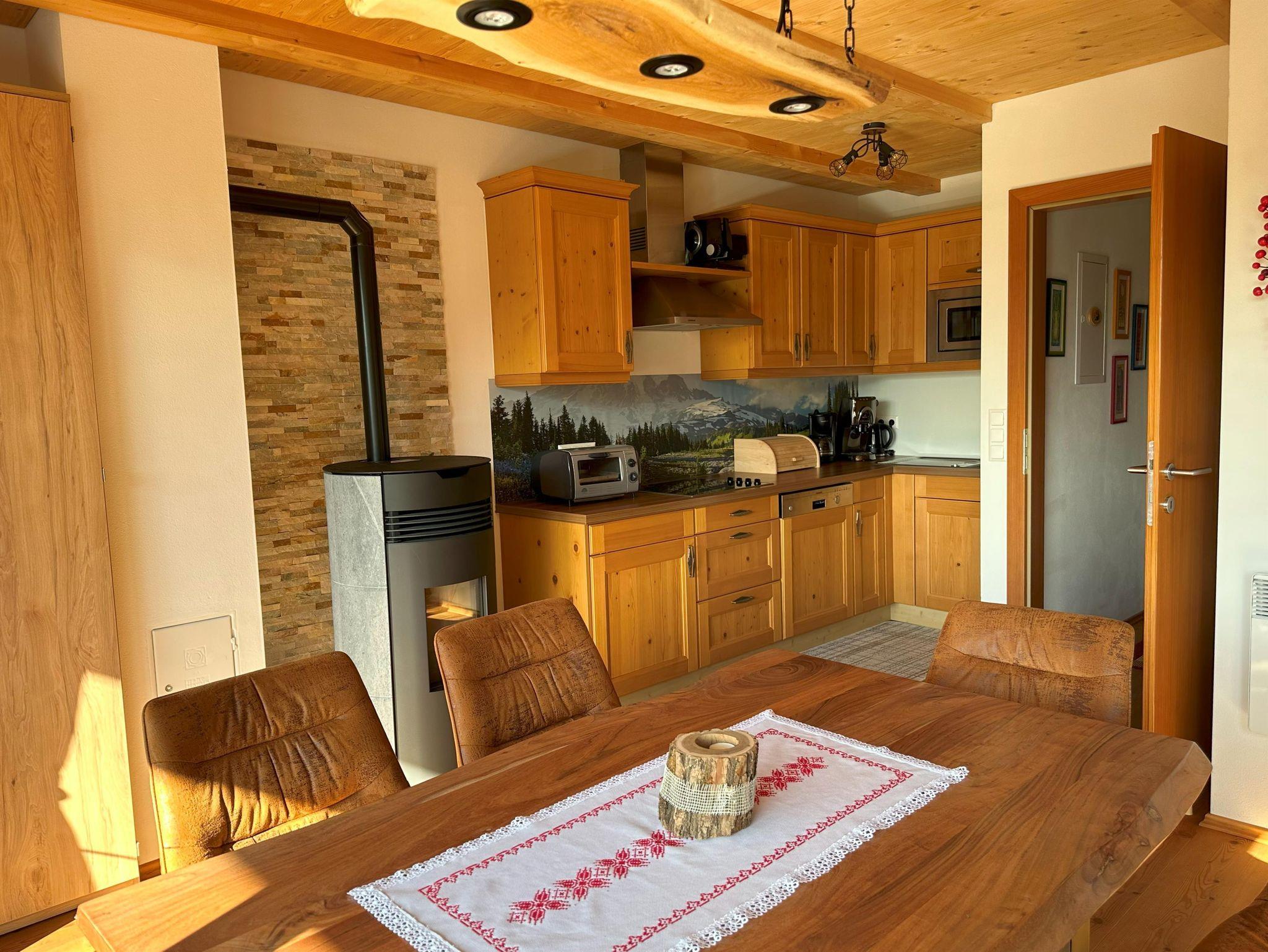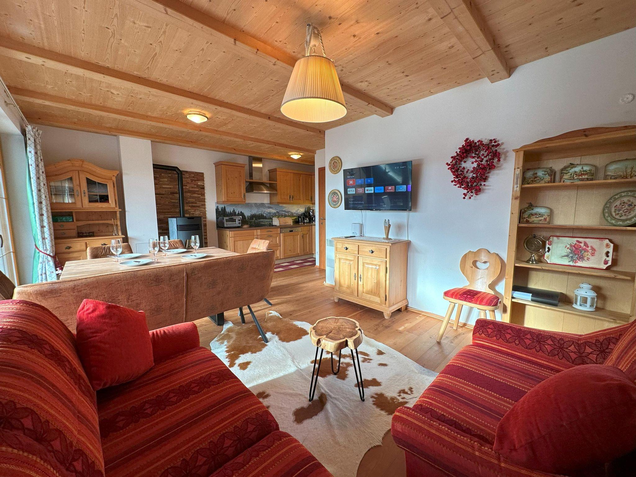 Helle und neue, SKI-TO-DOOR Wohnung für bis zu 7 Gästen im Ortsteil Obertschern , in panoramischer Lage mit Blick auf Tal und Skipiste, 5 Autominuten von Zentrum entfernt. Die Sonnwiesbahn liegt 50 m entfernt .