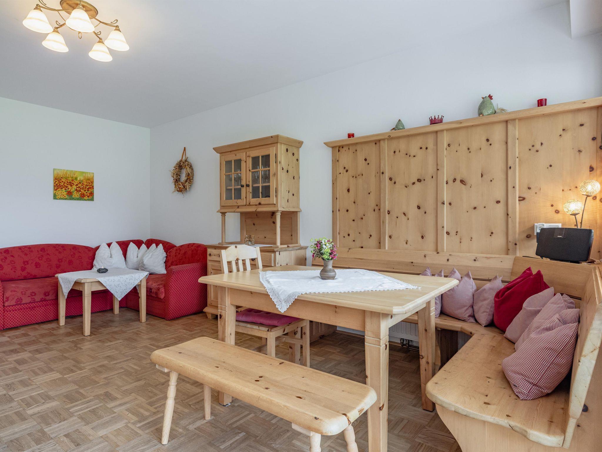 Vitalität, Ausgeglichenheit und Lebensfreude. Das was ein schöner Sonnentag ausmacht gibt es auch in unserer Zirbenwohnung. Die Wohnung bietet ein Elternschlafzimmer mit 2 Betten und ein Kinderschlafzimmer mit 2 Betten. Auch hier sind Bad und Küche dabei.
