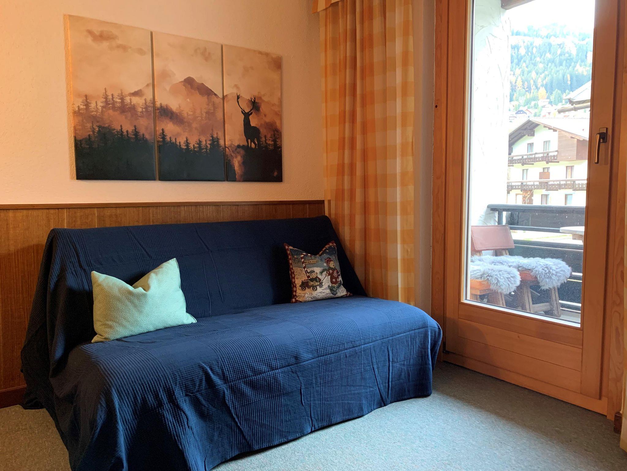 Zwei-Zimmer-Appartement für 2-3 Personen ca. 38 m2, Wohnschlafraum mit Sitzecke-Couchbett, Essplatz, Kochnische, kleiner Schlafraum mit 2 Einzelbetten, Bad/ WC, Balkon