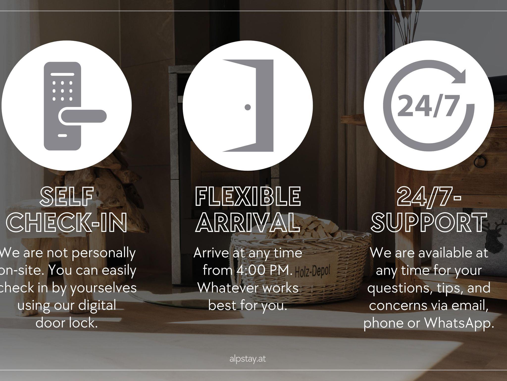 Ihr checkt bequem und kontaktlos über unser digitales Türschloss ein. Alle Informationen erhaltet ihr vorab per E-Mail oder WhatsApp. Während eures Aufenthalts sind wir jederzeit telefonisch oder schriftlich für euch erreichbar und unterstützen euch gerne bei Fragen und Anliegen.