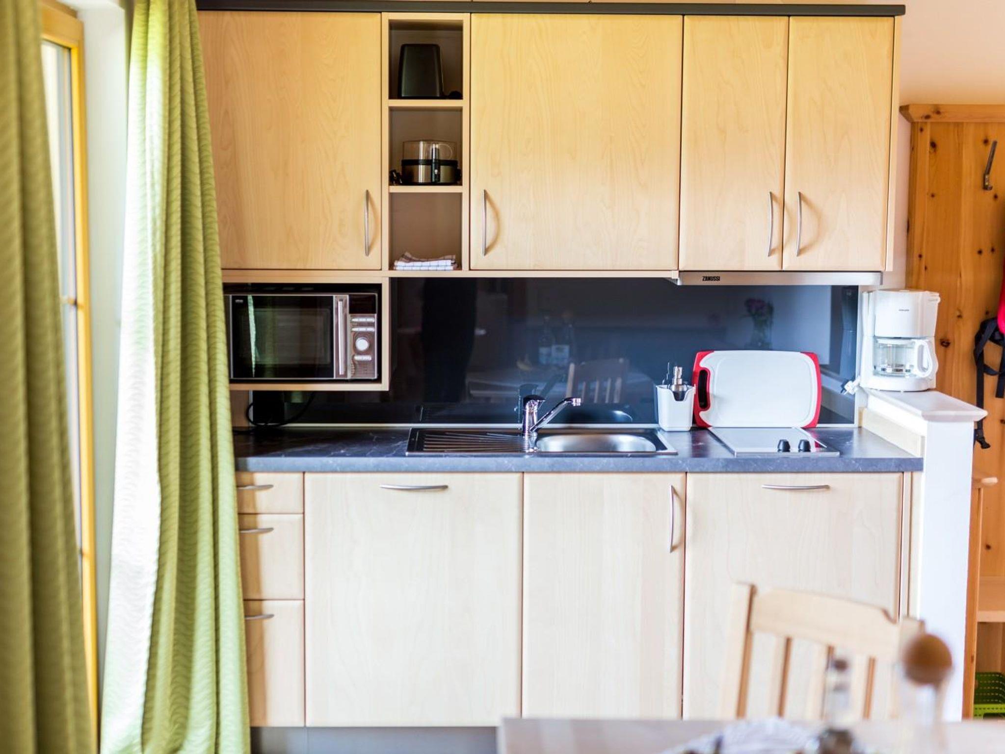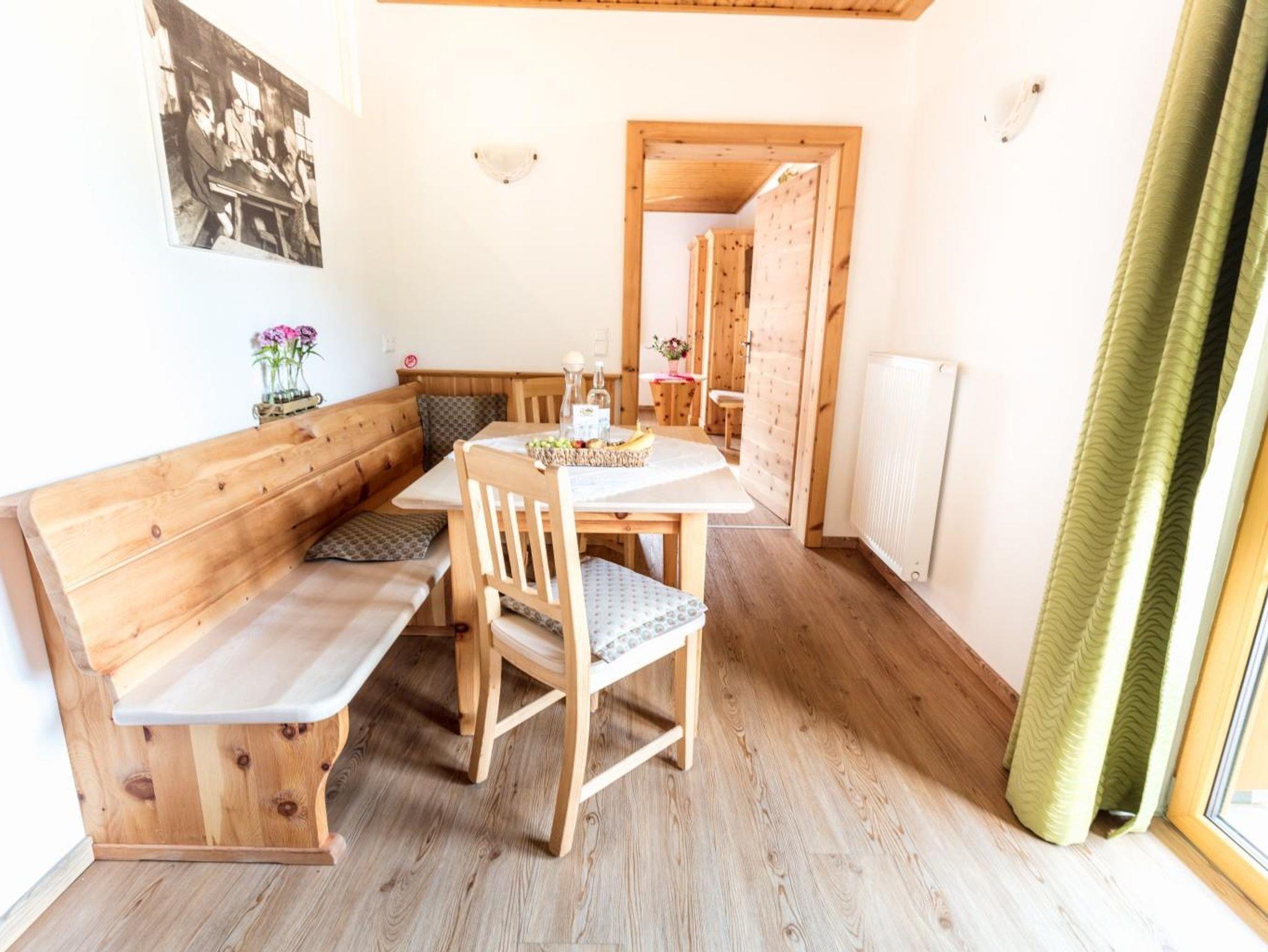 Wunderschönes, 35m² Familienappartement aus heimischen Zirbenholz. Wohnschlafzimmer mit Doppelbett aus Zirbe, Zirbenkleiderschrank, Flexinno Couch (als Stockbett umwandelbar), 1 Cocktailsessel mit Zirbenholztisch, Flat-TV. Küchenzeile mit Geschirrspüler, Mikrowelle, Kühlschrank, Zweiplattenherd, gemütliche Zirbenessecke, Dusche/WC, Garderobe, Südbalkon und kostenloses W-Lan im gesamten Haus.