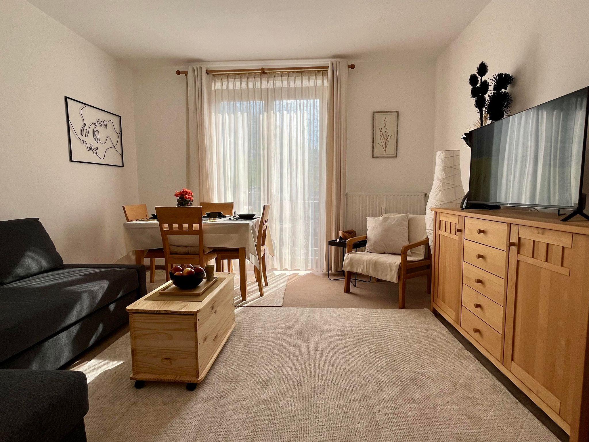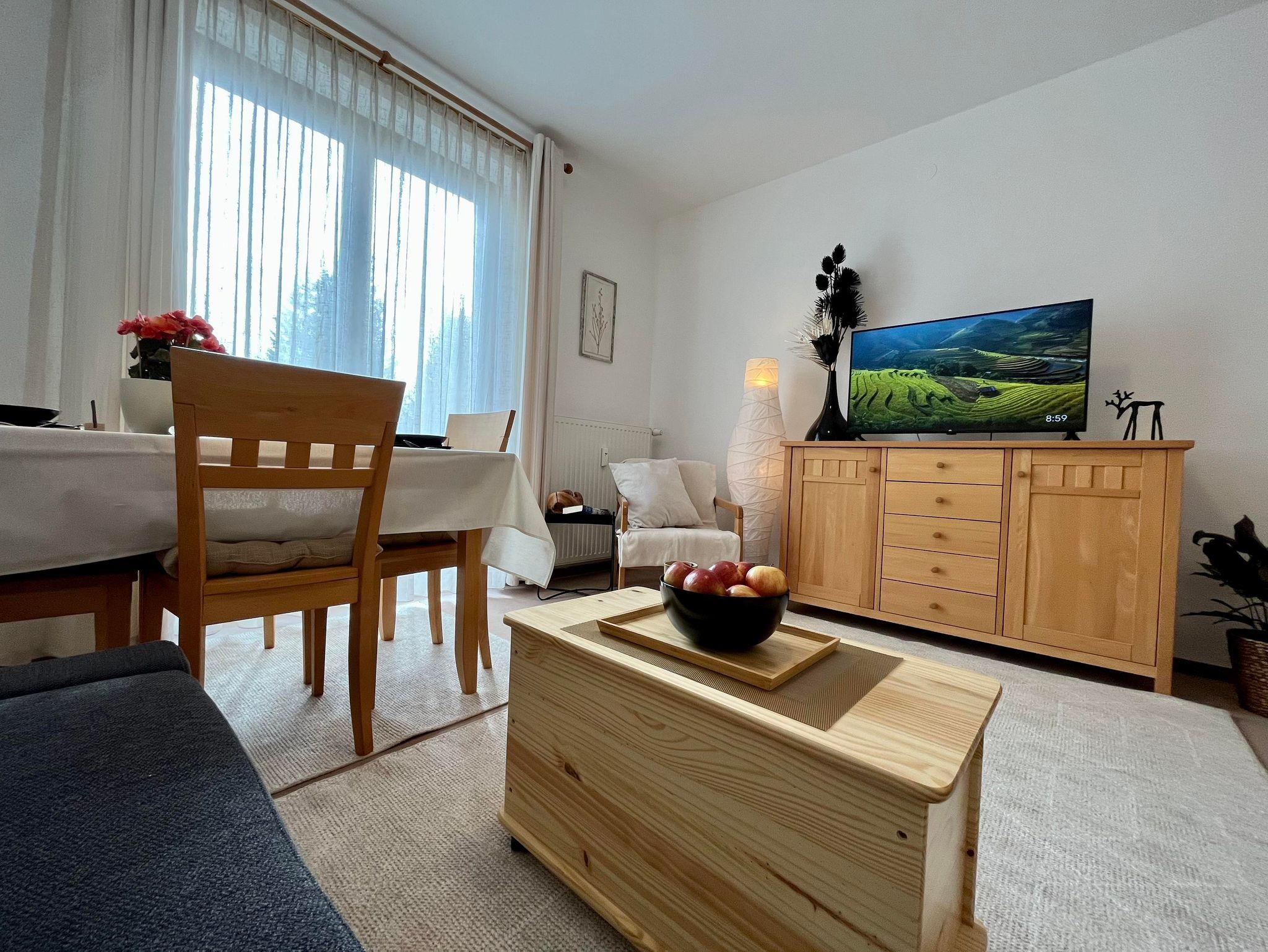 Schöne, gemütliche Wohnung in zentraler Lage, neben Skipisten, Supermärkten, Restaurants. Küche, sonniges Wohnzimmer mit Schlafcouch und Balkon, Schlafzimmer und Bad. Privatparkplatz und Skiraum