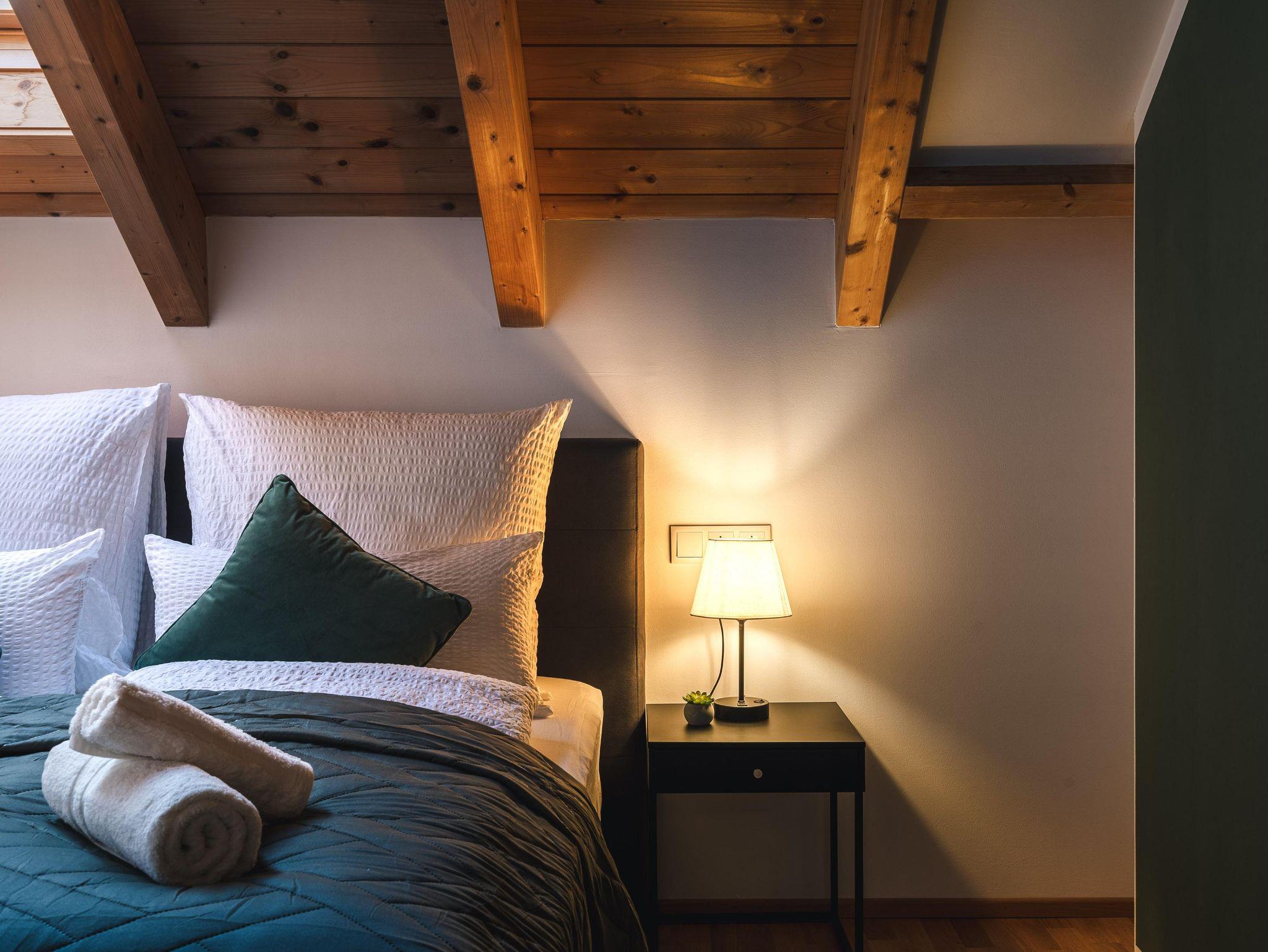 Im Anschluss könnt ihr den erfolgreichen Tag auf dem Berg bei einem Absacker auf der großzügigen Terrasse Revue passieren lassen, bevor ihr erschöpft ins bequeme Boxspringbett fällt und erholsamen Schlaf genießt.