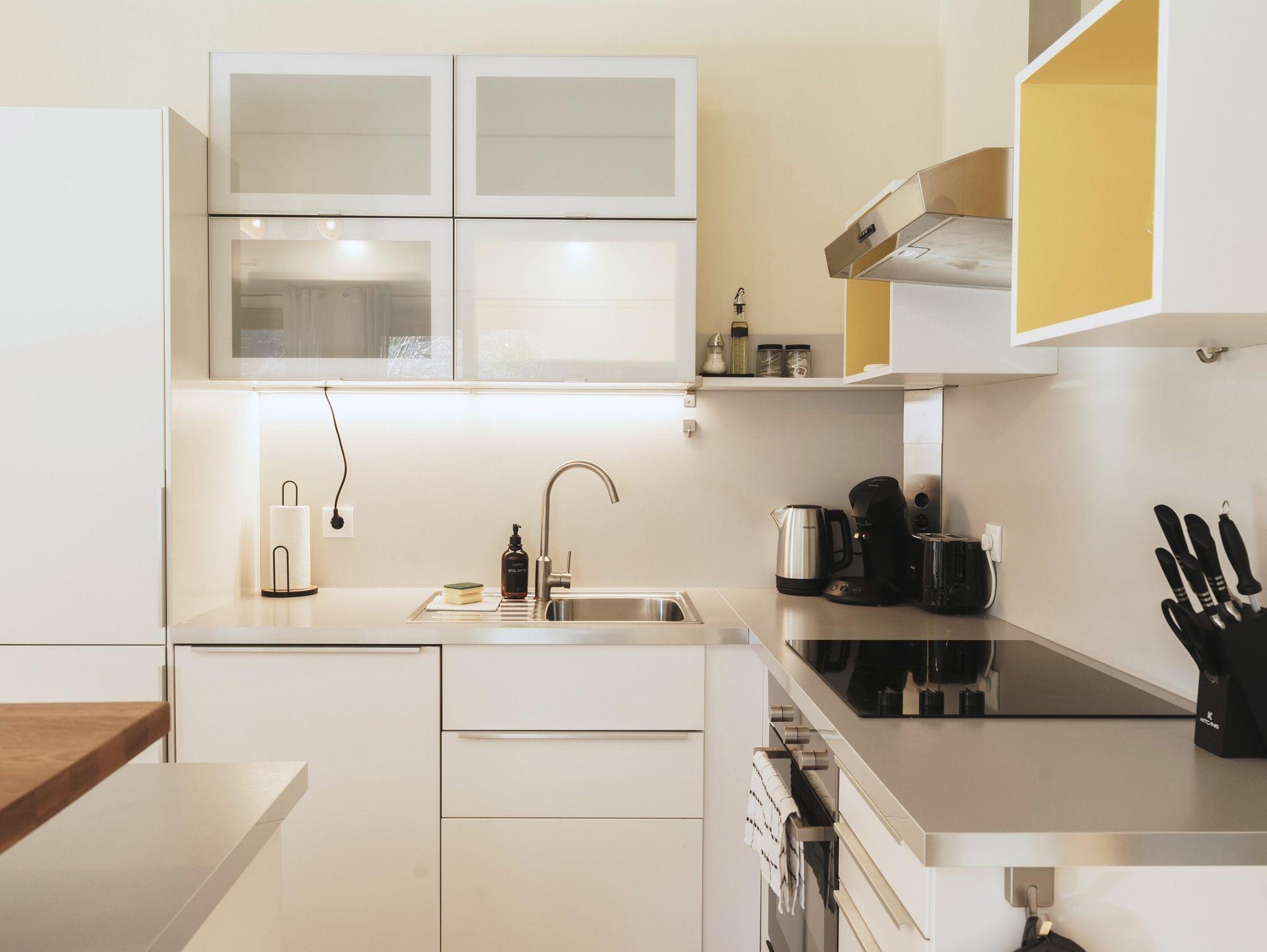 Die voll ausgestattete Küche bietet euch die Möglichkeit, eure Lieblingsgerichte selbst zuzubereiten. Eine Küchengrundausstattung, wie Geschirrspülmittel & Tabs, Salz, Pfeffer, Öl, Zucker, ein paar Teebeutel & Kaffee-Pads für die Kaffeemaschine (Philips Senseo) stellen wir euch gerne kostenlos zur Verfügung!