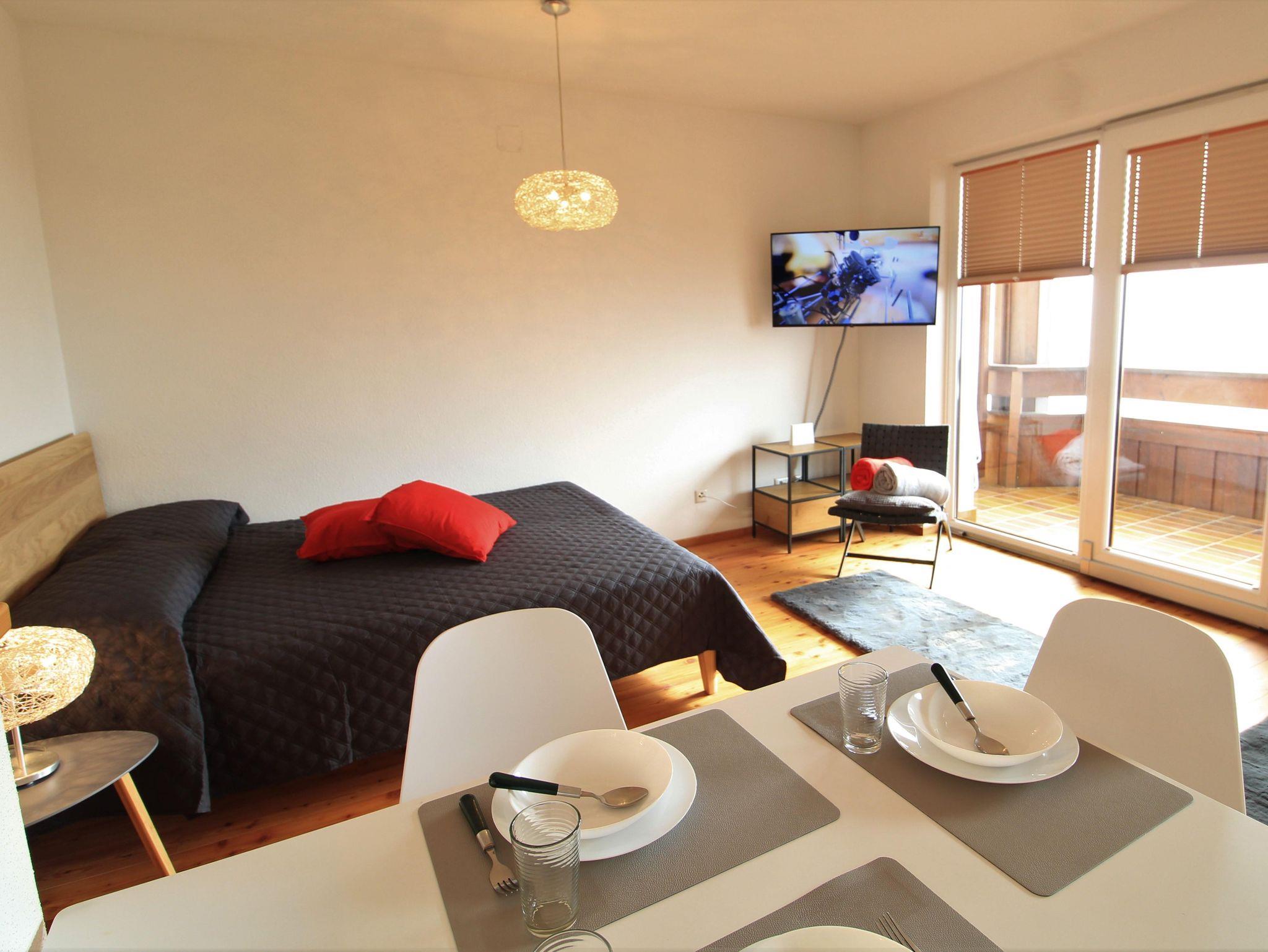 Neues und sehr schönes Studio, hell und gut ausgestattet, 300 m von Römerbad Therme und Kaiserburg Seilbahn entfernt. Ein Doppelbett, ein Doppelschlafsofa, eine Küche mit Backofen und Mikrowelle, ein Badezimmer mit Dusche, ein großer Balkon mit Panoramablick, eine Waschmaschine, ein Ski- und Fahrradkeller sowie ein privater Parkplatz in der Garage.