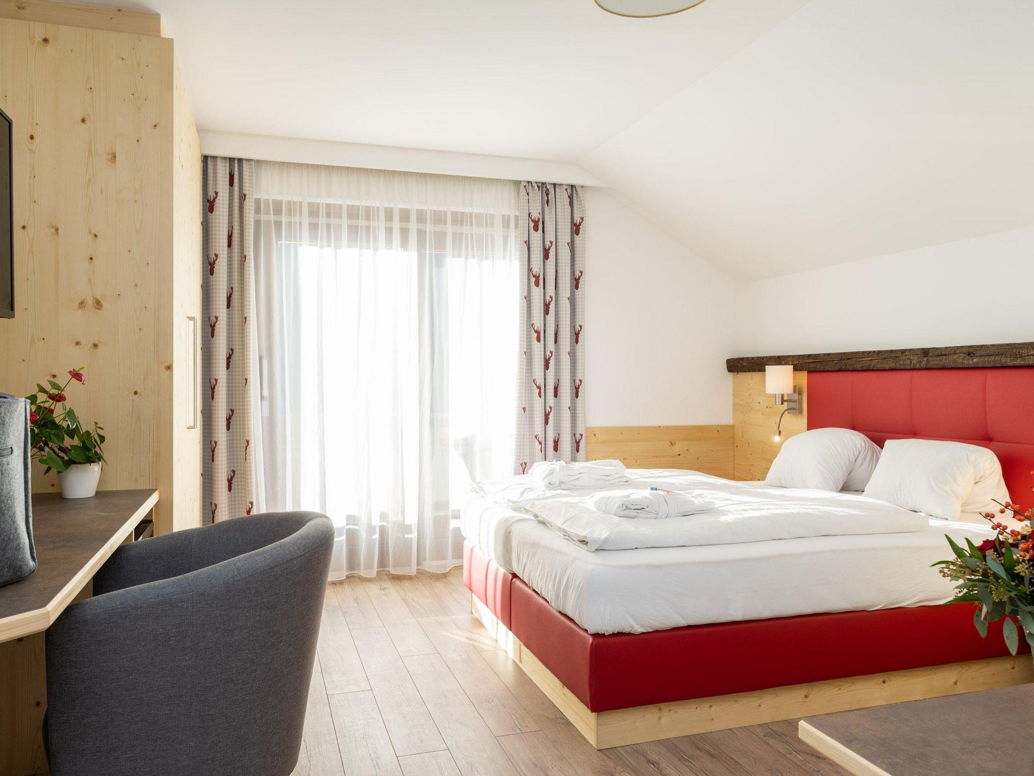 Junior Suite Sonnwiesen, Ca. 37 m² (für 2 bis 4 Personen) Gemütlicher Schlafraum und Wohnecke - abtrennbarer zweiter Schlafraum, 2 Kabel-TV´s, Safe, Badezimmer mit Badewanne und WC, Kosmetikspiegel, Föhn, Bademantel, Wellness-Korb, GRATIS WLAN
