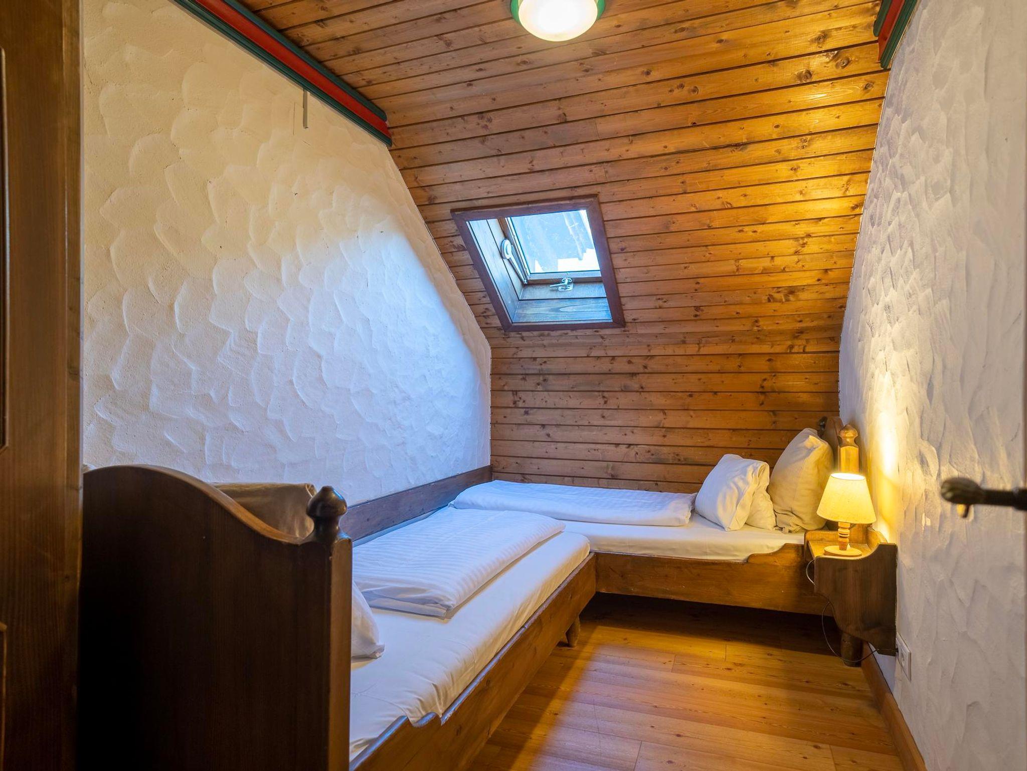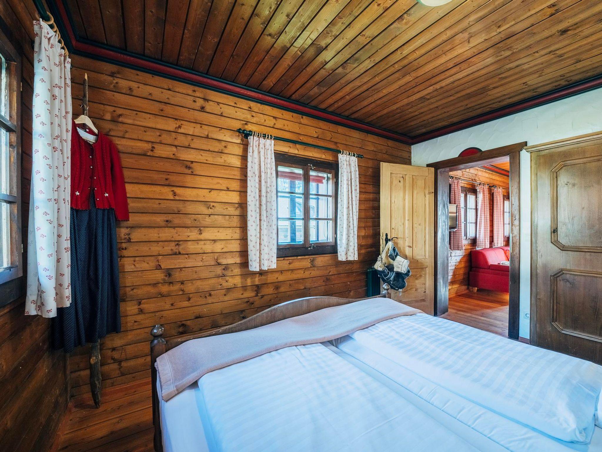 Vorraum mit komplett eingerichteter Küche (mit Ceranfeld-Kochplatten, Kühlschrank, Backofen, Geschirrspüler und Kaffee-Kapsel-Maschine), gemütlicher Wohn-Essbereich mit Kachelofen, 2 Couchbetten, 1 Schlafzimmer mit Doppelbett, 1 Schlafzimmer mit zwei Einzelbetten, Badezimmer mit Dusche und WC.