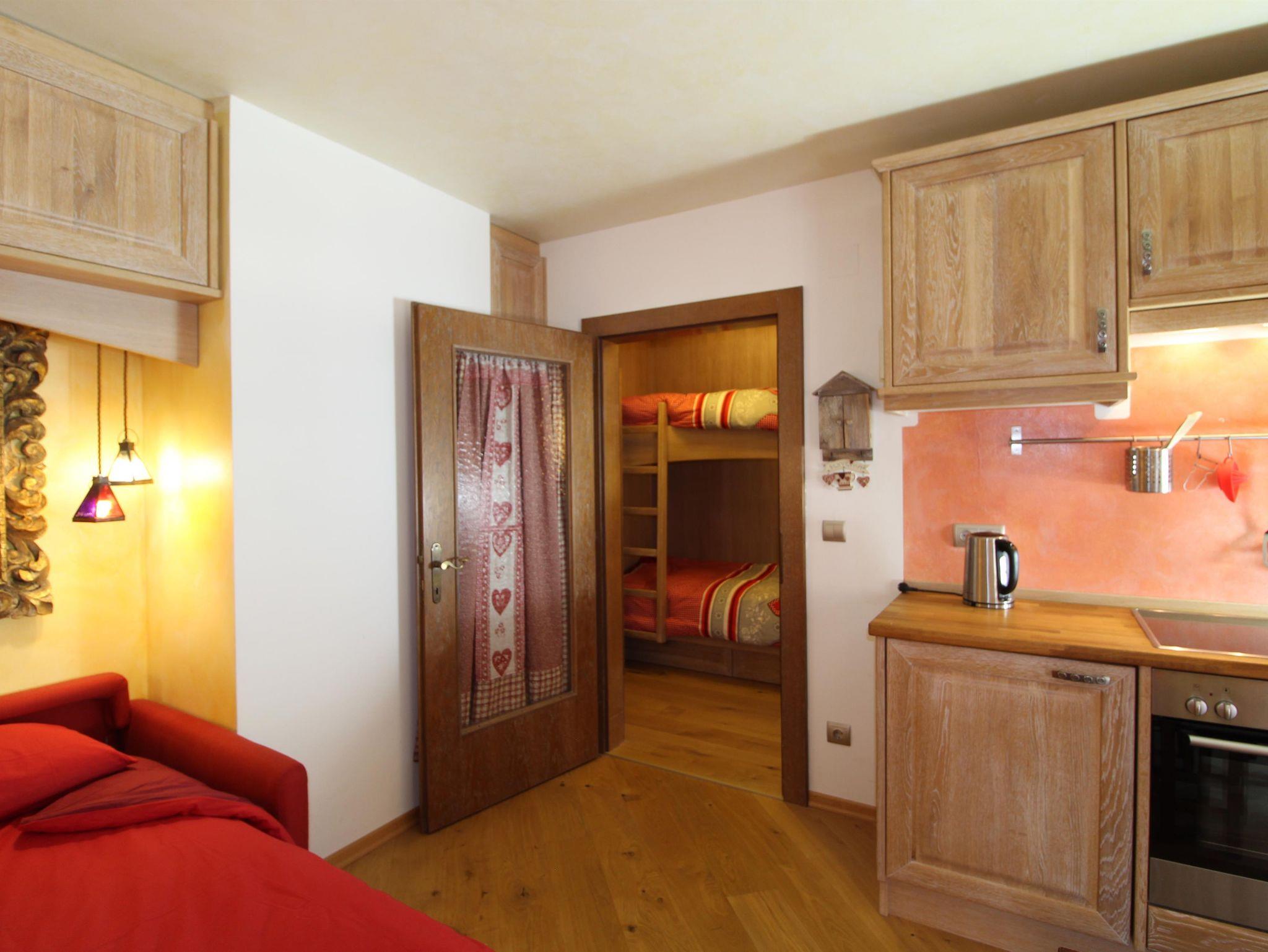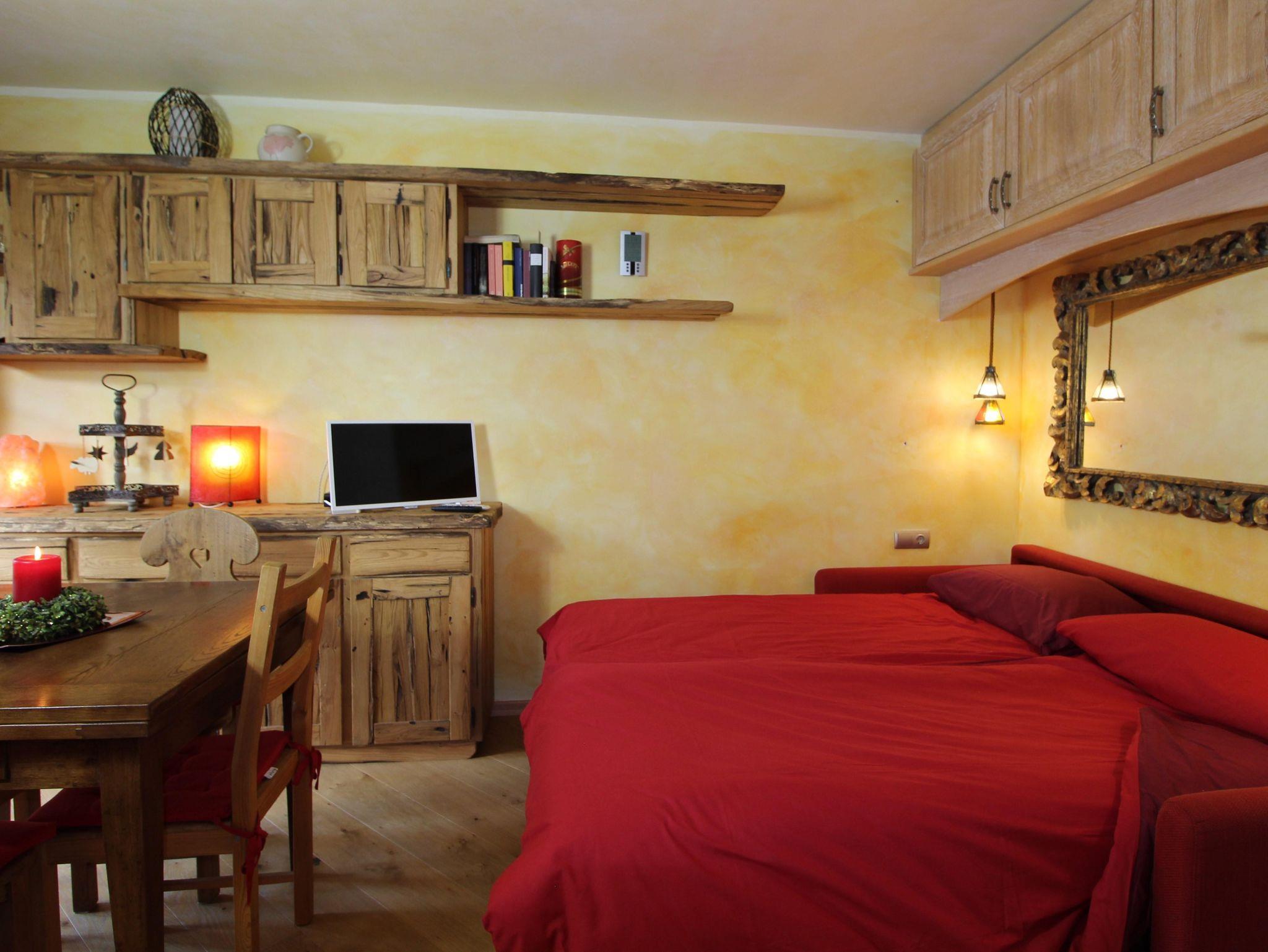 Kleine und sehr schöne Wohnung im Ortsteil Sankt Oswald. Der Raum dieses Studios wurde geschickt genutzt, um 4 Betten unterzubringen, die sich auf ein Etagenbett im Flur und ein bequemes Doppelschlafsofa im Wohnzimmer verteilen. Das Badezimmer verfügt über ein Fenster und eine Whirlpool-Badewanne zum Entspannen nach einem Tag Ski oder Wandern auf den Bergen. Die Küche ist komplett ausgestattet mit Spülmaschine, Backofen, Kühl- und Gefrierschrank. Balkon mit Blick auf die Piste, Skiraum und Parkplatz runden die Annehmlichkeiten dieses Hauses ab.