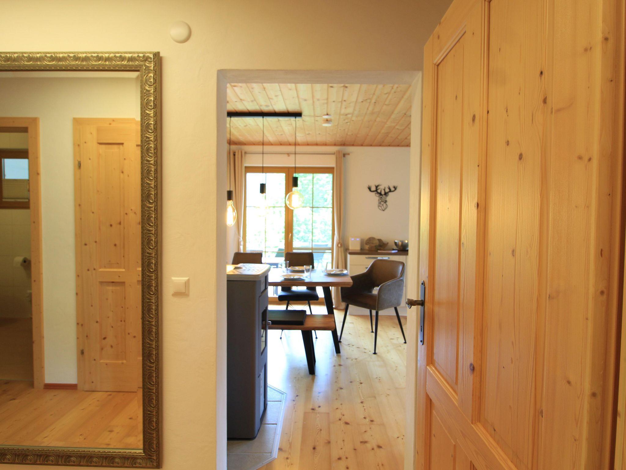 Neue Wohnung im Erdgeschoss mit Garten, komfortabel und hell, mit zwei Doppelzimmern, einem kompletten Badezimmer mit Dusche, einer Toilette, einem großen Wohnzimmer mit Schlafcouch und einer Küche mit Backofen und Geschirrspüler, Pelletofen, Außenterrasse. Außenparkplatz für zwei Autos und Keller für Sportsausrüstung.