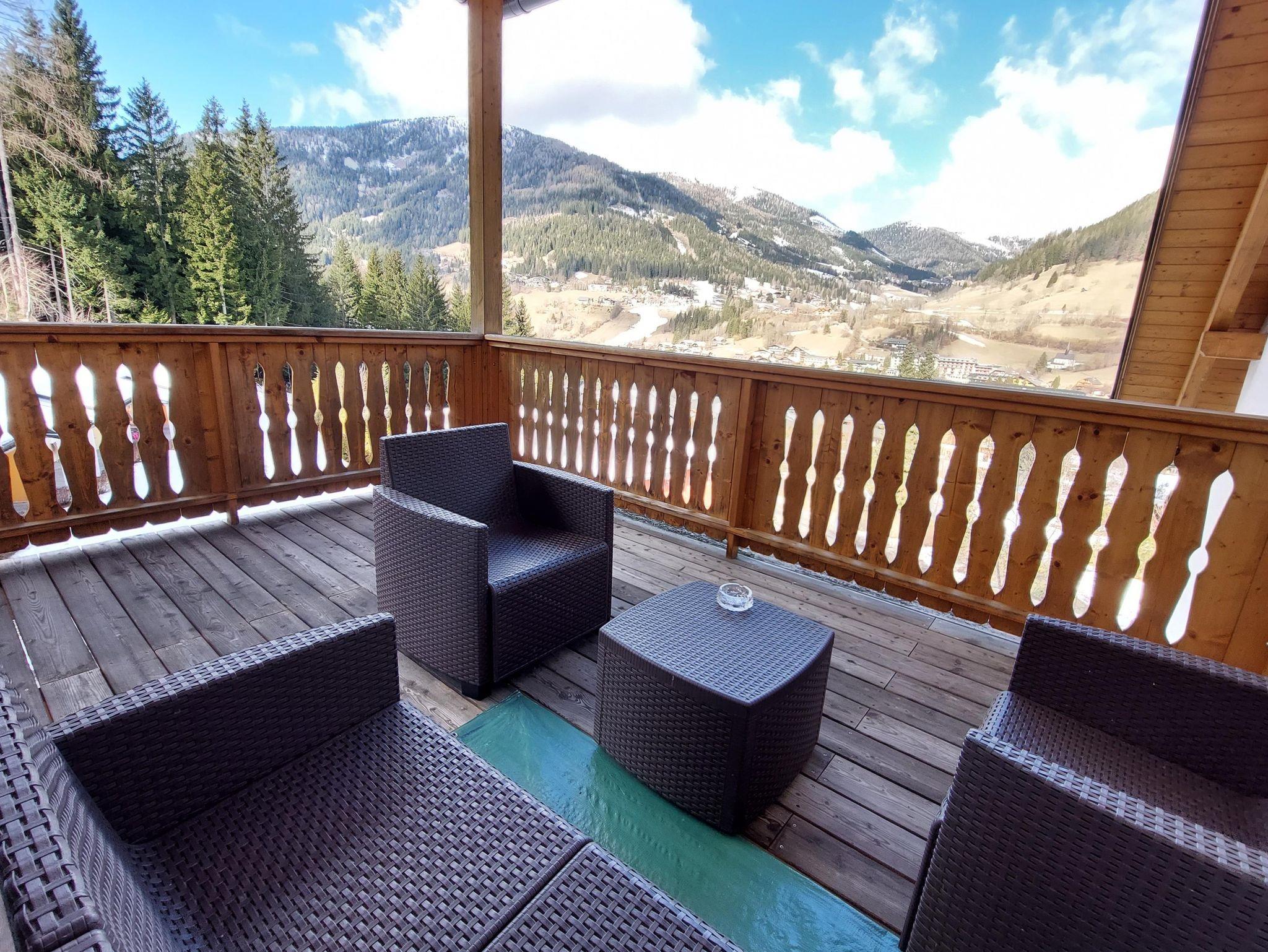 Wunderschöne neue Ski-to-door Wohnung auf zwei Ebenen in panoramischer Lage. Drei Schlafzimmer mit Doppelbett, zwei komplette Bäder mit WC, Waschbecken, Dusche und Bidet, bequemes Wohnzimmer mit Küche, Esstisch für 6 Gäste, Couch und Holzofen und Zugang zu einem tollen Balkon mit Blick auf Tal, Dorf und Skipiste. Eine Waschmaschine steht zur Verfügung, wie auch zwei bedeckte Parkplätze und ein Abstellraum für sportliche Ausrüstung (Ski, Skischuhe und Fahrräder). Im Winter kann man mit den Skischuhen an einfach die Strasse überqueren und man kommt zur Skipiste der Skischule für Kinder, die auch als Verbindungspiste zum Maibrunn Sessellift dient.