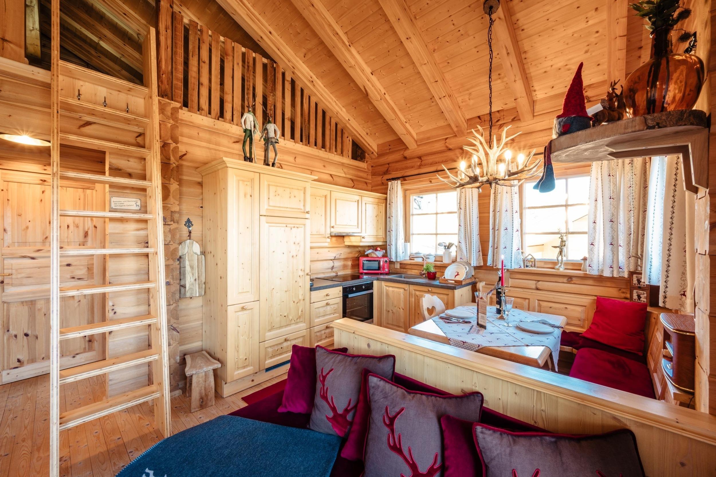 Die Wohnküche ist gemütlich und sehr komfortabel eingerichtet. Nach einem tollen Tag die eigene Panorama-Sauna genießen und zum Abschalten noch ein Glas Wein im Whirlpool! Weiters bietet die Feuerstelle eine Möglichkeit zum Gemeinsamen Zusammensitzen. Bei uns steht dem perfekten und erholsamen Urlaub auf der Alm Nichts im Weg. Tiere sind leider nicht erlaubt!