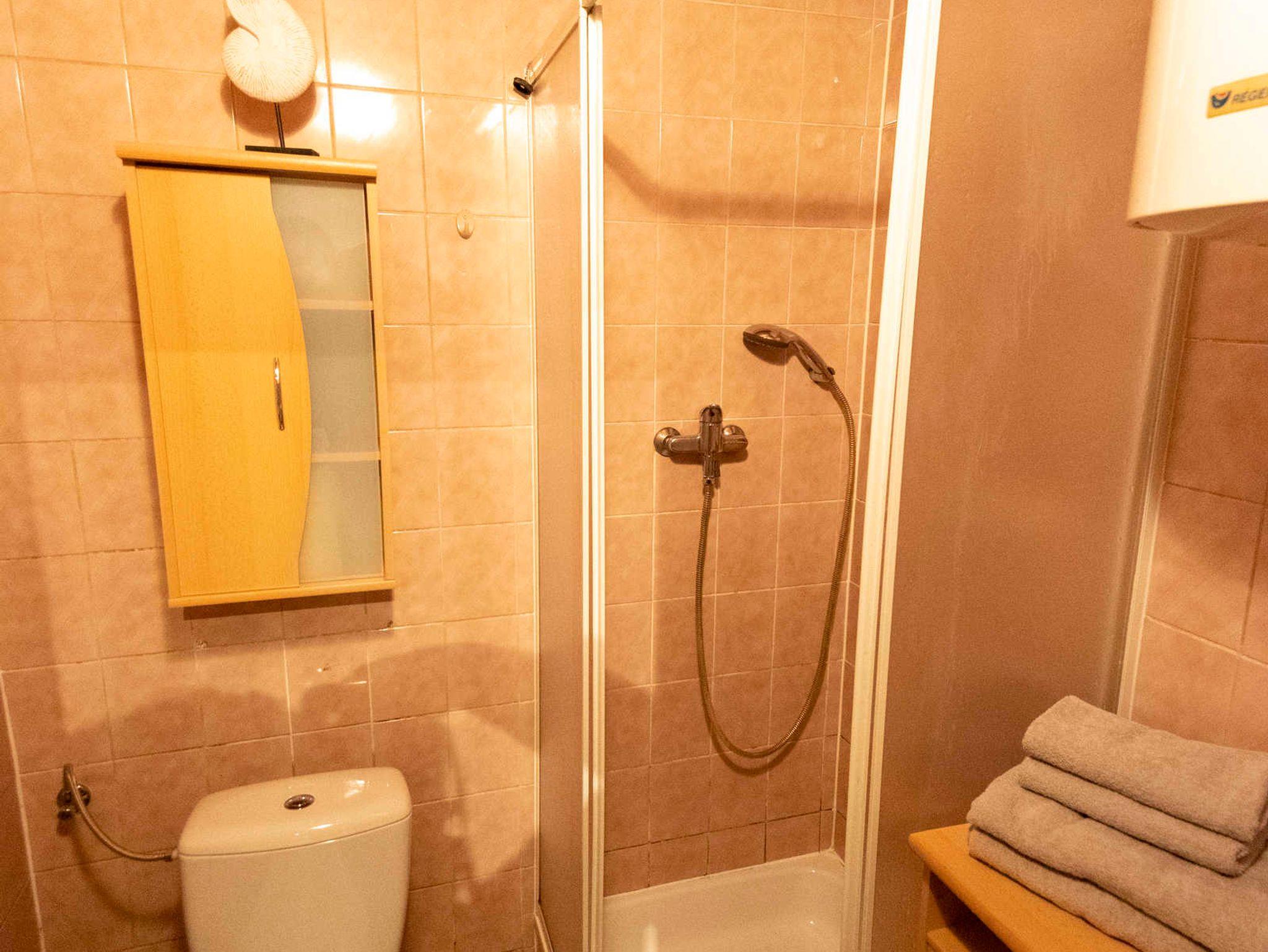 Im Bad mit Dusche werden Handtücher, Shampoo und Duschgel zur Verfügung gestellt. Weiters ist hier auch eine Waschmaschine vorhanden.
