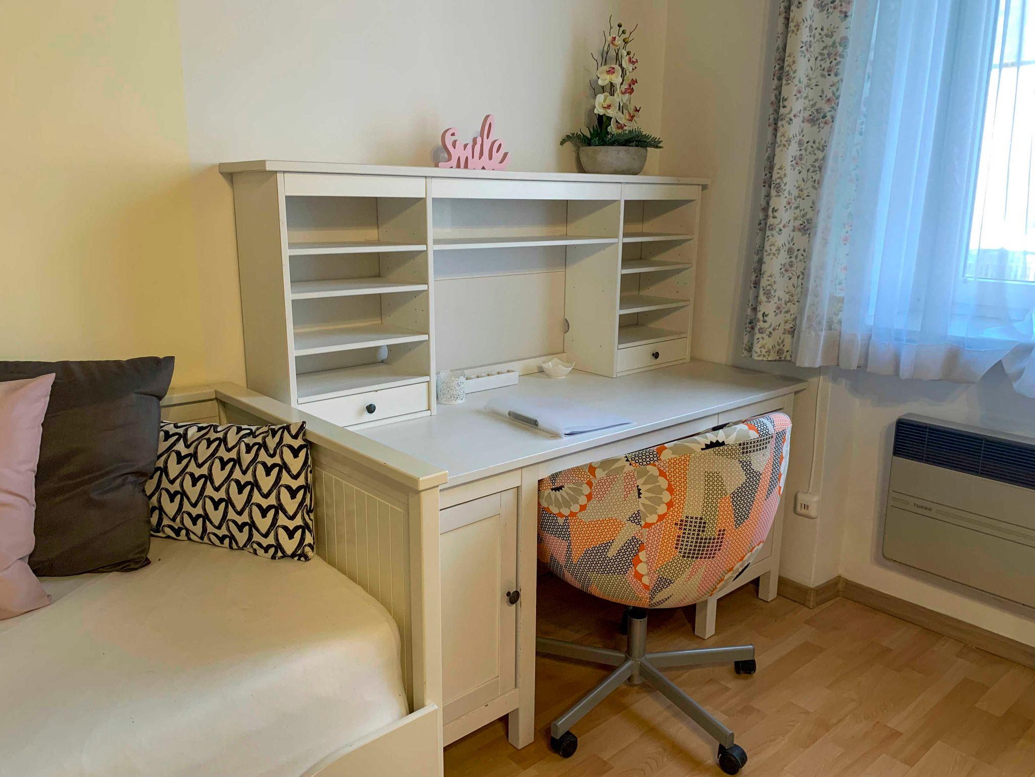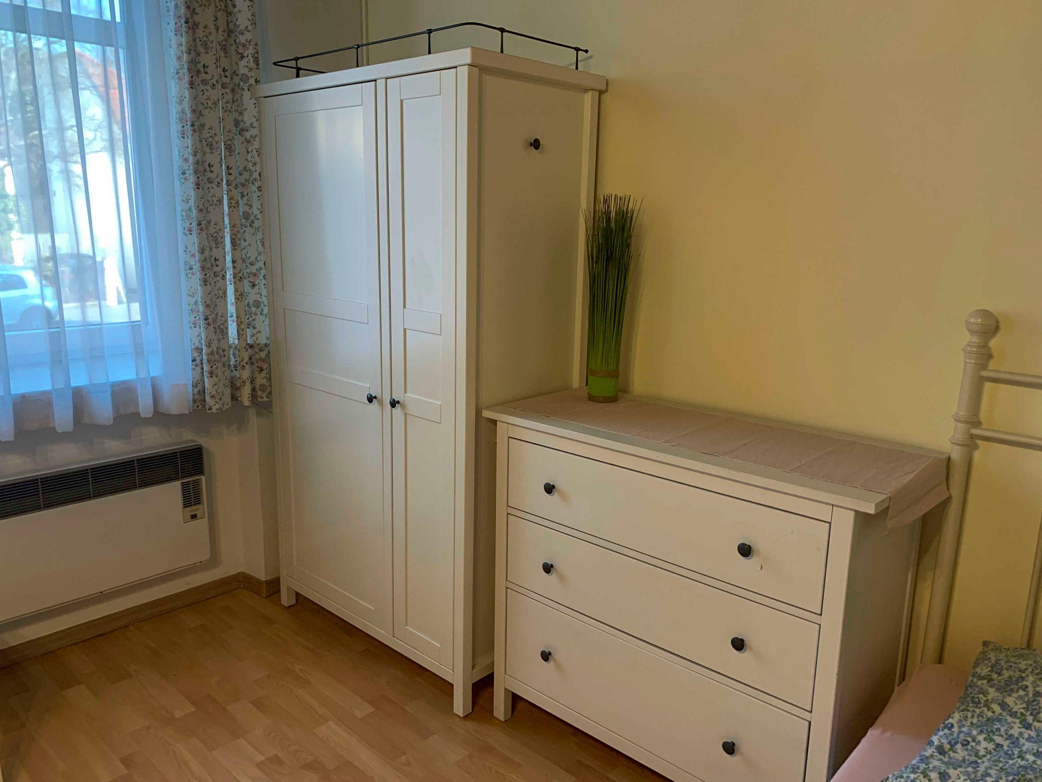Der Schlafbereich besteht aus einem großen Doppelbett (180 x 200), Bettwäsche ist vorhanden. Ein Kleiderkasten sowie Kommoden sind ebenfalls vorhanden.