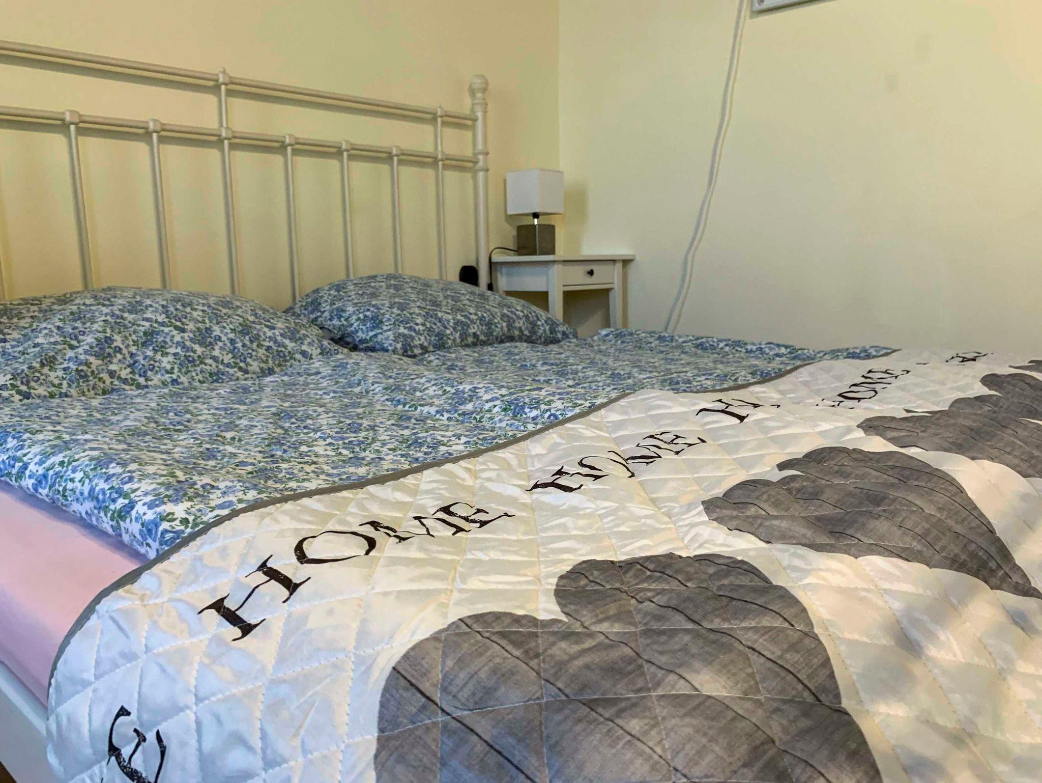 Der Schlafbereich besteht aus einem großen Doppelbett (1,80 x 2m), Bettwäsche ist vorhanden. Ein Kleiderschrank ist ebenfalls vorhanden.