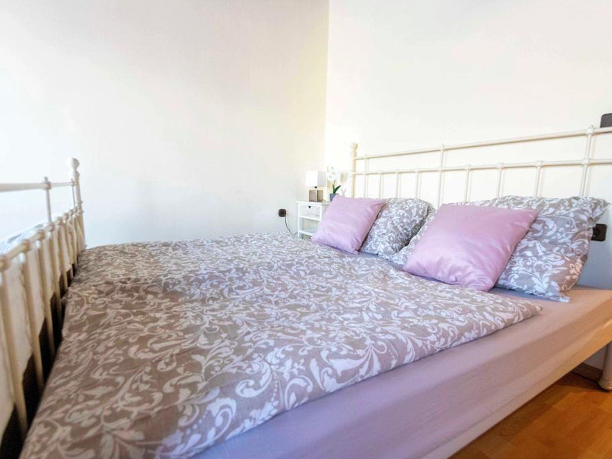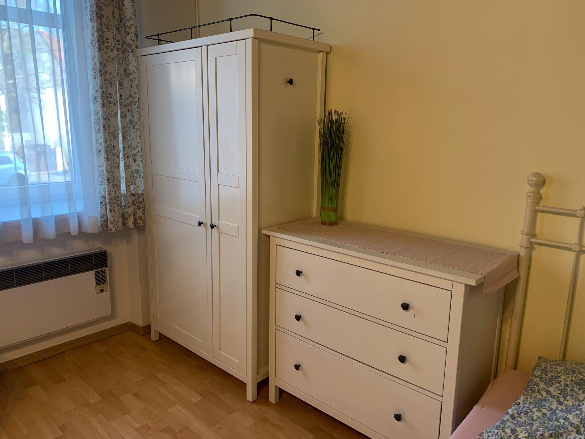 Der Schlafbereich besteht aus einem großen Doppelbett (1,80 x 2m), Bettwäsche ist vorhanden. Ein Kleiderkasten sowie Kommoden sind ebenfalls vorhanden.