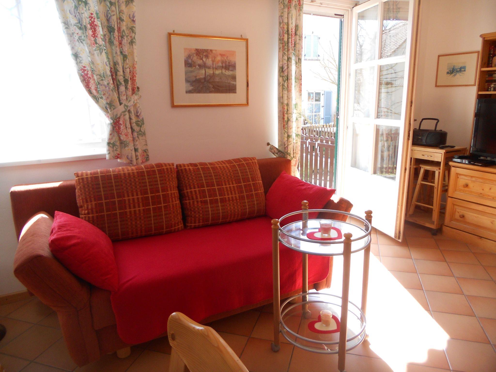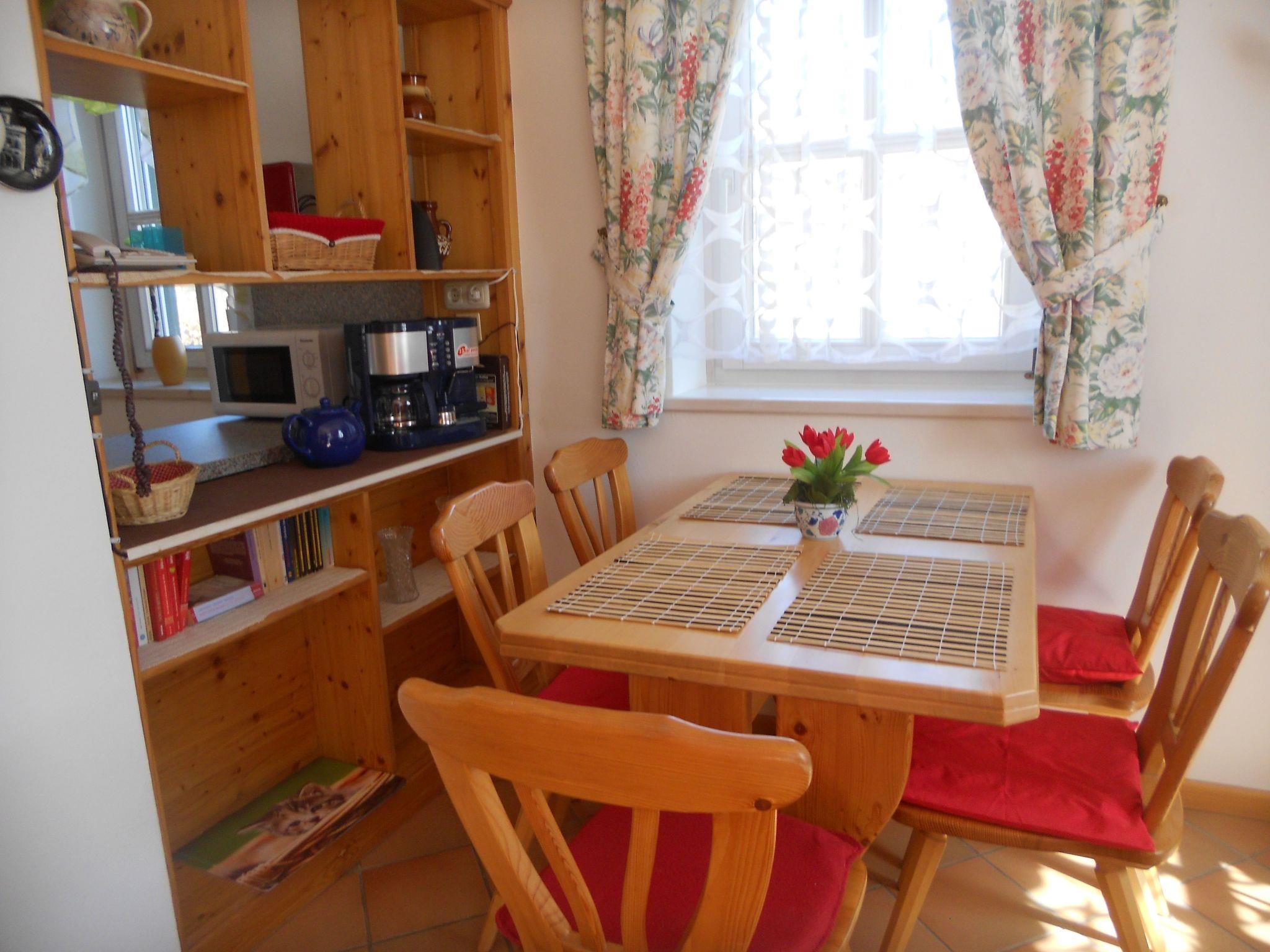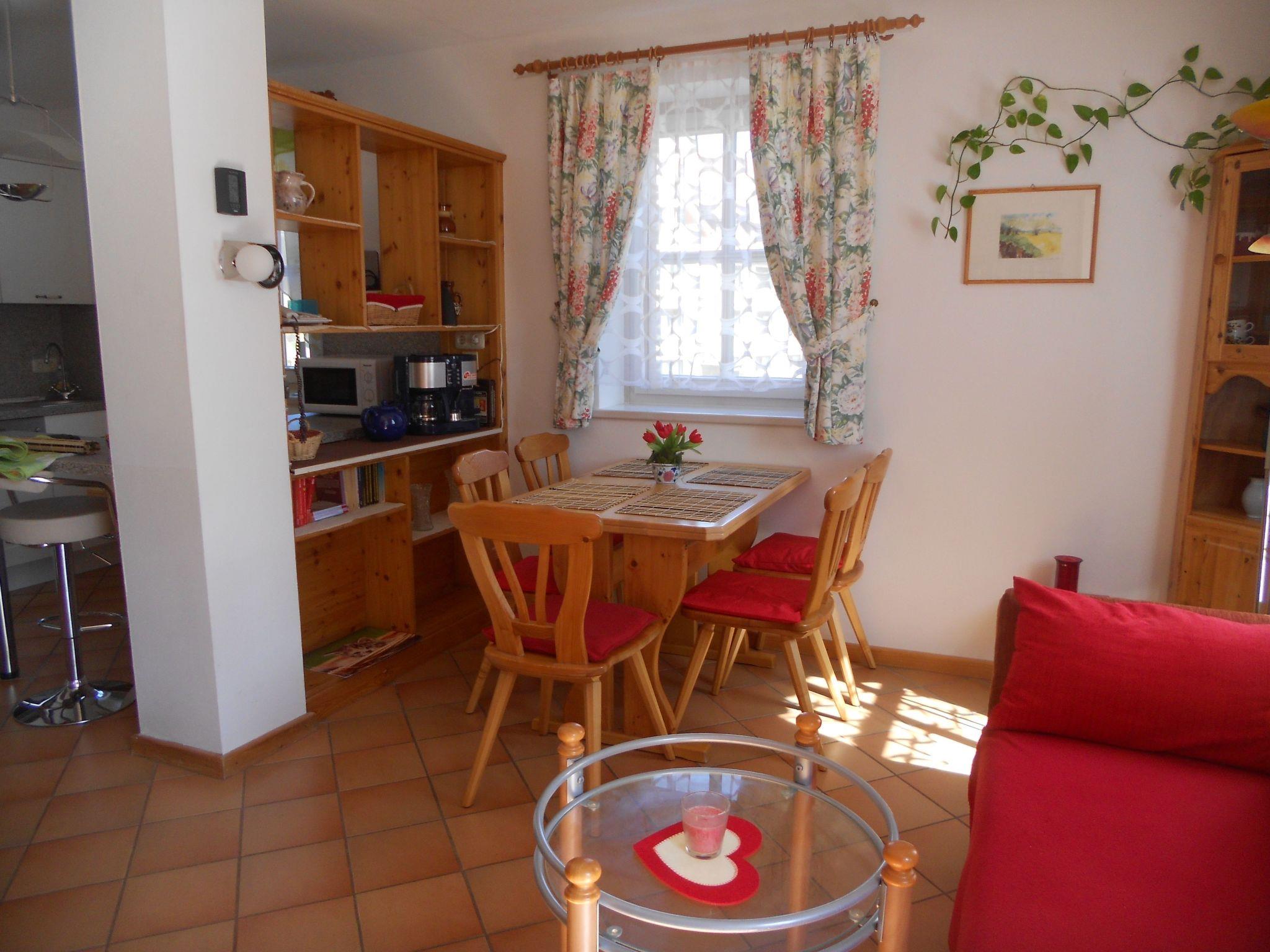 The family-friendly, sunny holiday house of around 62m² is suitable for four to five people in summer or in winter. You can experience a wonderful oasis of well-being here all year round. The lower floor has underfloor heating, whilst the upper floor has radiators. The combined living and dining room includes the new kitchen, equipped with all the necessary utensils, a dishwasher, microwave, fridge with freezer compartment, coffee machine and kettle. The visually separate living and dining room invites you to relax. You can dine together at the dining table after cooking. Satellite TV, a radio, a box of games and books are available. Stairs lead to the upper floor. There is a stairlift for the disabled. There are two bedrooms on the first floor, one with a double bed and one with a queensize bed (140cm wide). The master bedroom has a further satellite TV. Towels, tea towels and bed linen are provided. There is plenty of cupboard space. All the windows are fitted with fly screens. There is a storage room with a washing machine and dryer, broom, dustpan, two fridges with a freezer compartment and other useful items. There is a washing space next to it with a WC and washing machine. A little entrance area leads into the bathroom with a shower and WC. Note that the WCs in the house are higher than normal toilets.