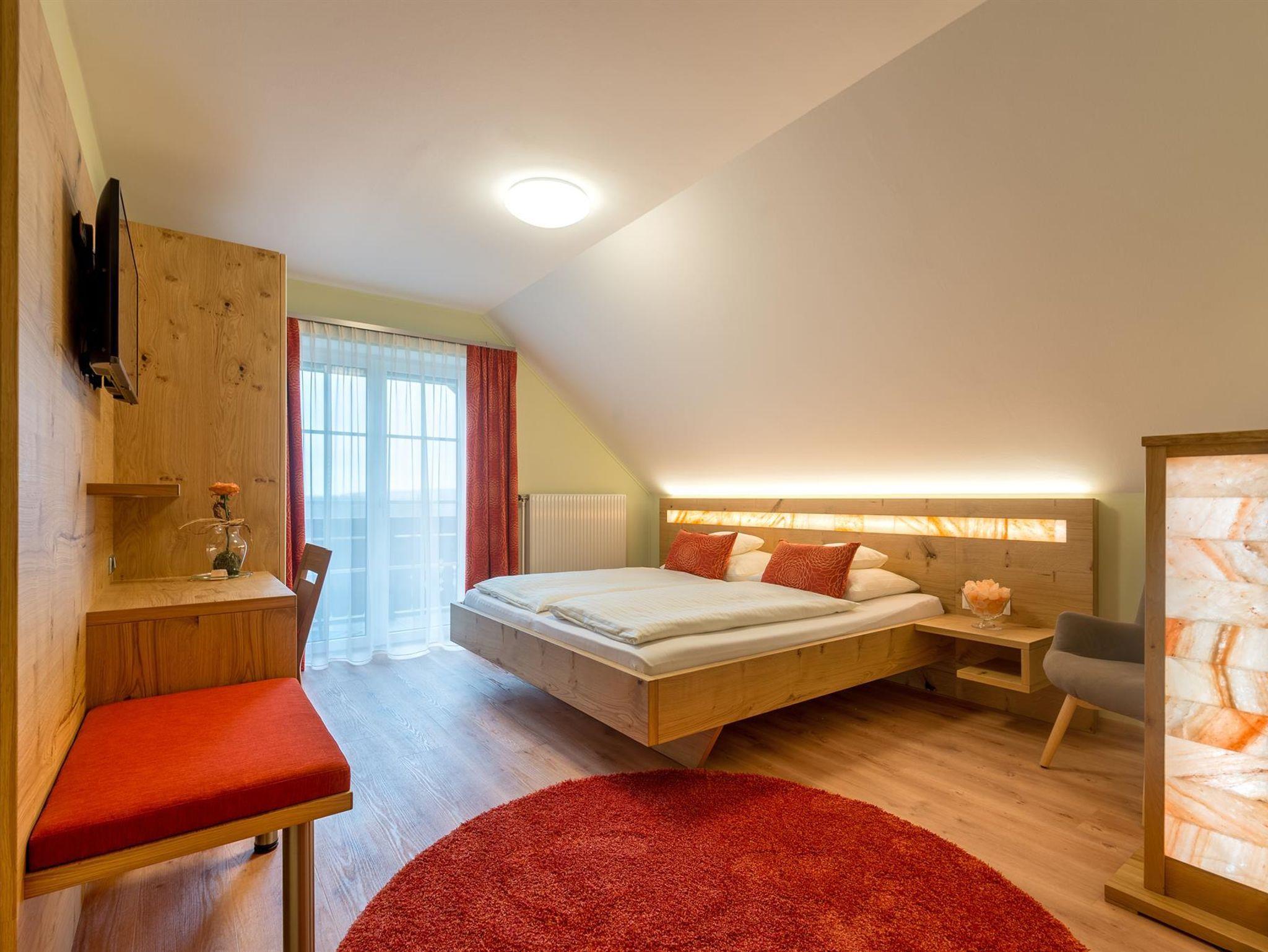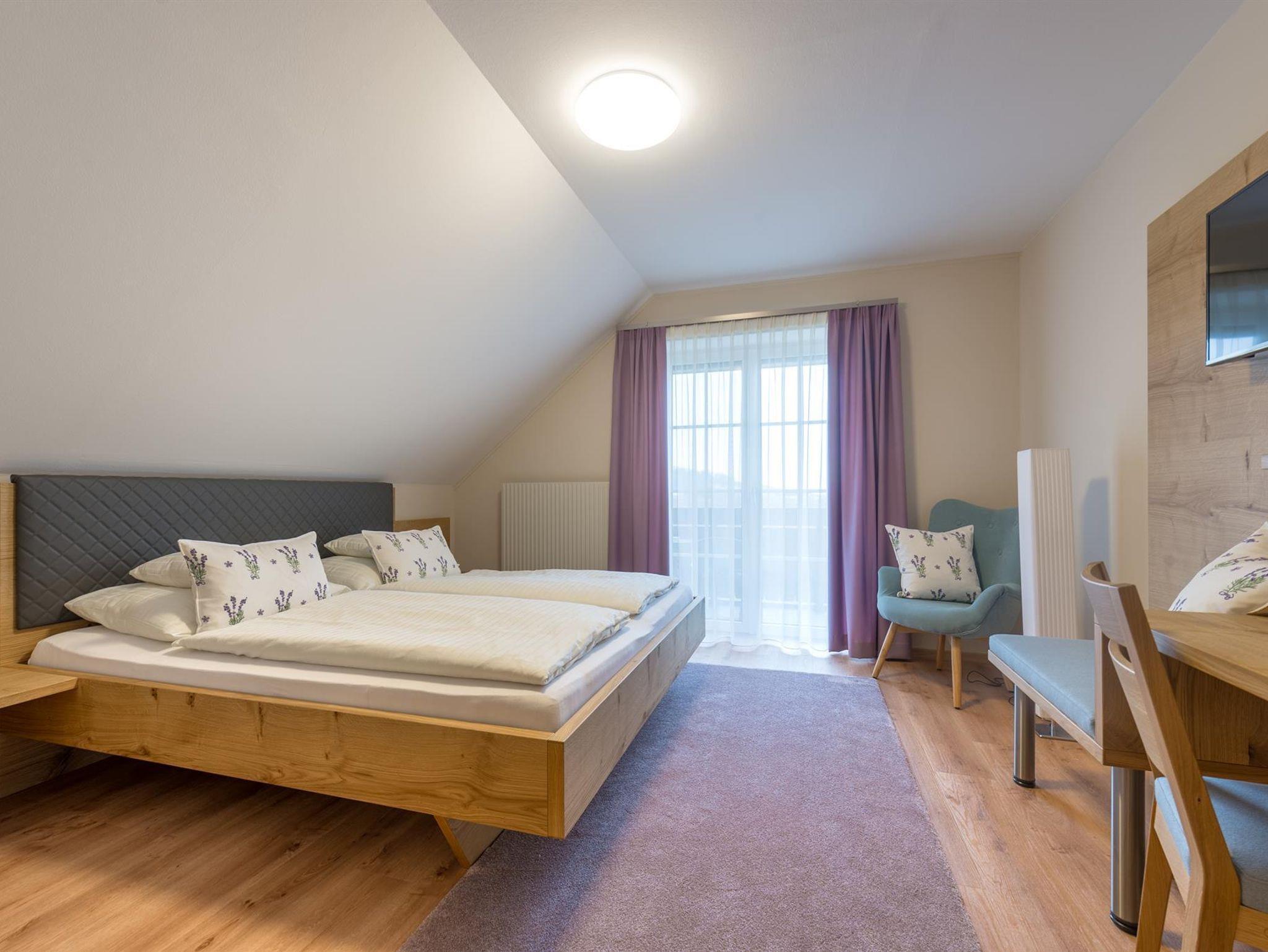 Neue Themenzimmern, wie das Lavendelzimmer, das Salzzimmer, das Sonnenzimmer oder das Romantikzimmer, erfreuen unsere Gäste und bieten ein angenehmes Ambiente. Der Balkon nach Süden, richtet den Blick auf den Golfplatz.