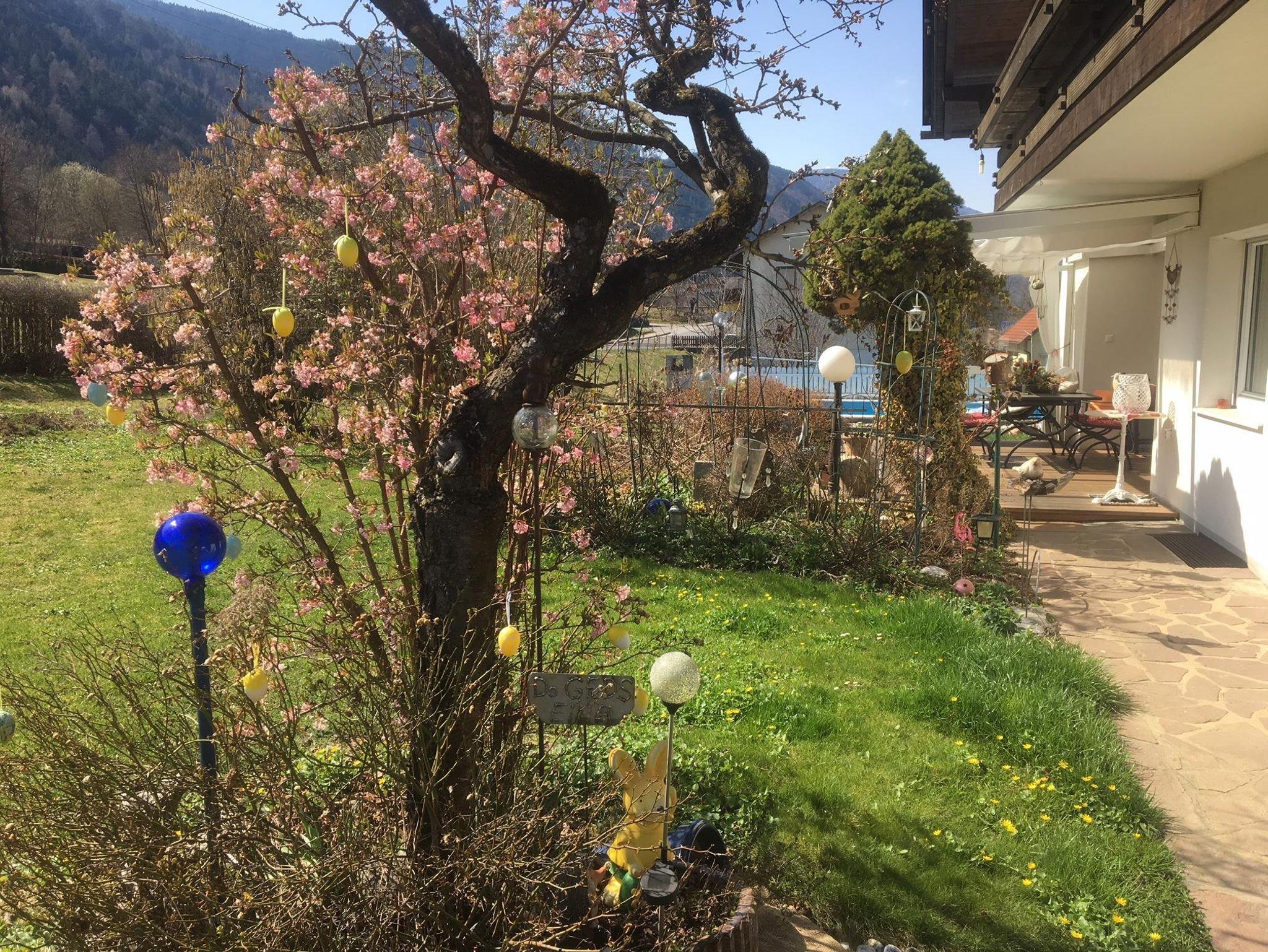 Unser Haus liegt mitten in der Natur. Umgeben vom saftigen Grün unseres Gartens, umrandet von einem kleinen Bächlein, dass direkt am Grundstück vorbei rinnt und eingebettet in die wunderbare Berglandschaft der Hohen Tauern und der Gailtaler Alpen. Unser Garten ist ein Kleinod. Wir legen viel Wert darauf, dass auch Bienen und Schmetterlinge Blüten zum Verweilen finden. Wir bauen unser Gemüse selbst an und ernten die Früchte der unzähligen Obstbäume.