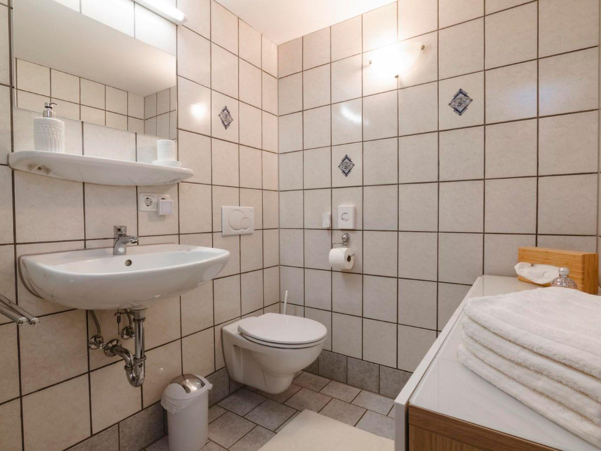 Die Wohnung ist ca. 68m² groß, besteht aus Bad, Wohnzimmer mit Essecke, Couch und zwei getrennten Schlafzimmern sowie einer Terrasse und sehr guter Ausstattung: Parkplatz, Terrasse, Ceranfeldherd, Backofen, Herd, Gefrierfach, Geschirrhandtücher, Geschirrspüler, Filter- und Tabs-Kaffeemaschine, Kühlschrank, Mikrowelle, Toaster, Wasserkocher, Handtücher, WLAN, TV mit Radio, Beauty-Infrarotkabine.