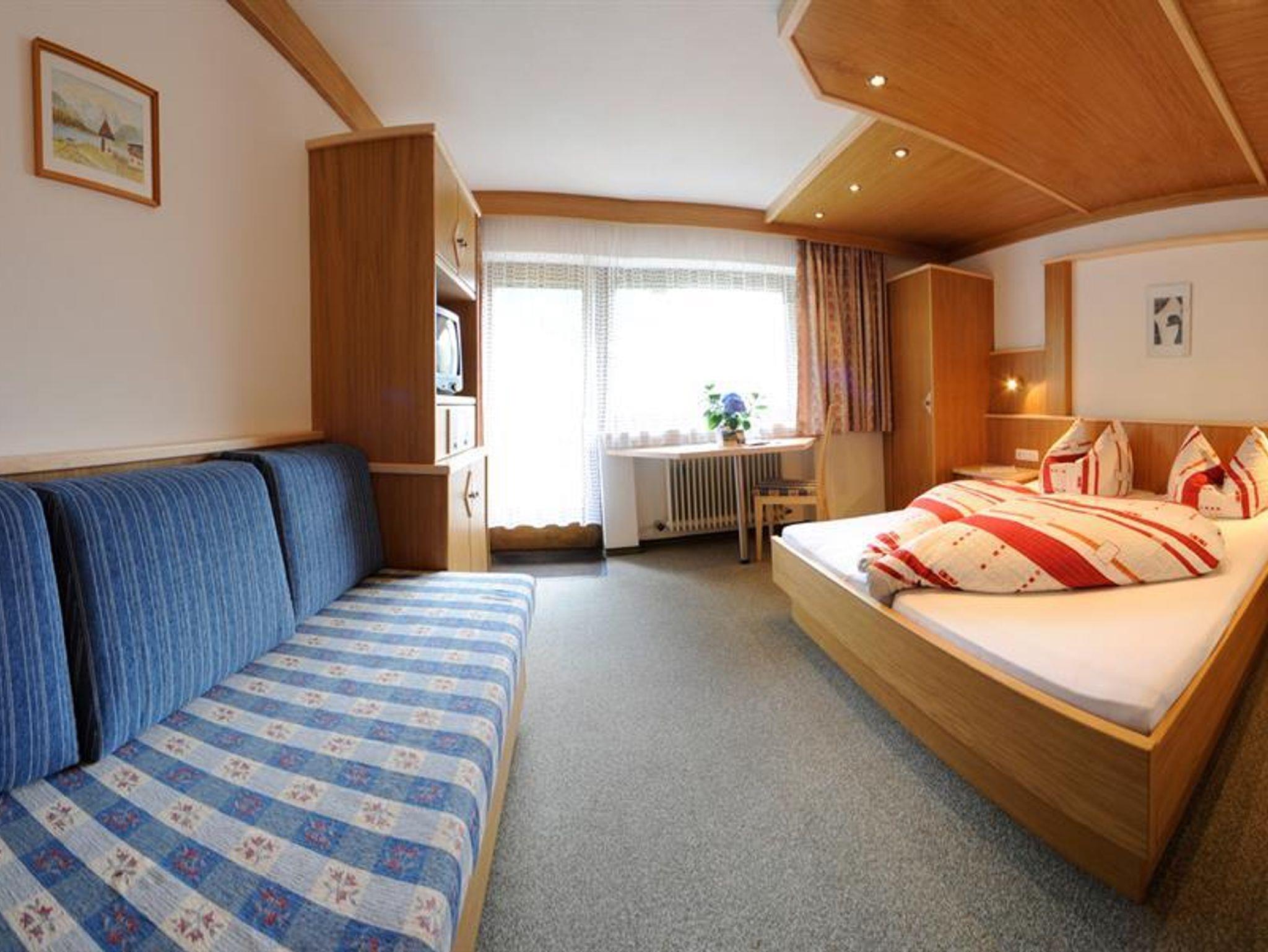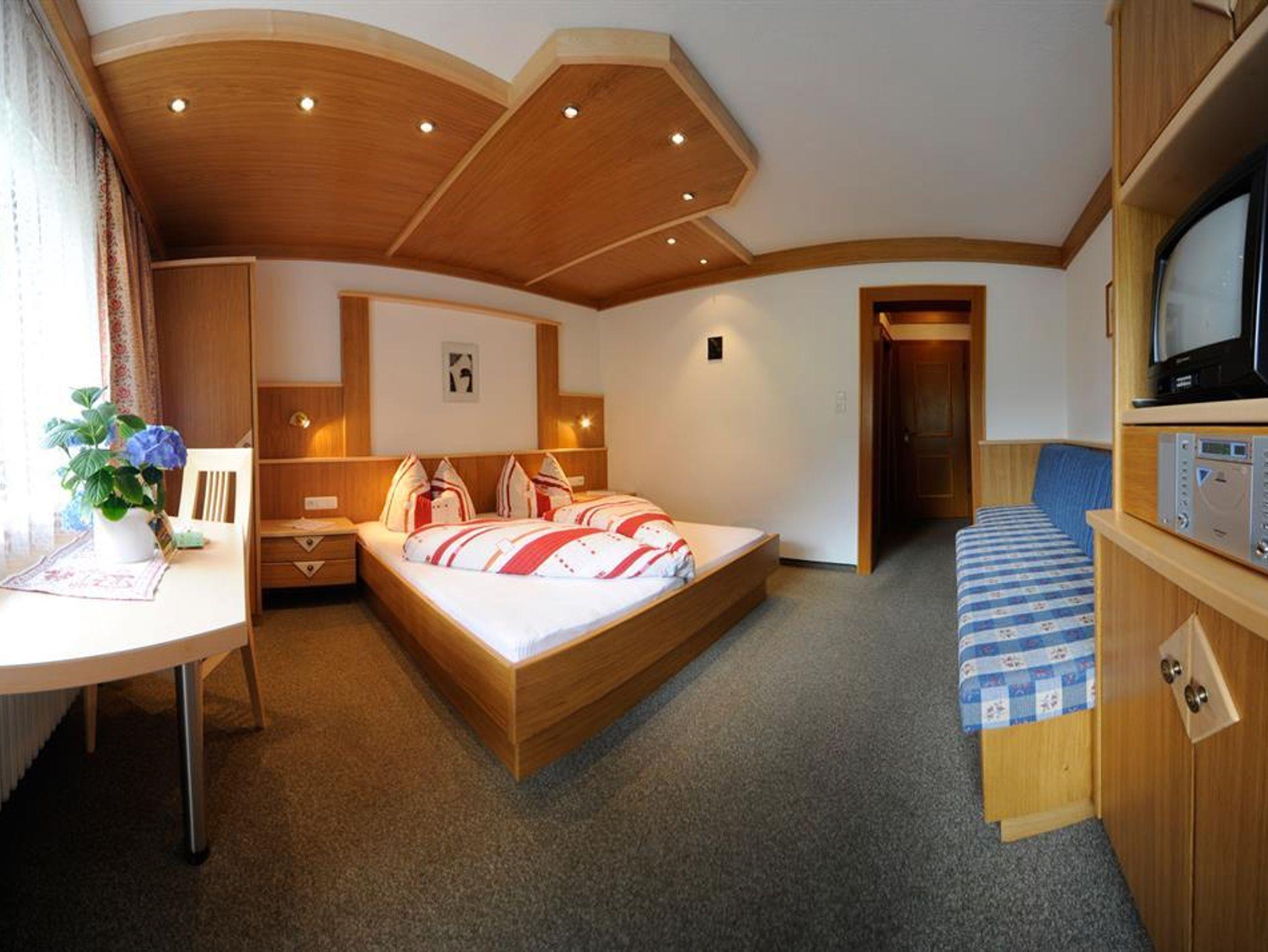Komfortables Mehrbettzimmer aus Vollholzmöbel mit Balkon, DU/WC,TV, Radio, Safe, Fön, Frühstücksbüffet, Sauna 2x wöchentlich und Carport je nach Verfügung.