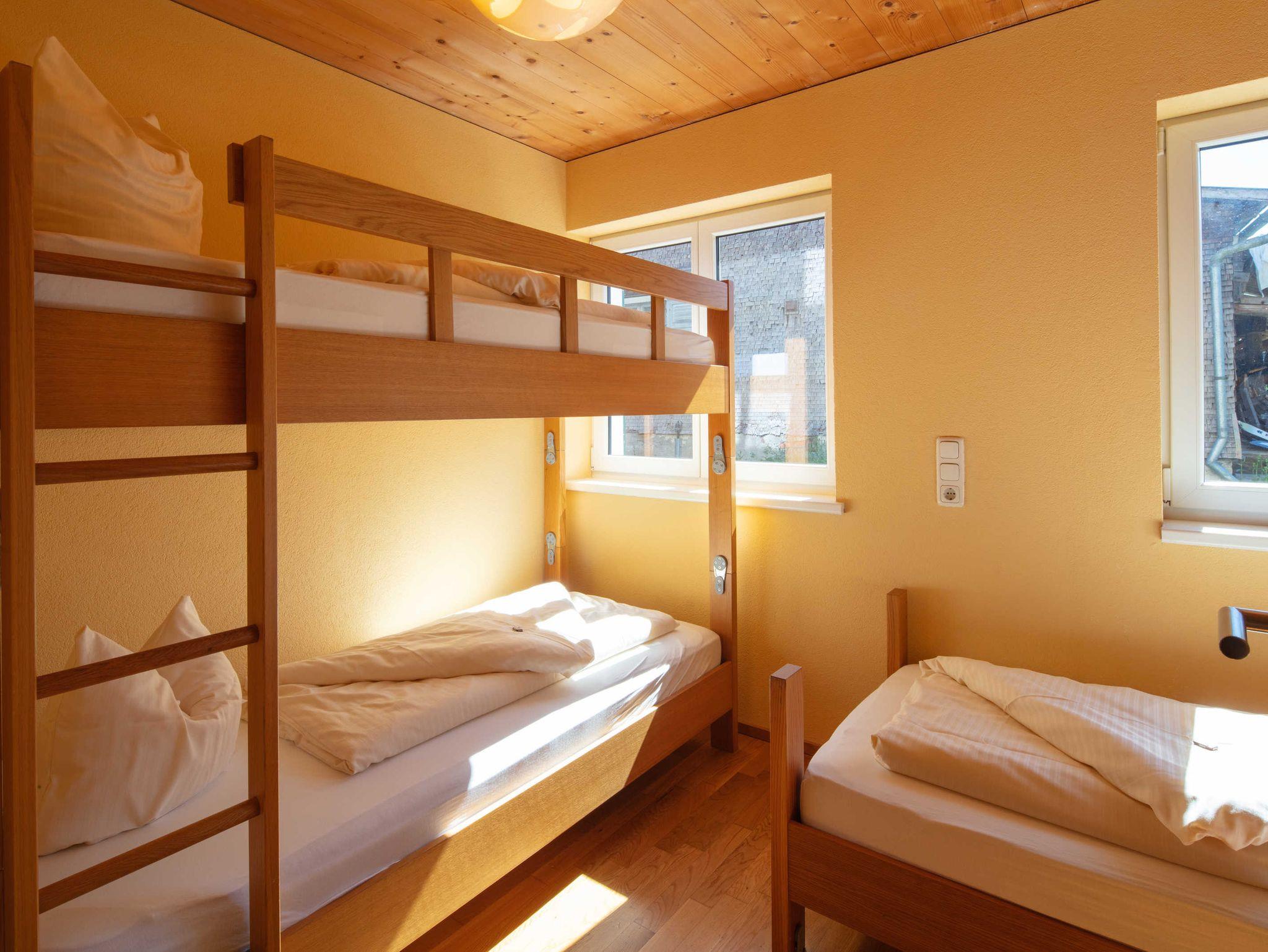 Großzügig und hell sind die Familienappartements mit 1 großen Doppelzimmer und 1 kleinen Kinderschlafzimmer, die teilweise mit Stockbetten ausgestattet sind.