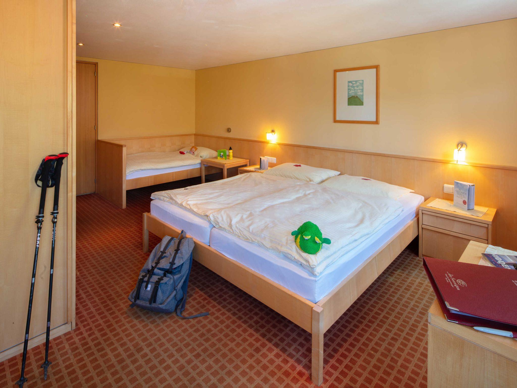 Hell, geräumig und ruhig gelegen sind die ?Sonnenzimmer?, die für 2 Erwachsene oder 2 Erwachsene mit max. 2 Kindern genügend Freiraum im Familienurlaub bieten.