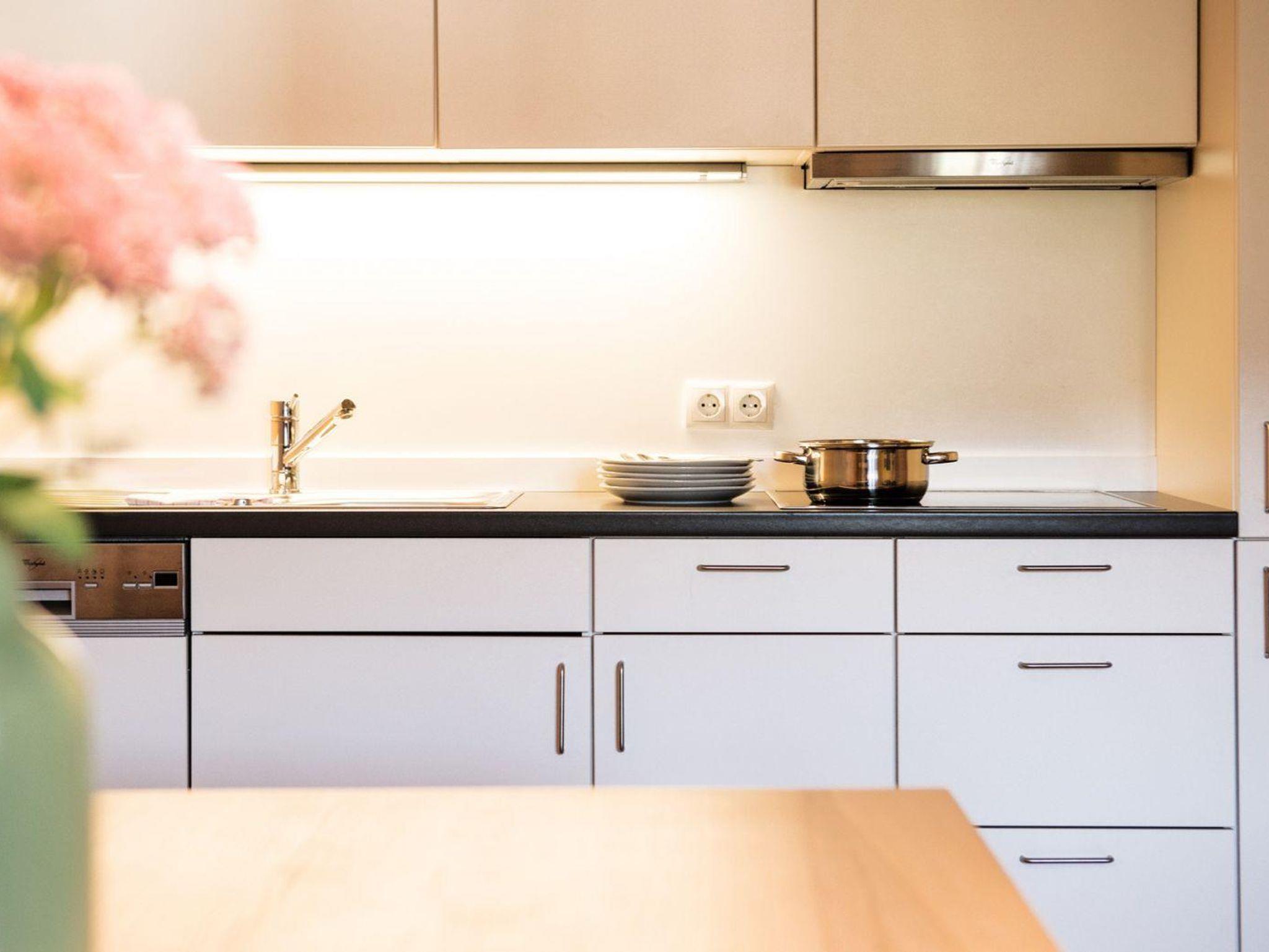 Ferienwohnung bestehend aus Schlafzimmer, Dusche/WC sowie einer komplett ausgestatteten Wohnküche. WLAN kostenfrei im gesamten Gebäude. Ein Doppelzimmer kann zu jeder Wohnung dazugebucht werden.