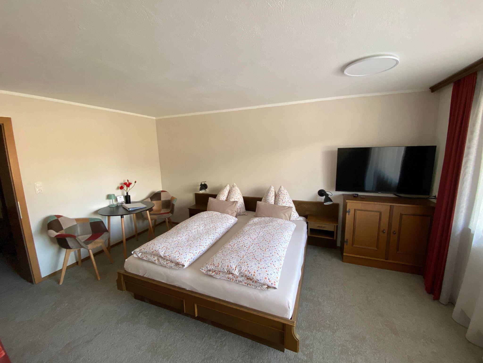 • Doppelbett mit Bettwäsche