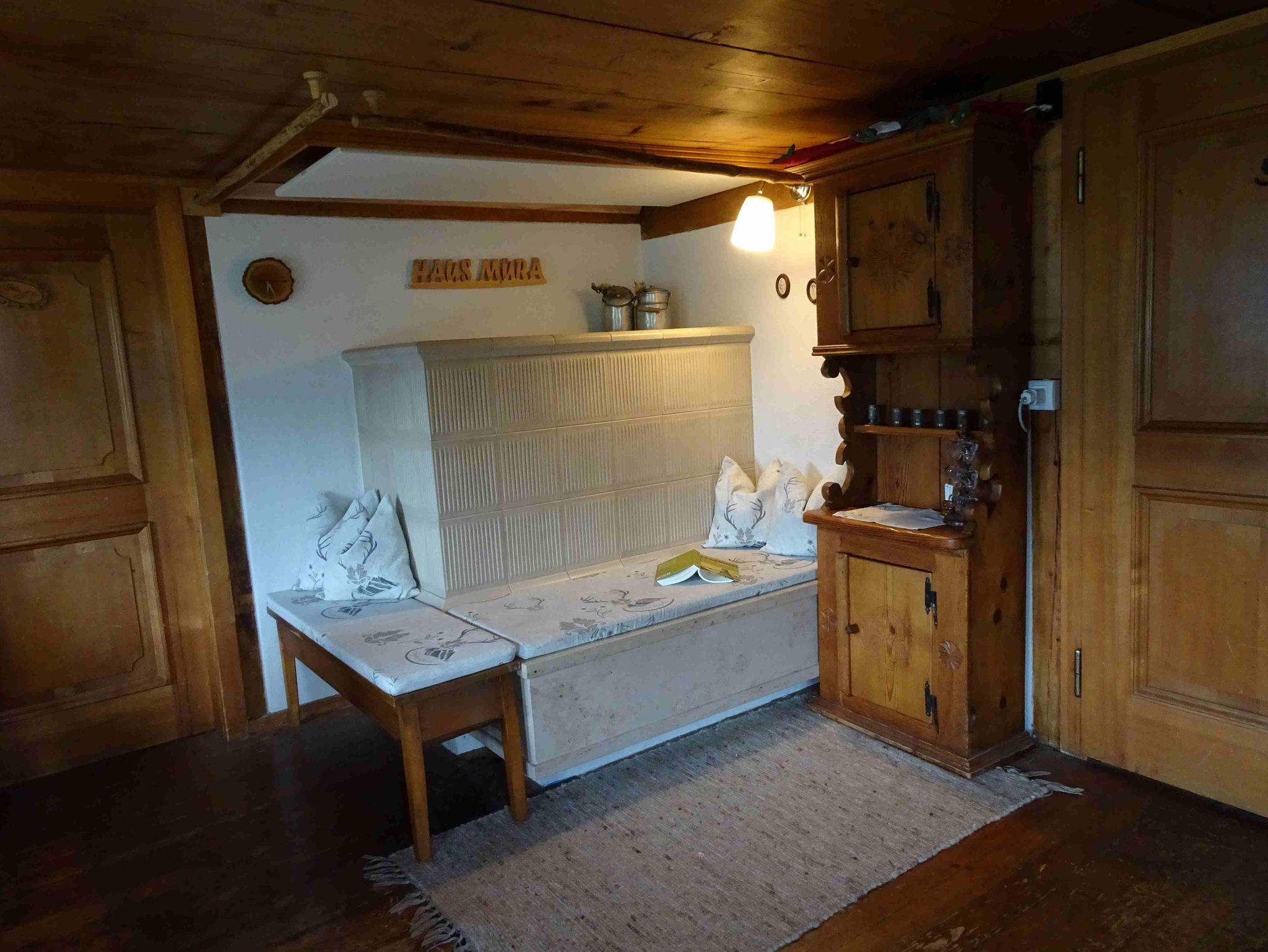 Unser Selbstversorgerhaus bietet nicht nur einen traumhafte Aussicht sondern auch eine voll ausgestattete Küche, 5 Schlafzimmer, Wohn- und Esszimmer mit wohligem Kachelofen, Kinderspielsachen, Brett- und Kartenspiele.
