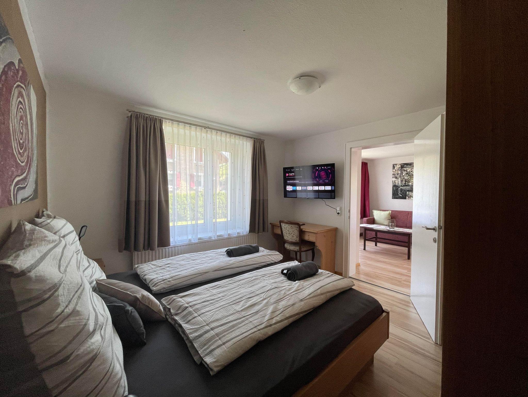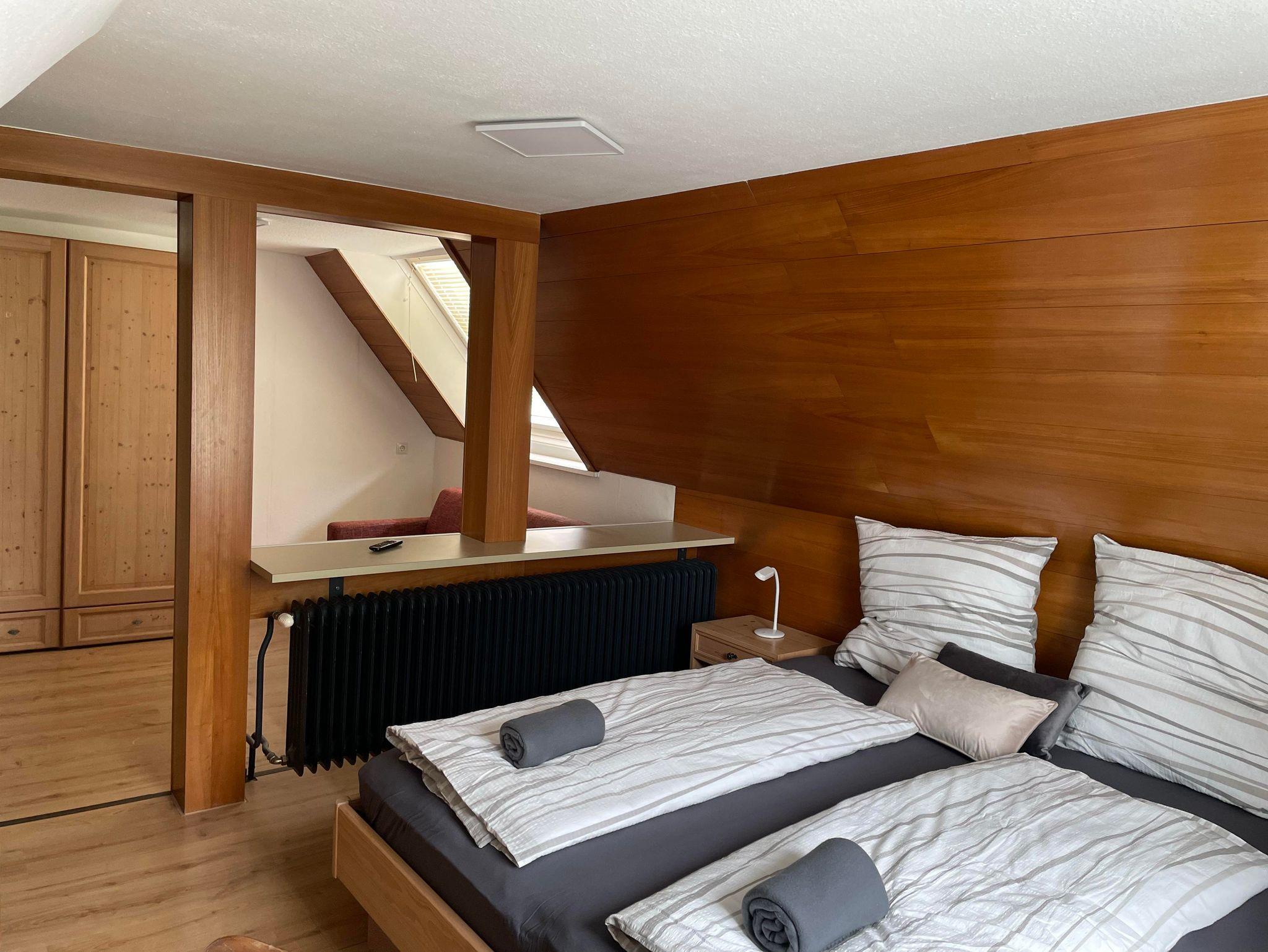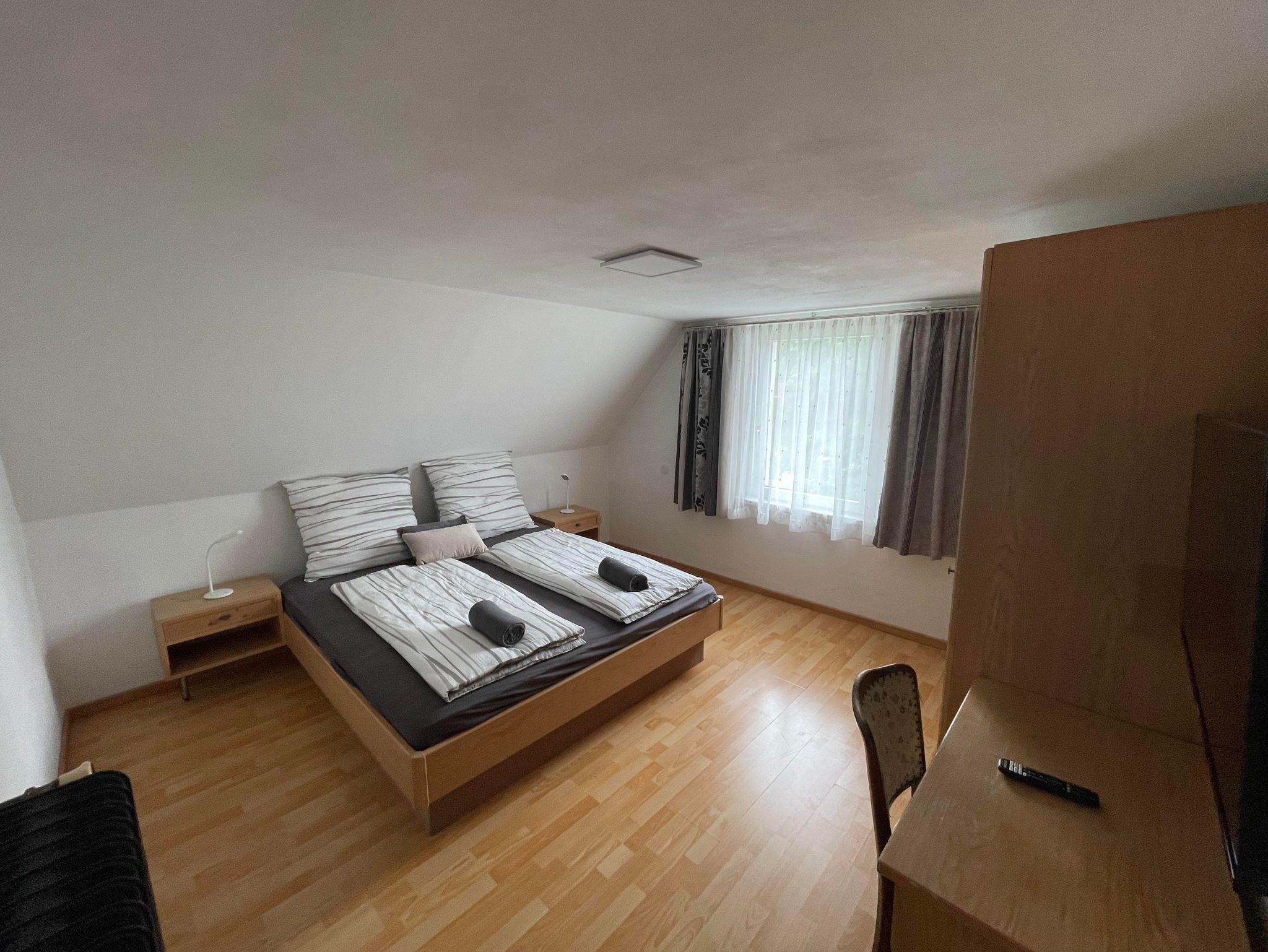 - Ein Schlafzimmer mit einem gemütlichen Doppelbett