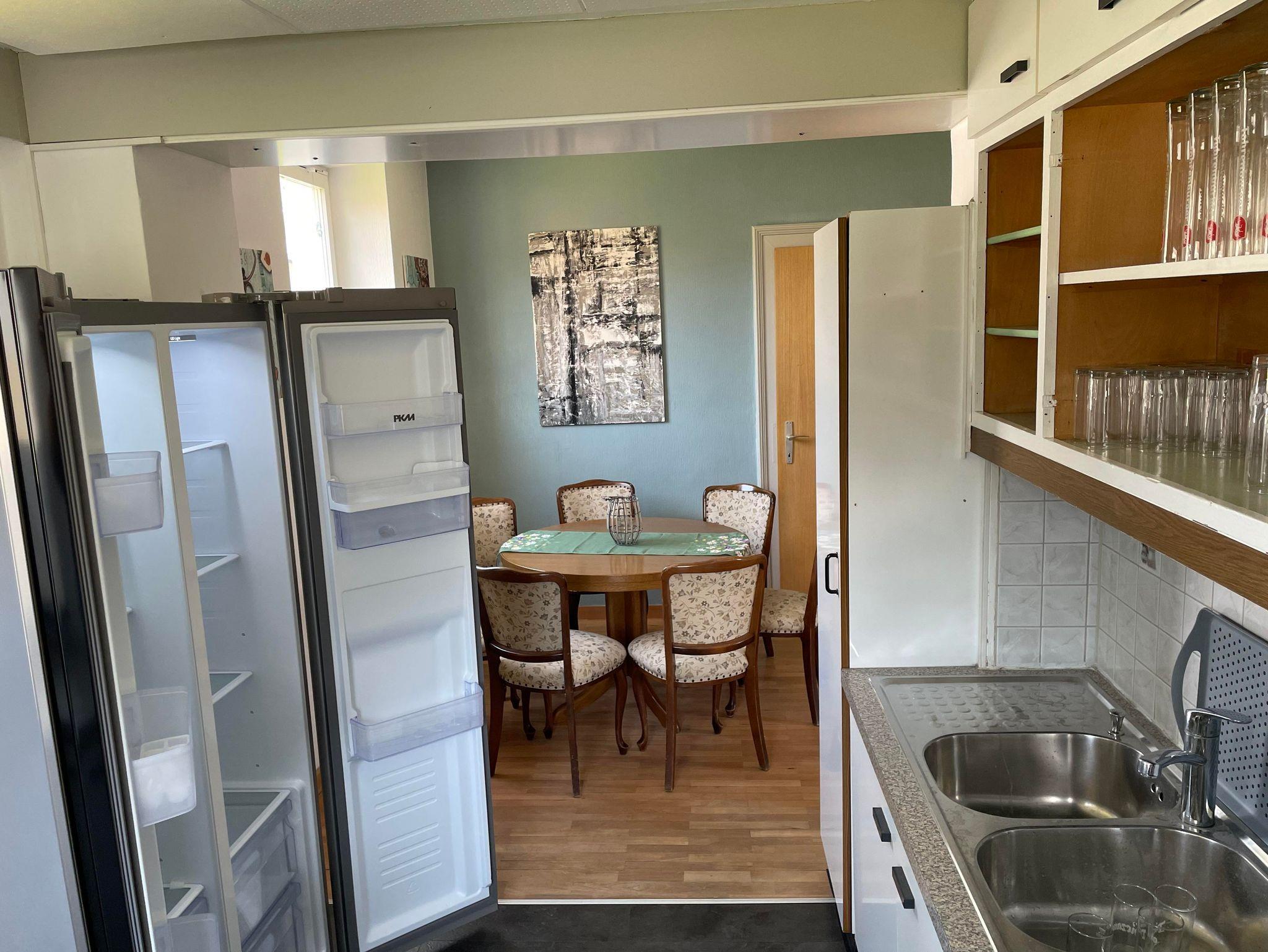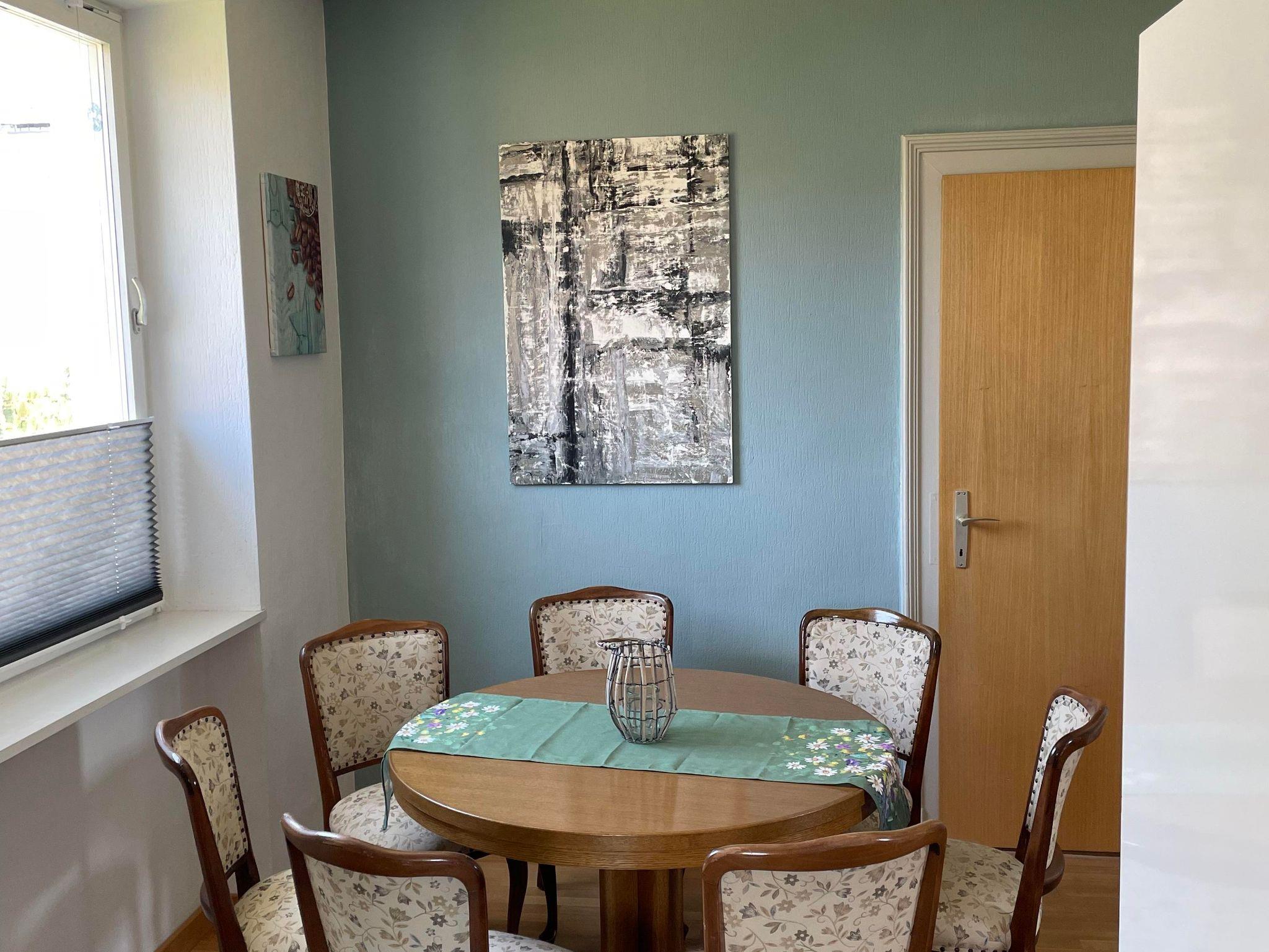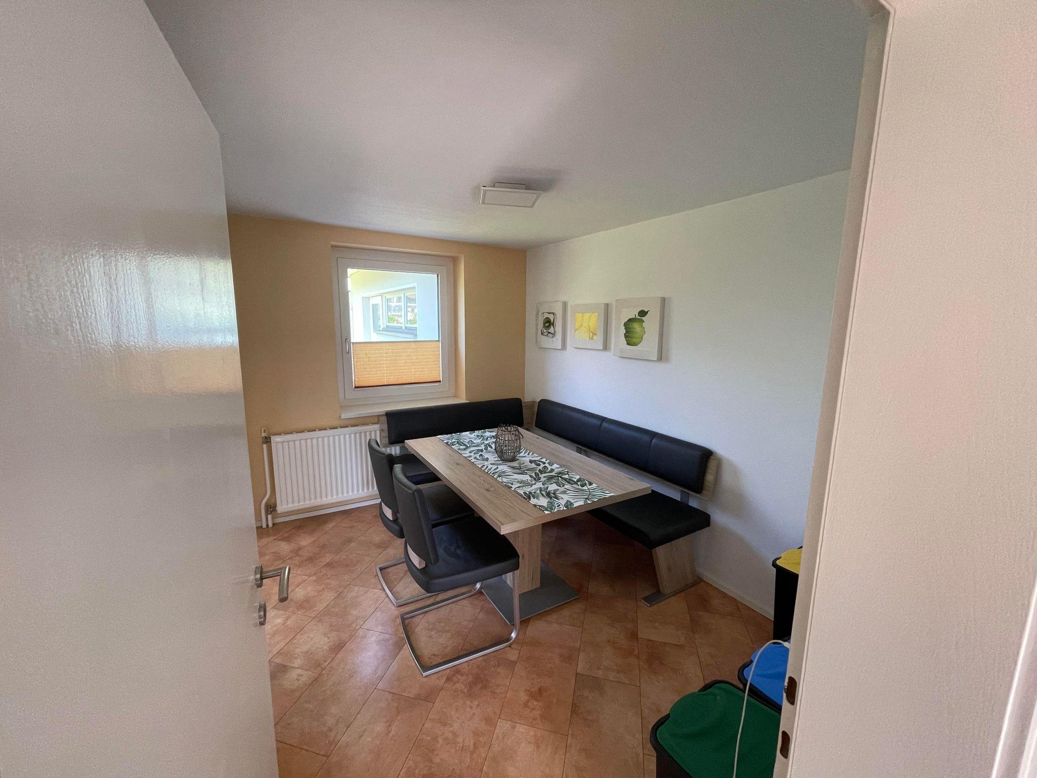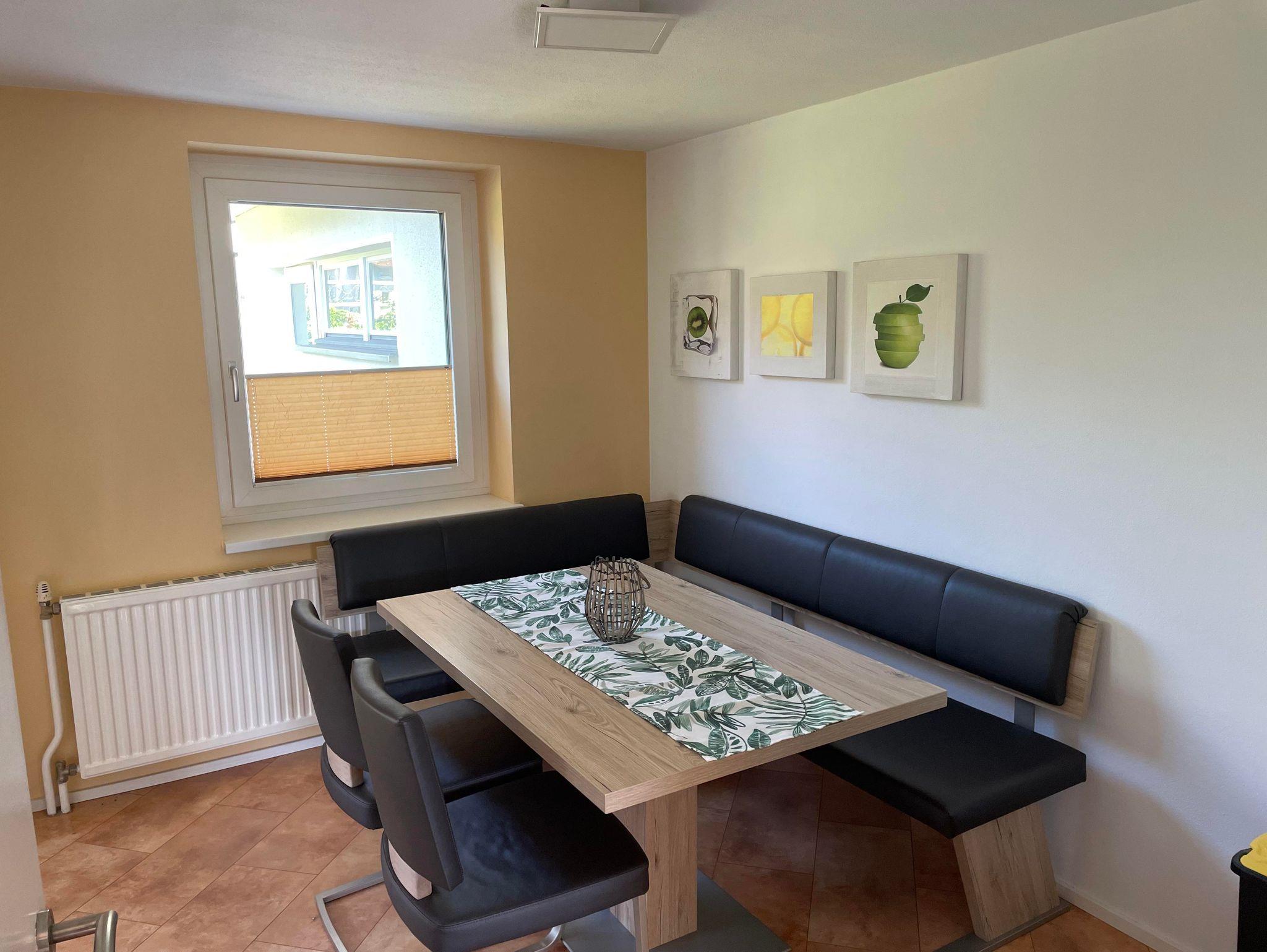 - Eine gut ausgestattete Küche mit einladendem Essbereich