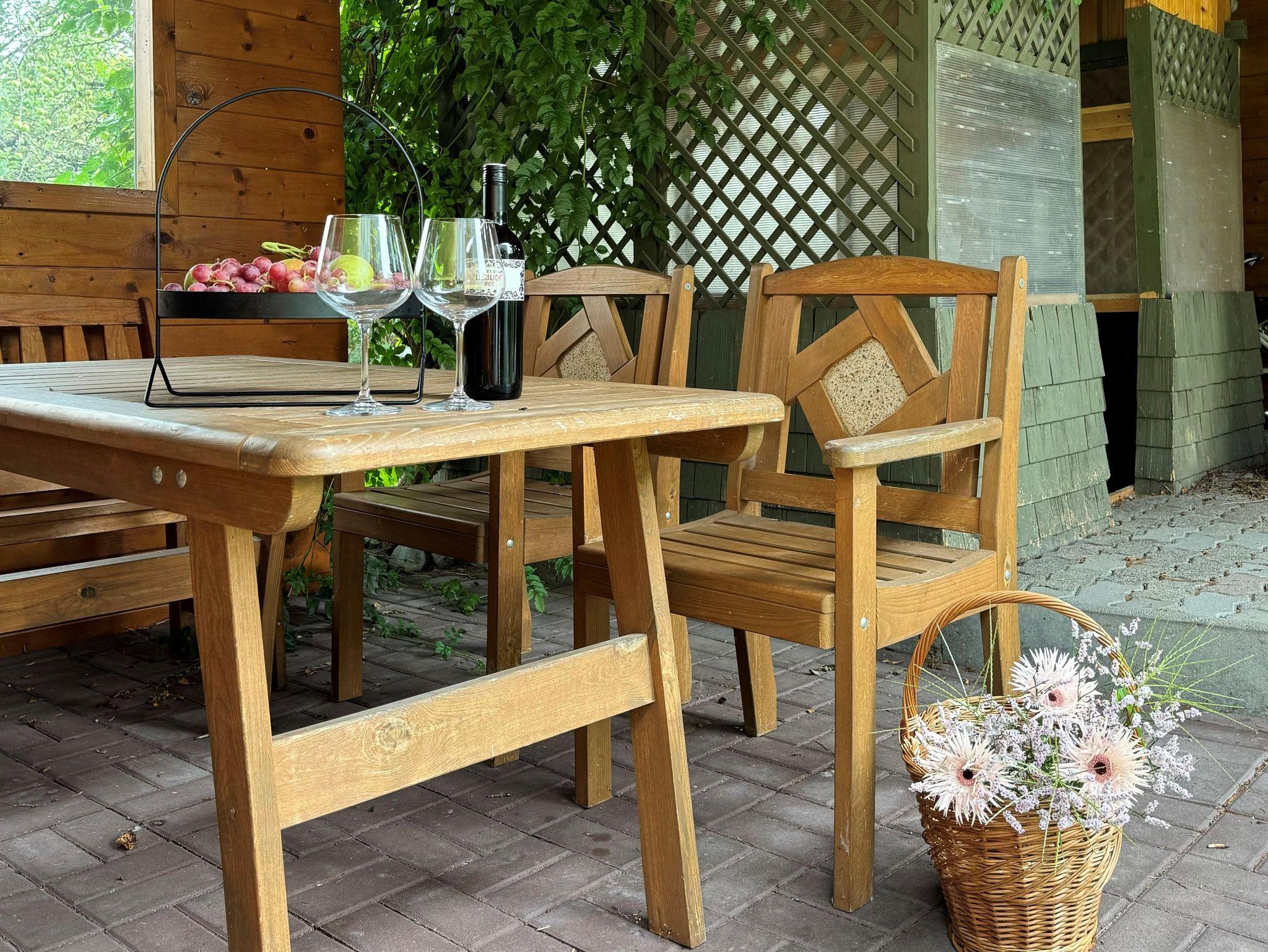 Der Aussengarten des Apartments, welches sich im ersten Stock befindet, ladet auch ein, den Abend mal im Freien ausklingen zu lassen.