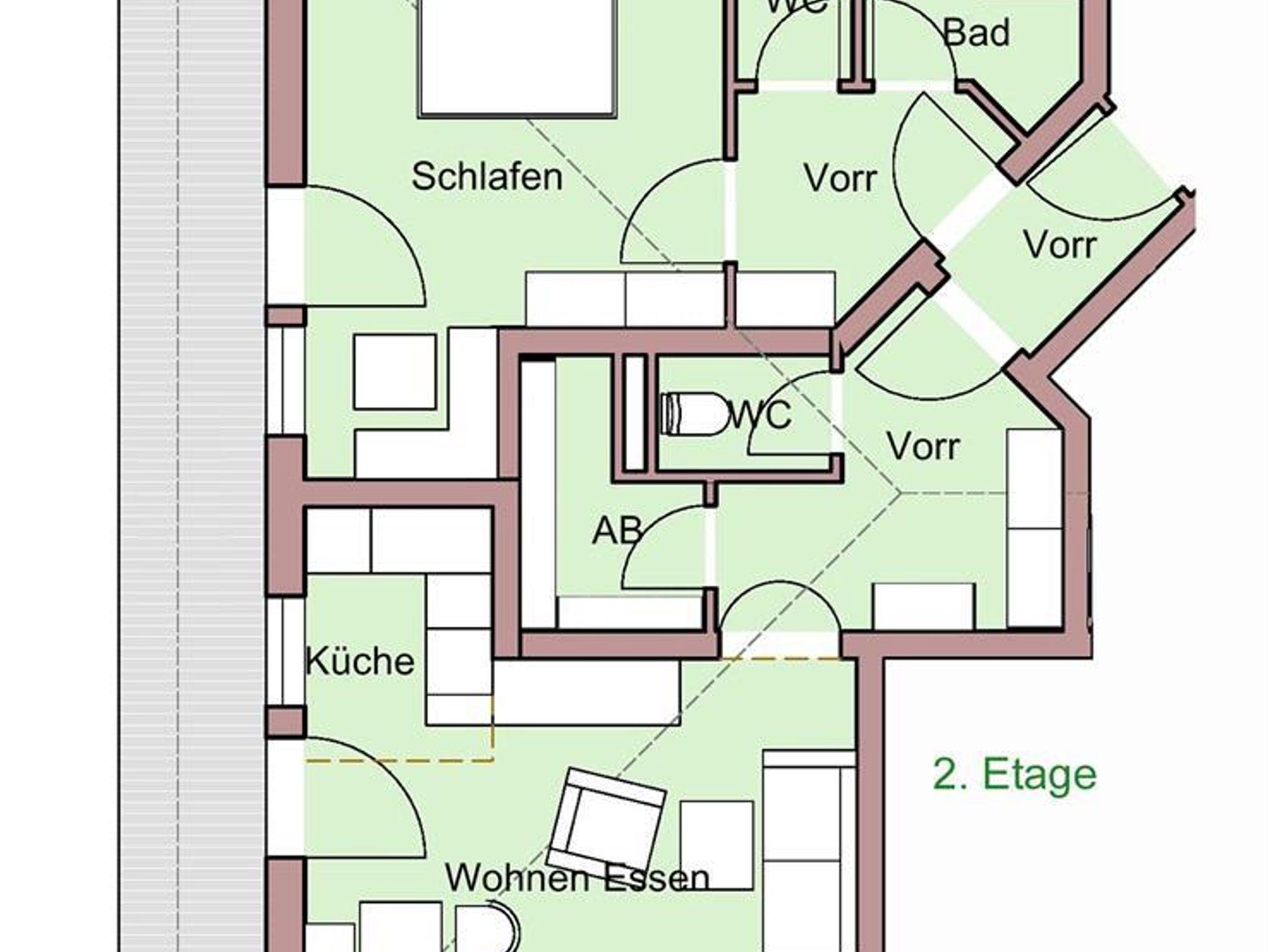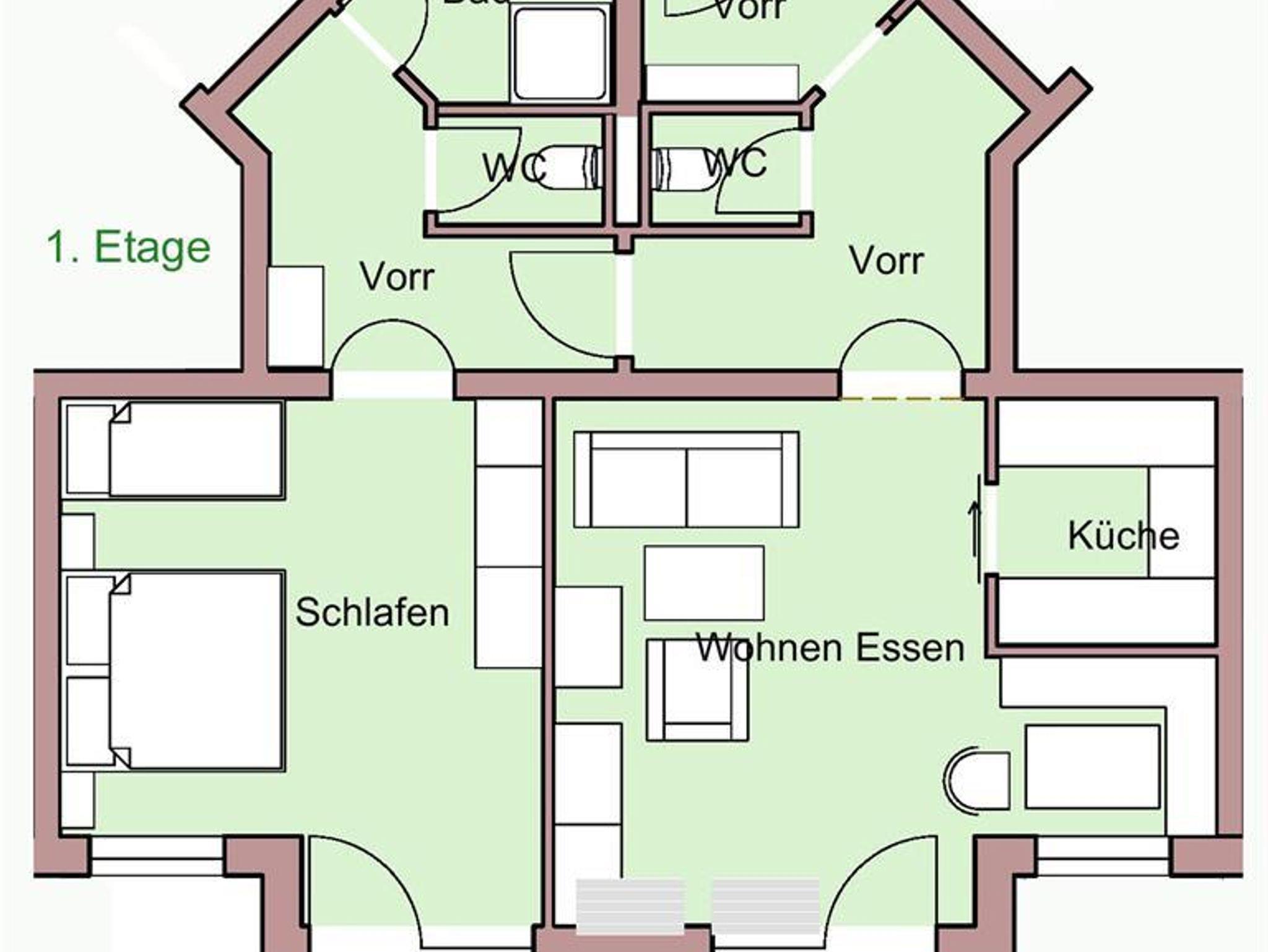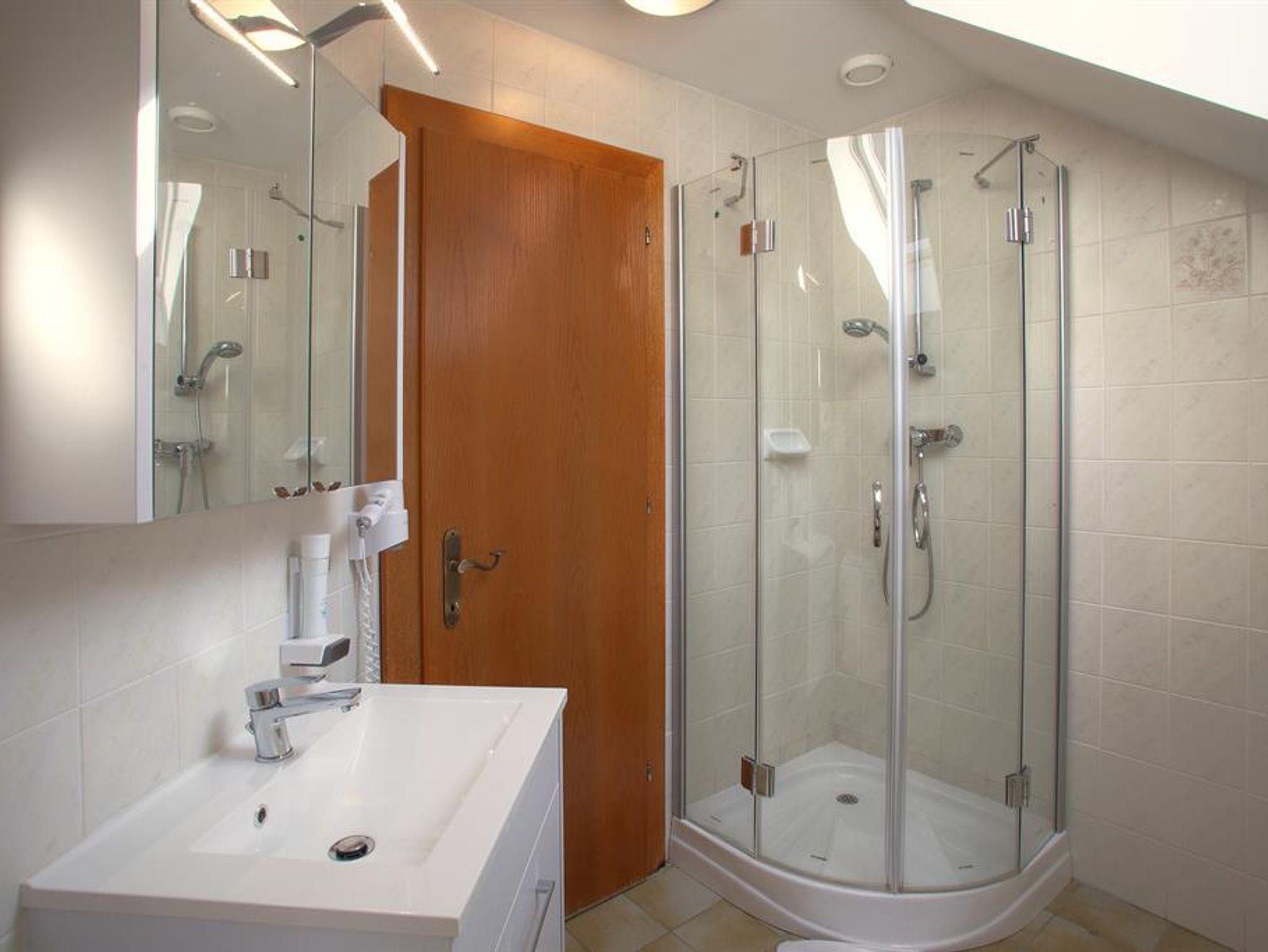 Ferienwohnung (63-67m2 Wohnfläche + 9-23 m2 Balkon oder Terrasse) bietet Platz für 2 bis 5 Personen. Die Apartments verfügen über ein Schlafzimmer (Doppelbett + Zusatzbett), Badezimmer mit Dusche, 2 WC´s, Abstellraum, Vorraum mit Garderobe ein Wohnzimmer mit Ausziehcouch und eine Küche bzw. Kochecke.