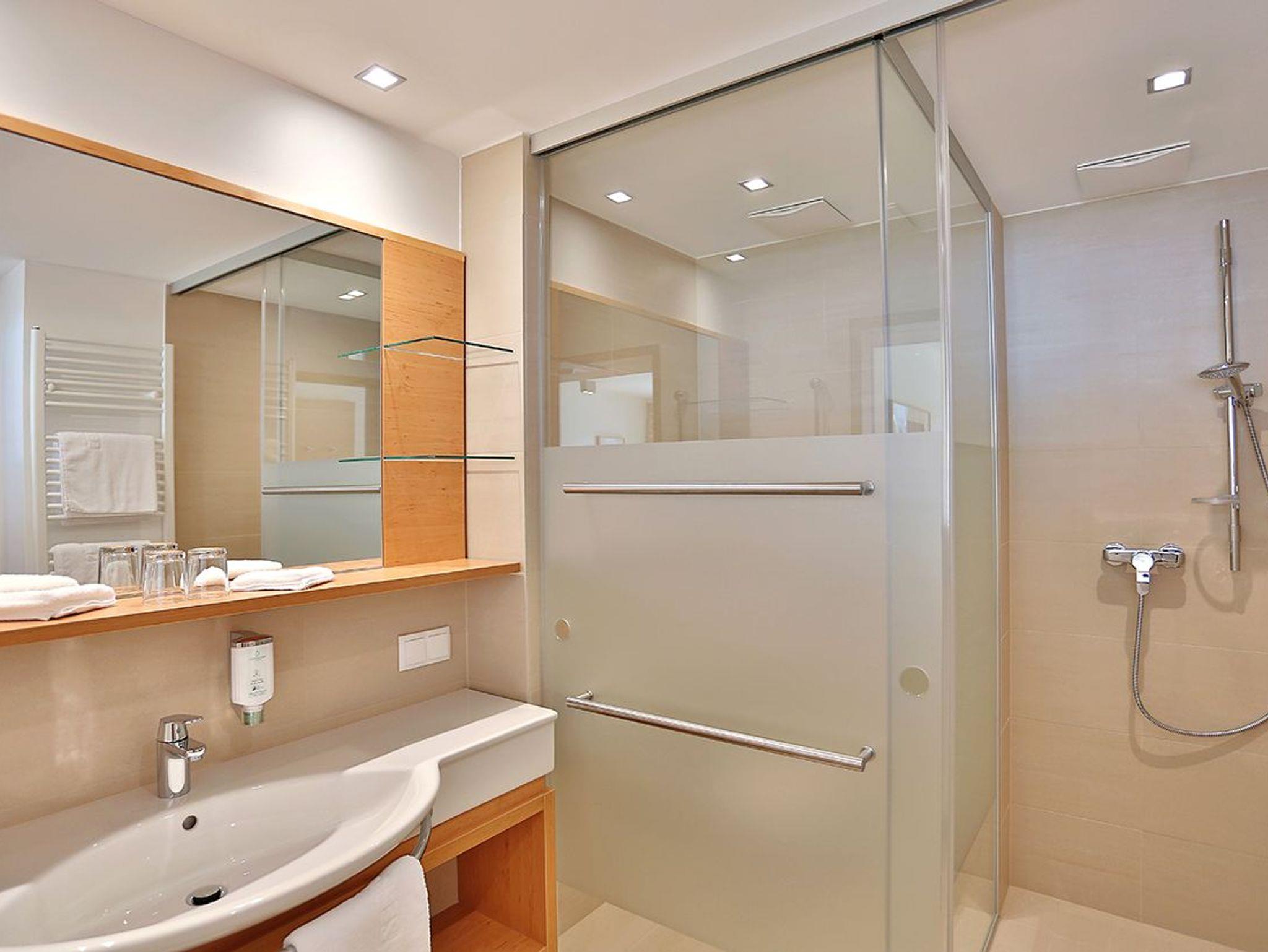 • Bad mit verglastem Duschbereich und WC