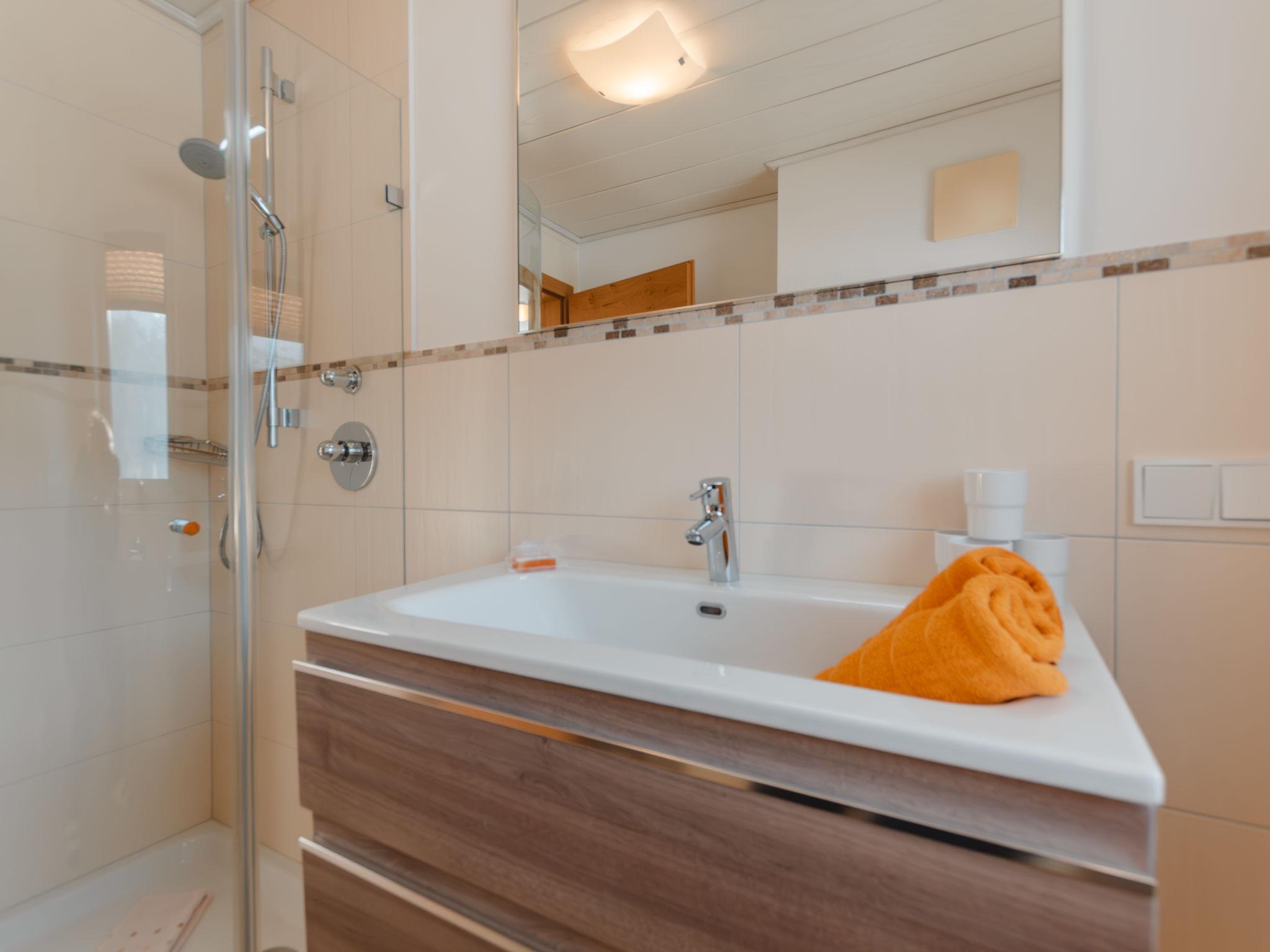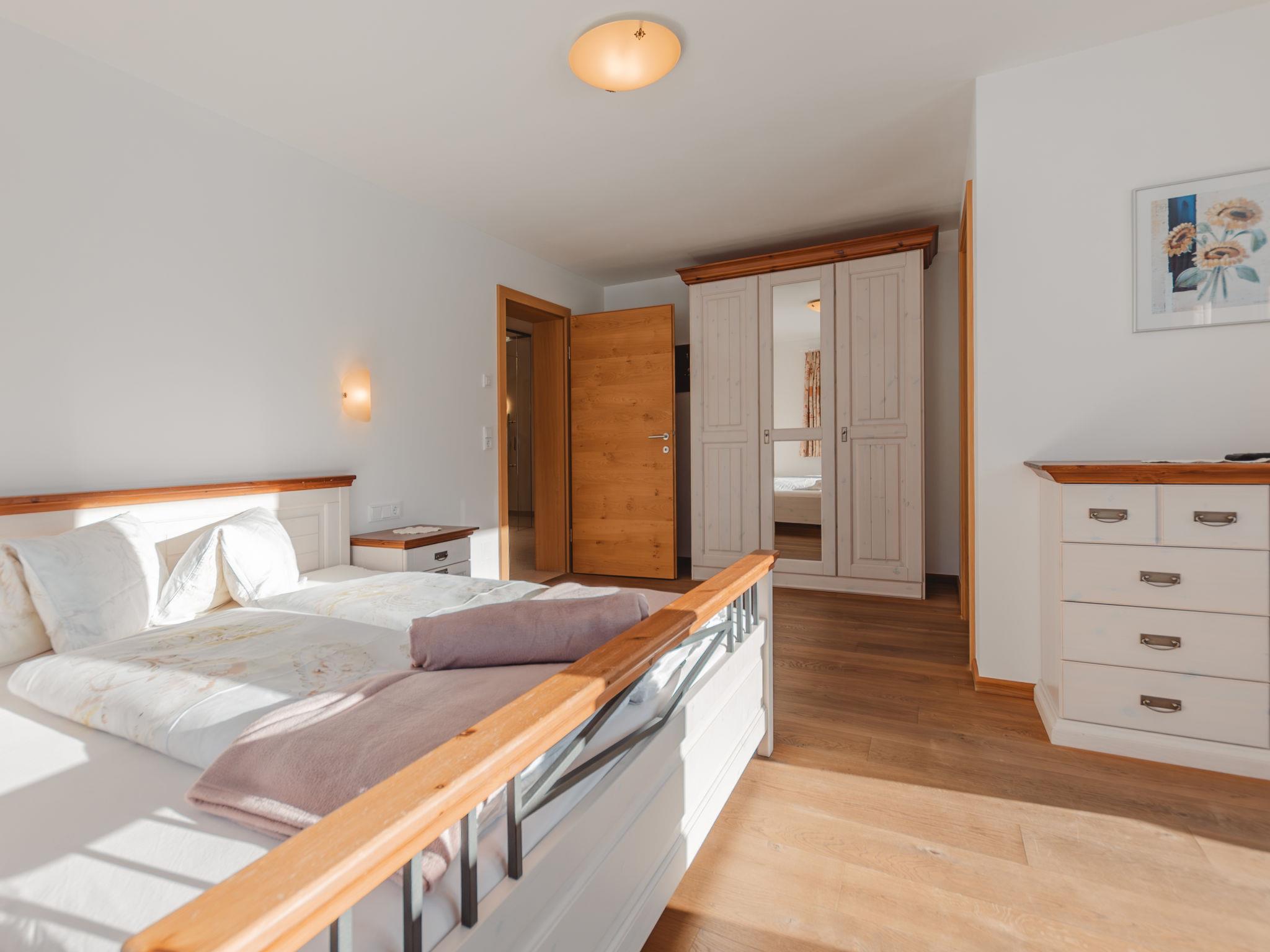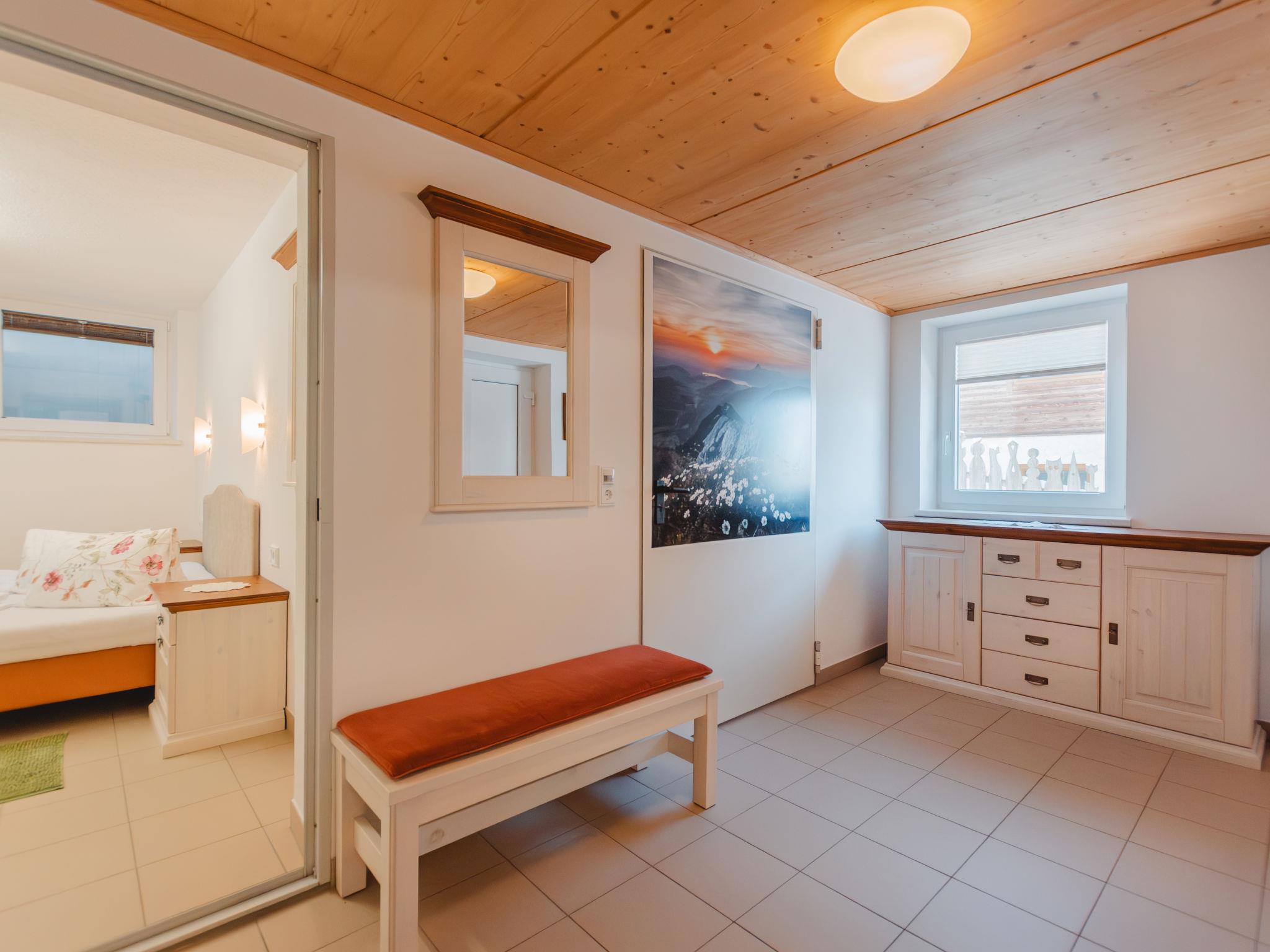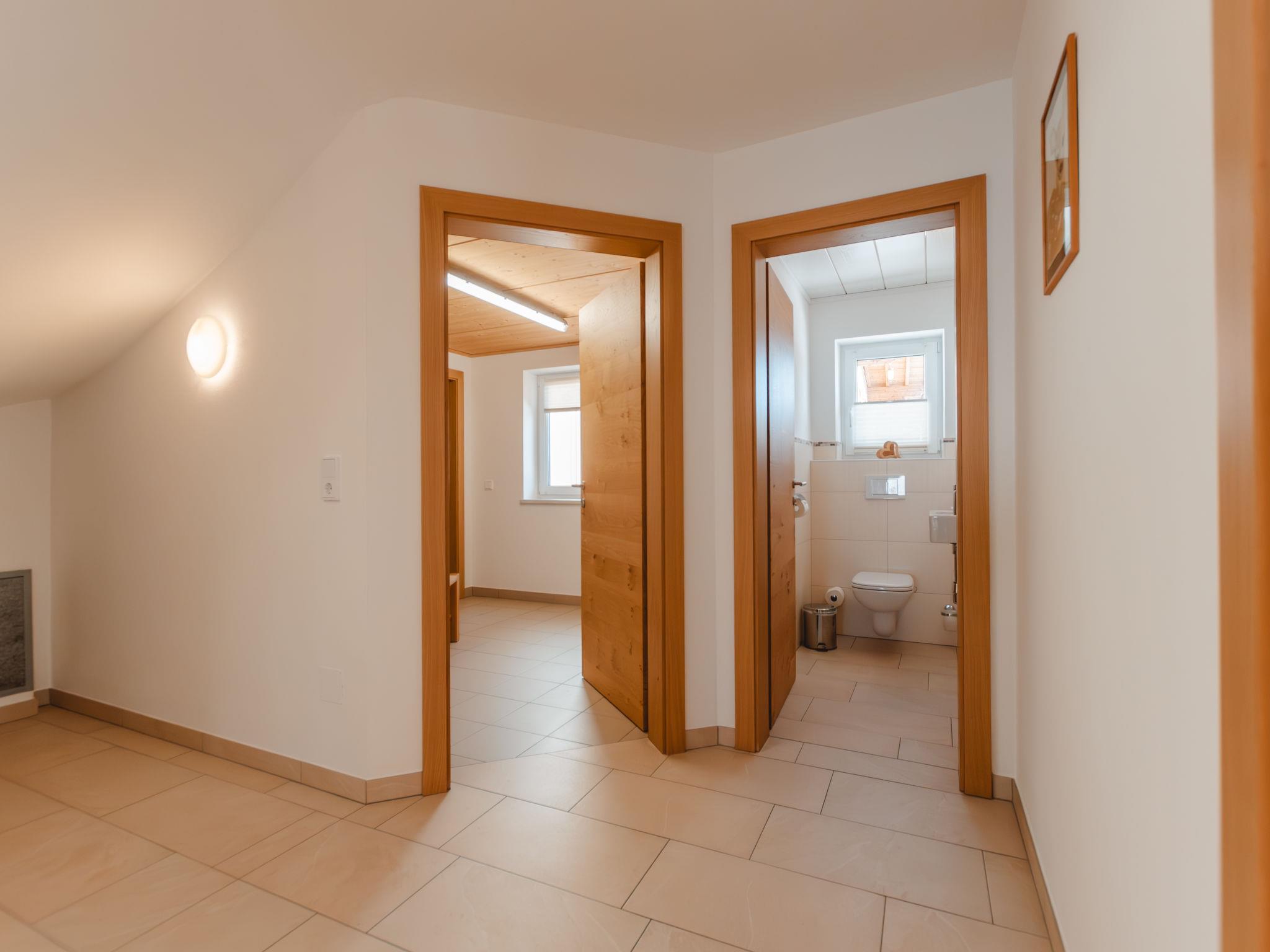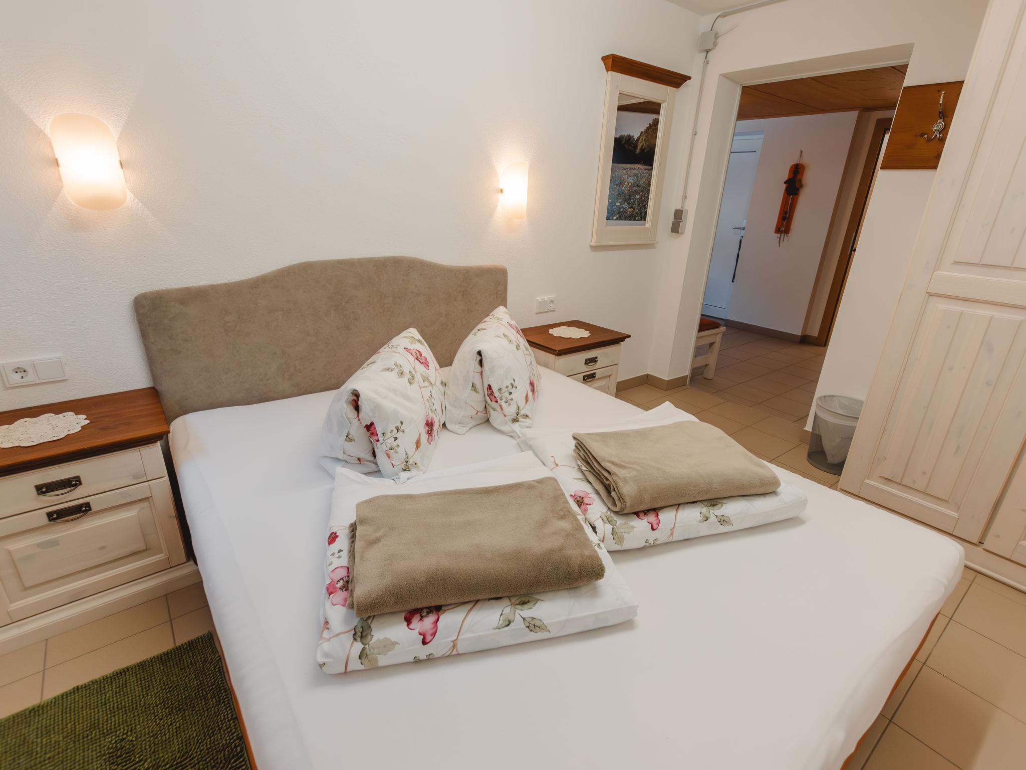 "Talmoosen-Bauer", 5-room apartment 120 m2, lower ground floor. Bright, cosy furnishings: small living room. 1 double bedroom. 2 rooms, each room with 1 bed, 1 double bed, shower/WC and satellite TV. Kitchen-/living room (oven, dishwasher, 4 ceramic glass hob hotplates, toaster, kettle, microwave, electric coffee machine) with dining nook and satellite TV. Sep. WC. Underfloor heating. Wooden floors. Terrace roofed. Terrace furniture, box-room. Beautiful view of the mountains. Facilities: washing machine (extra). Children's high chair, baby cot. Internet (WiFi, free). Please note: non-smokers only. When there are less than the maximum number of guests staying at the property, not all of the housing units will be available for use. 50601-000537-2020