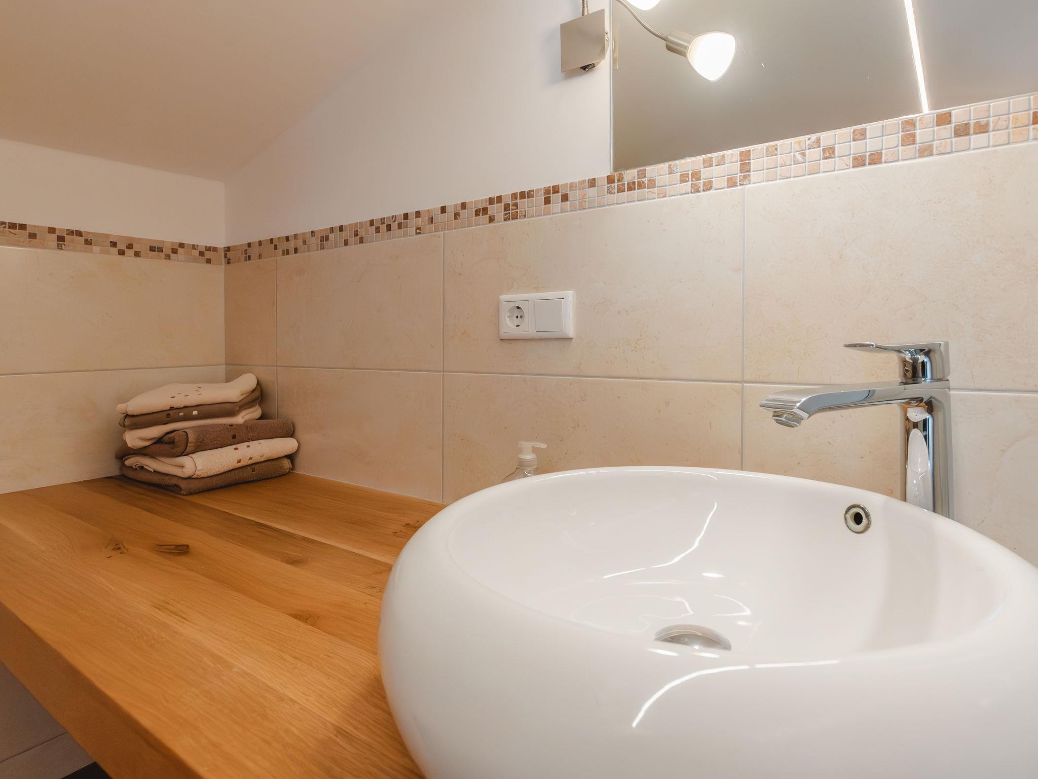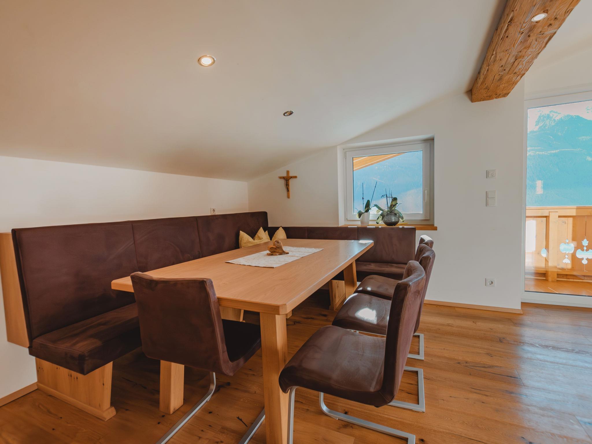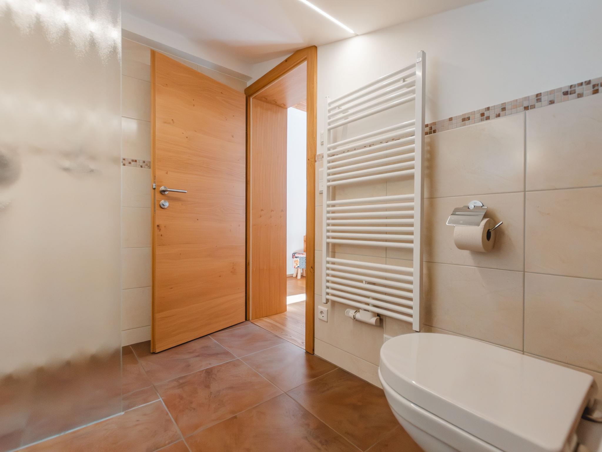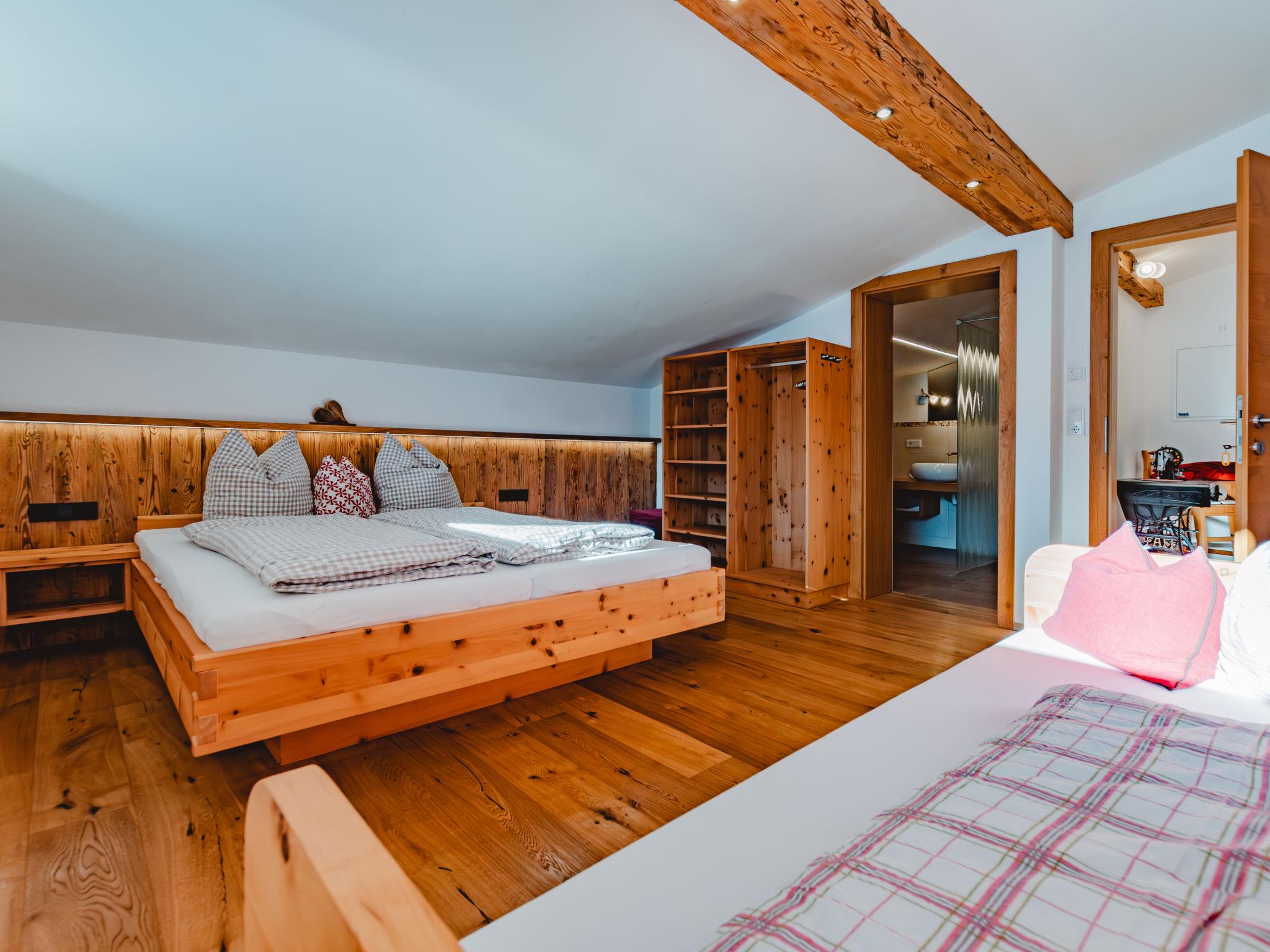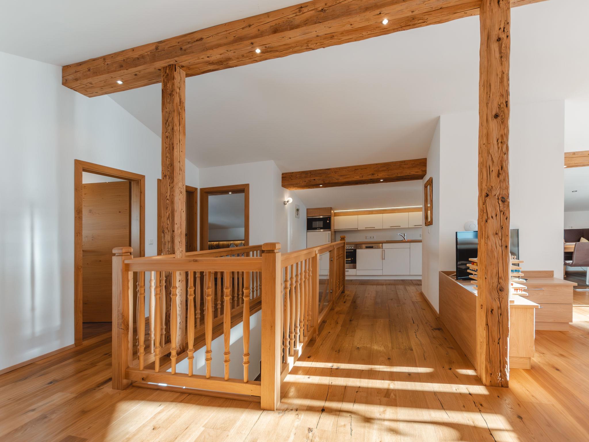 4-room apartment 95 m2 on 2nd floor. Tasteful and cosy furnishings: living room with dining nook and satellite TV. 1 room with sloping ceilings with 1 sofabed, 1 double bed, shower/WC and double hand-basin. 1 room with sloping ceilings with 1 sofabed and 1 double bed. 1 double bedroom with sloping ceilings. Open kitchen (4 hot plates, oven, dishwasher, toaster, kettle, microwave, freezer, electric coffee machine) with dining nook. Shower, sep. WC. Underfloor heating. Wooden floors. Balcony. Balcony furniture, electric barbecue. View of Hohen Tauern. Facilities: children's high chair, baby cot. Internet (WiFi, free). Parking (2 cars). Please note: private entrance. When there are less than the maximum number of guests staying at the property, not all of the housing units will be available for use. 50601-000594-2020