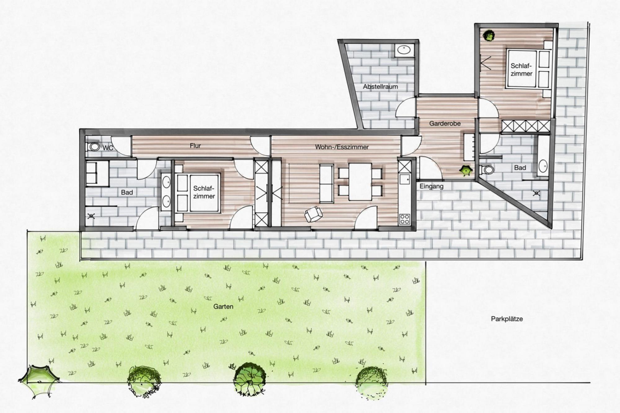 Første etasje: (åpent kjøkken(komfyr med kokeplater(komfyr med 4 kokeplater, keramisk), vannkoker, brødrister, kaffetrakter, stekovn, grill, Kombi stekovn/mikrobølgeovn, oppvaskmaskin, kjøleskap med fryser), Stue/spisestue(dobbel sovesofa, TV, sittehjørne), soveværelse(dobbeltseng, TV(satellitt, Tyske TV-kanaler)), Sovrum med badrum(dobbeltseng, TV(satellitt, Tyske TV-kanaler), dusj, toalett), bad(dusj, private infrared cabin), WC, grill, infrarød sauna, vaskemaskin, hage, sykkelparkering, hagemøbler)