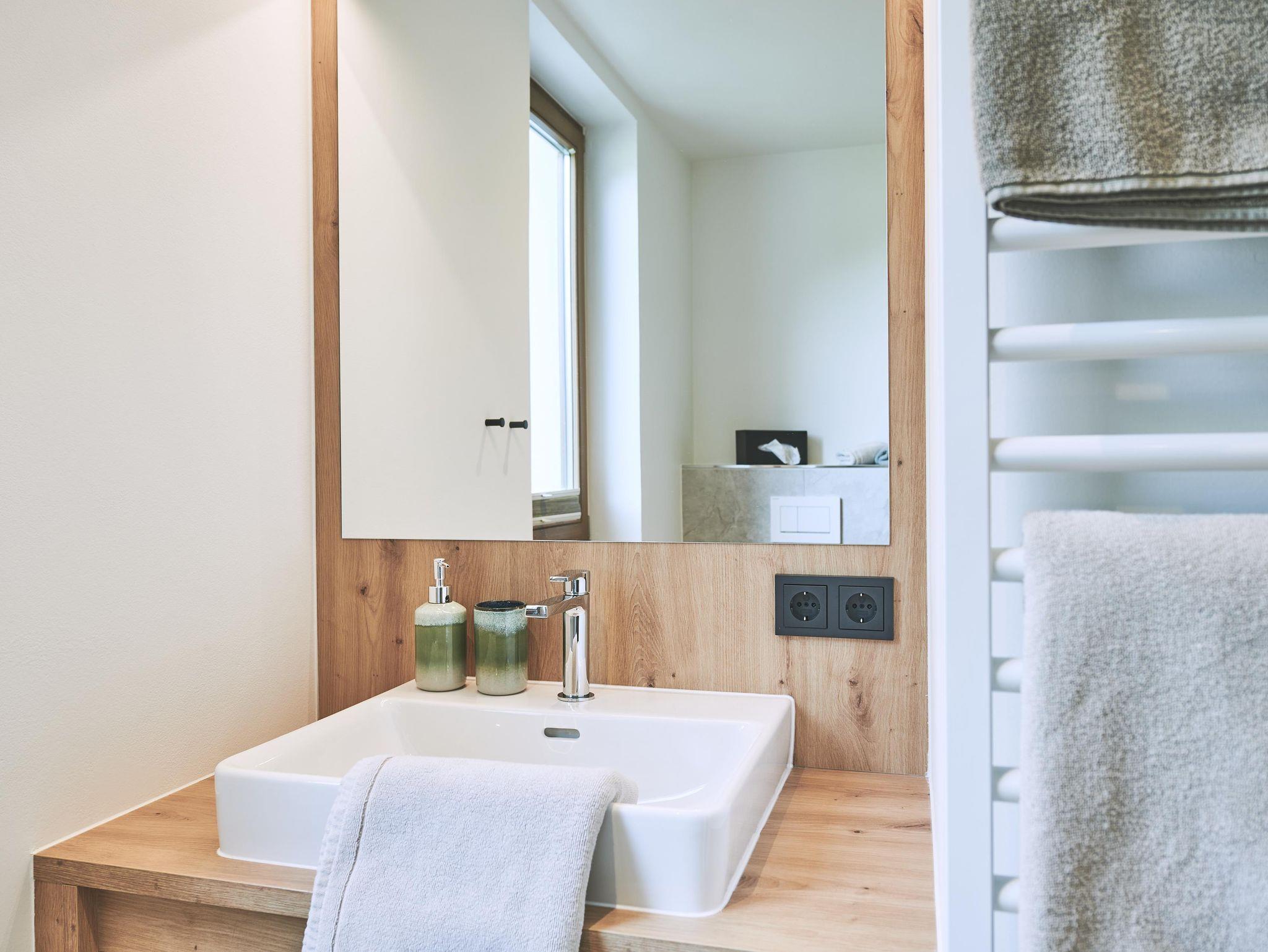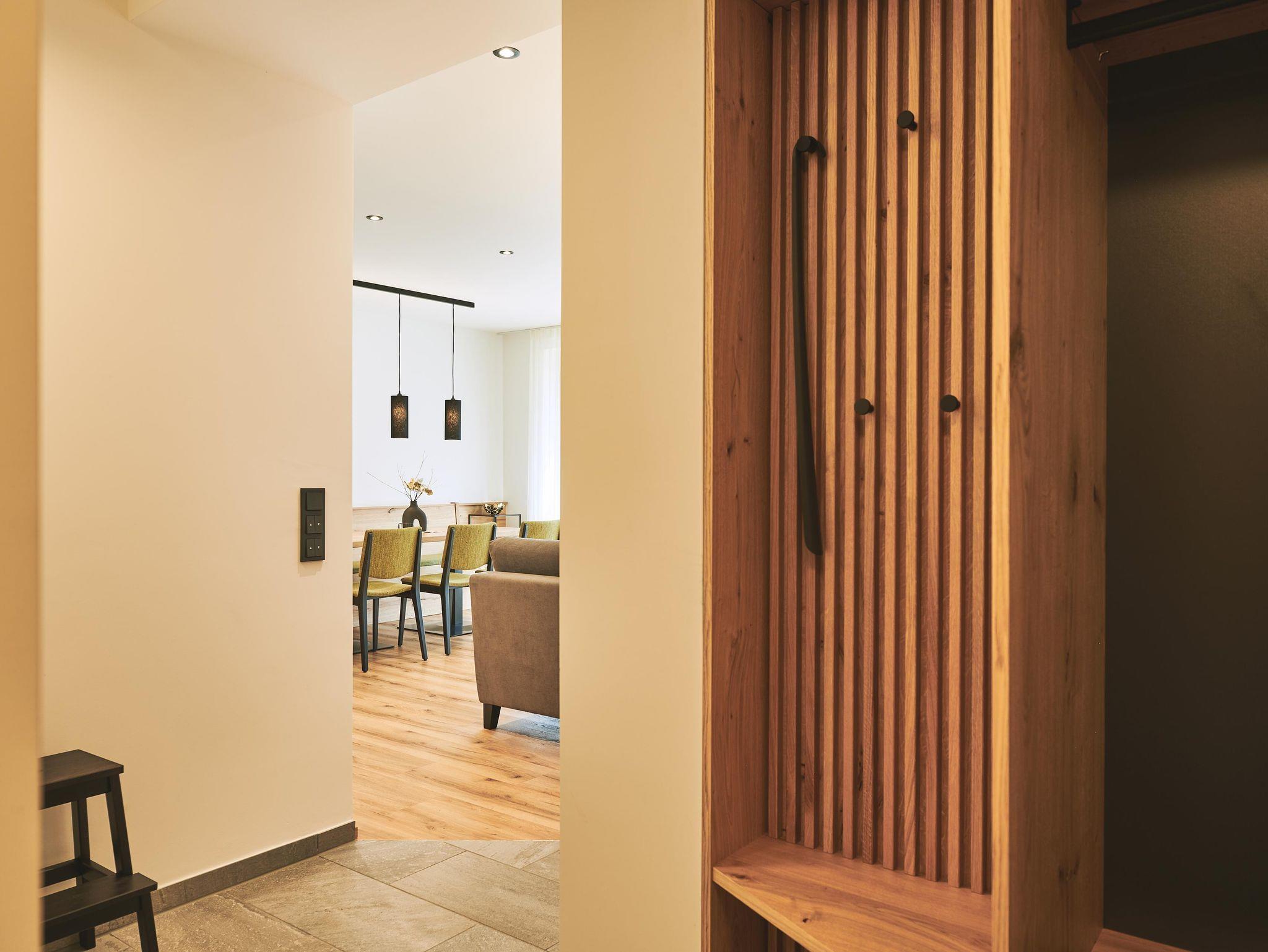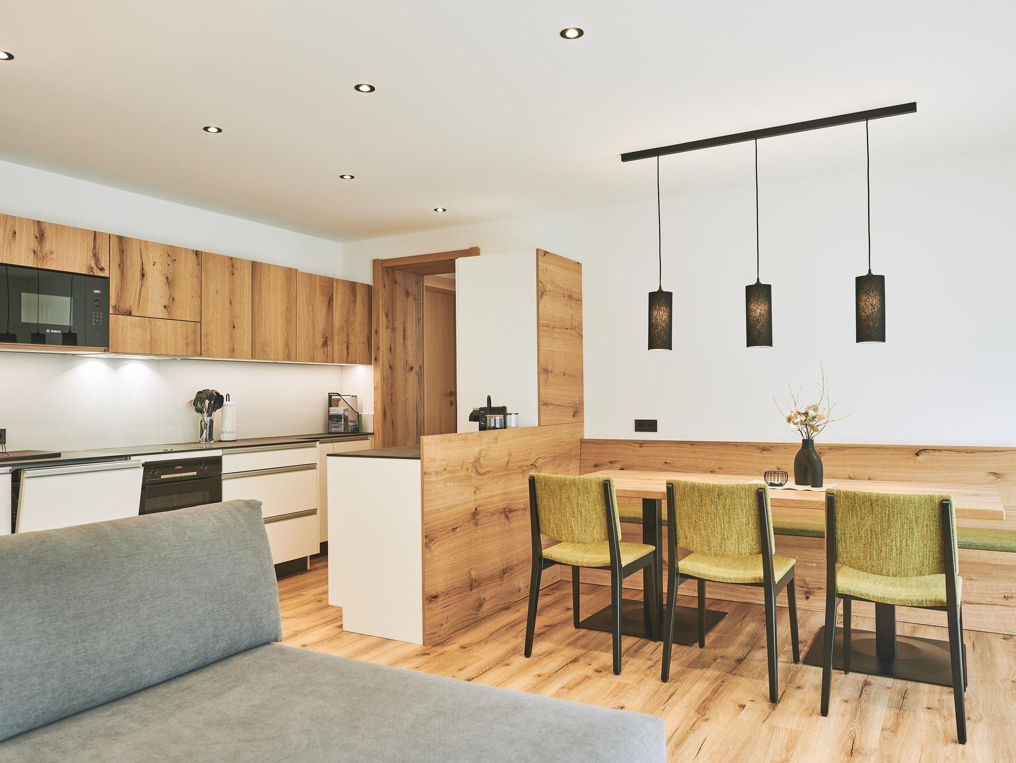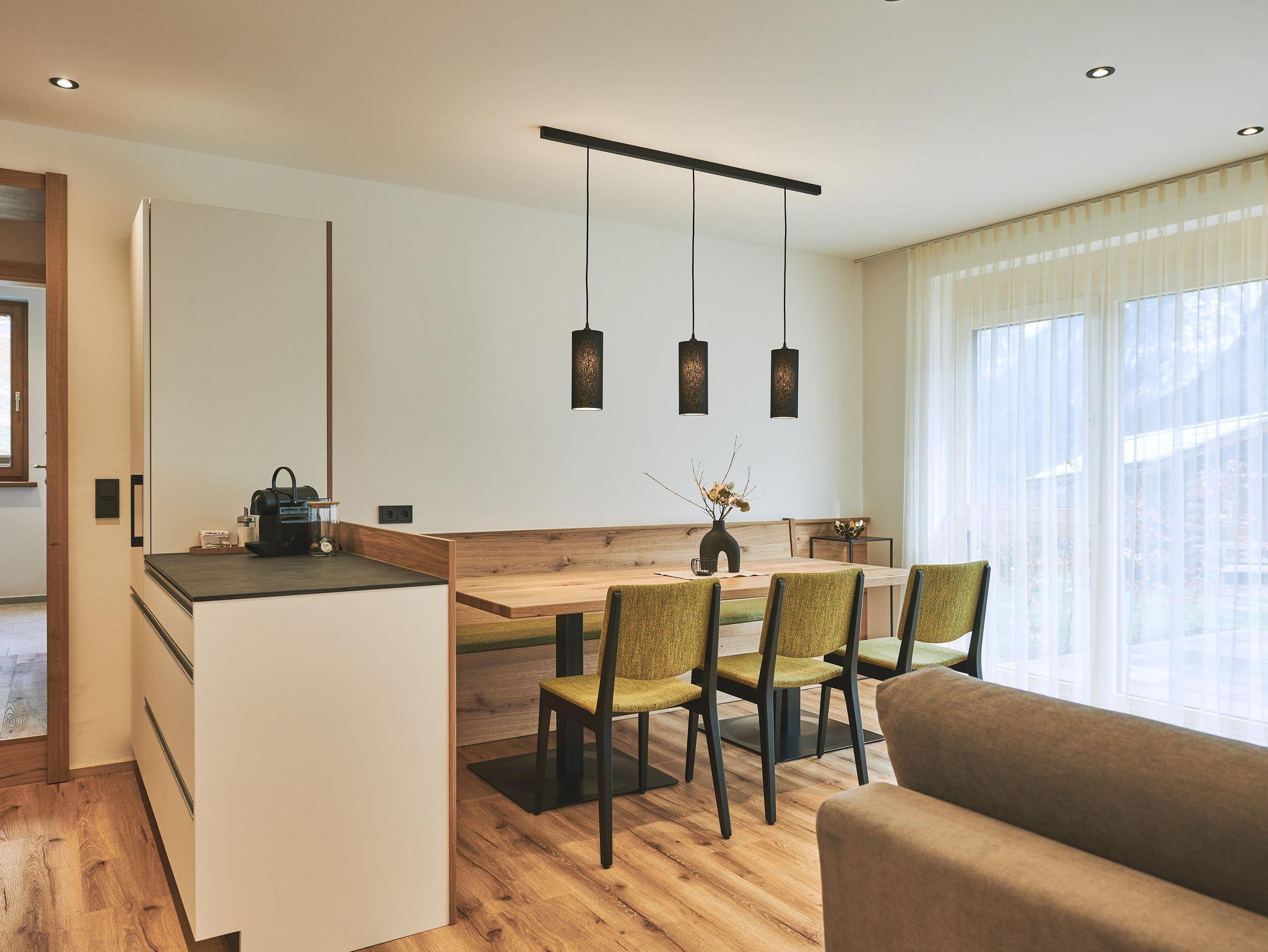 Mit 71 Quadratmeter bietet unser Gartenappartement Valbona großzügig Platz für zwei bis vier Personen. Im Wohn-Essbereich samt großen Esstisch, Gartenterasse mit Bergblick, 2 Doppelzimmern, Badezimmer mit Dusche und WC sowie einem Badezimmer mit Dusche und einem separaten WC gibt es genügend Platz für alle. In der vollausgestatteten Küche befinden sich Geschirrspüler, Induktionskochfeld, Backofen und Kapsel-sowie Filterkaffeemaschine. Heimeliges Wohngefühl und viel Holz gibt es von uns gerne obendrauf!