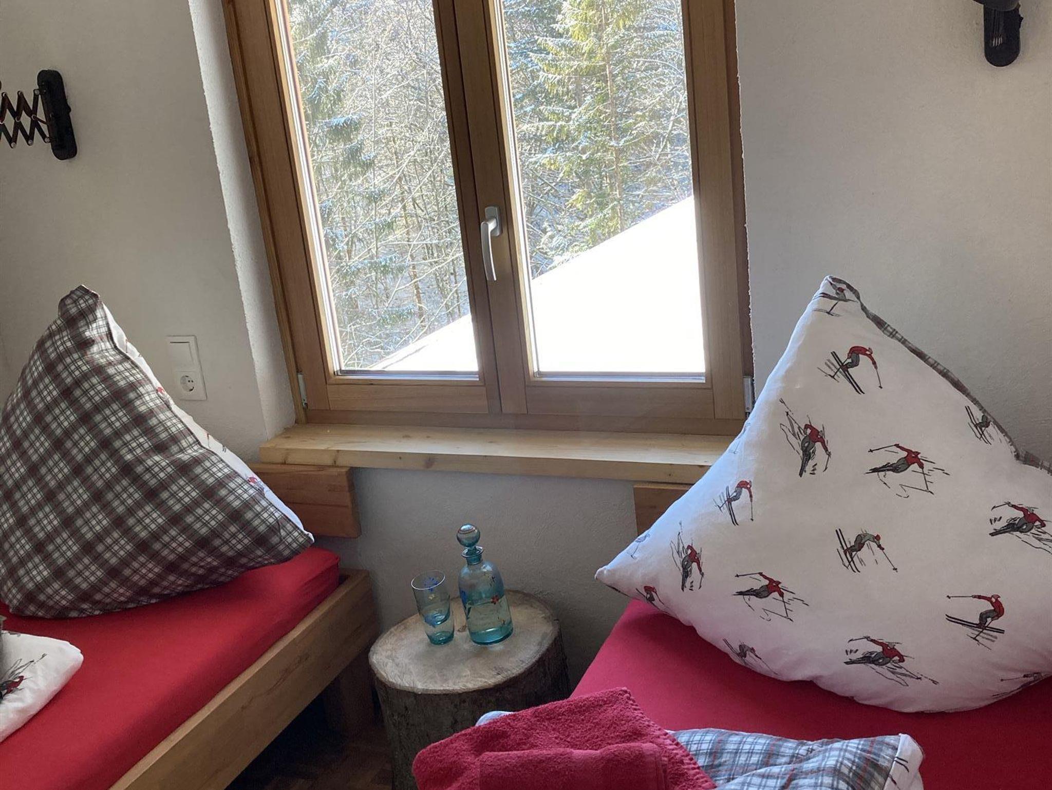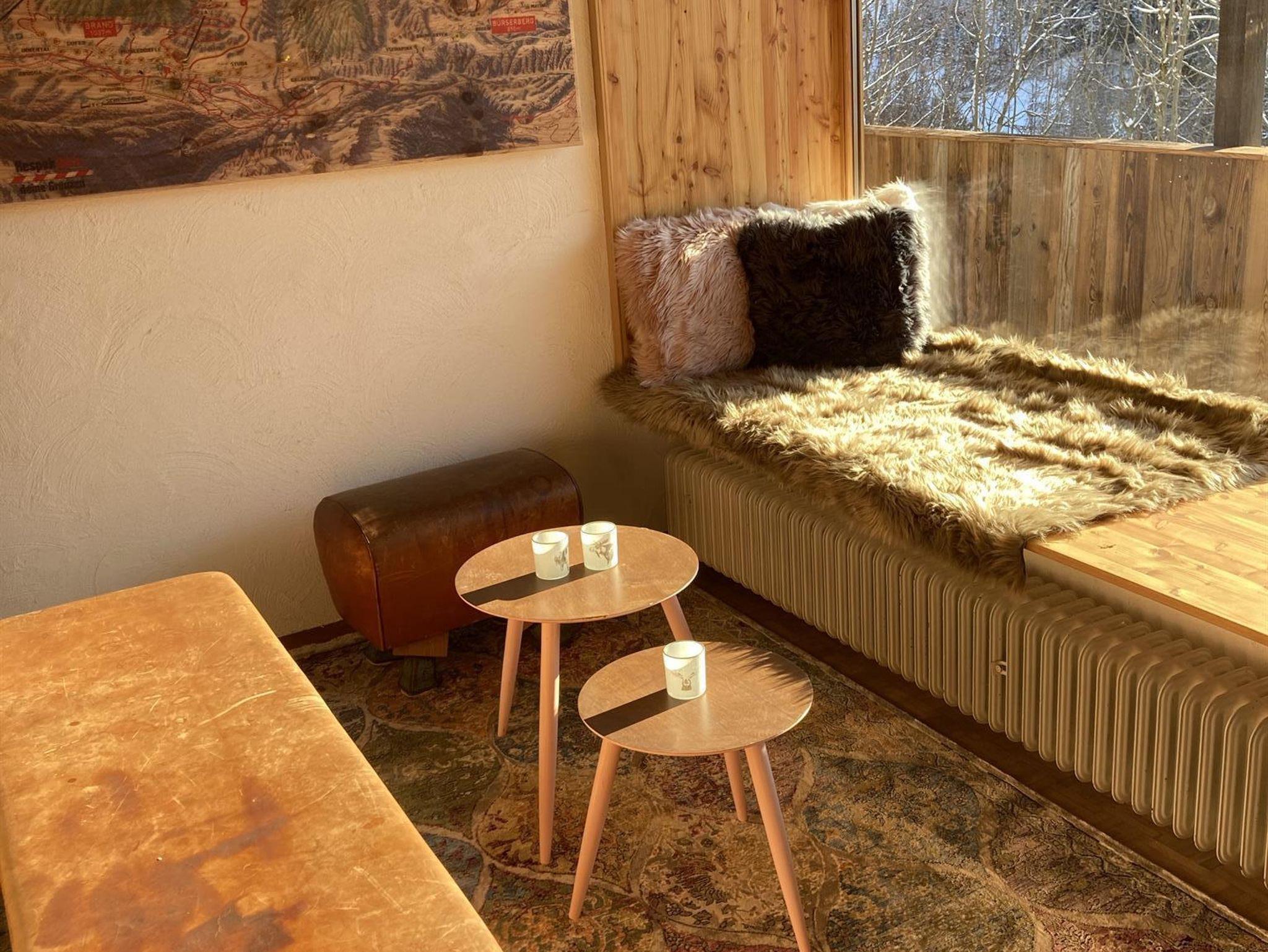 Das große Sitzfenster mit fantastischem Blick in die Bergwelt lädt zum Verweilen ein. Der Schwedenofen in der Wohnung trägt zu einem klassischen Hüttenurlaub in den Bergen bei.