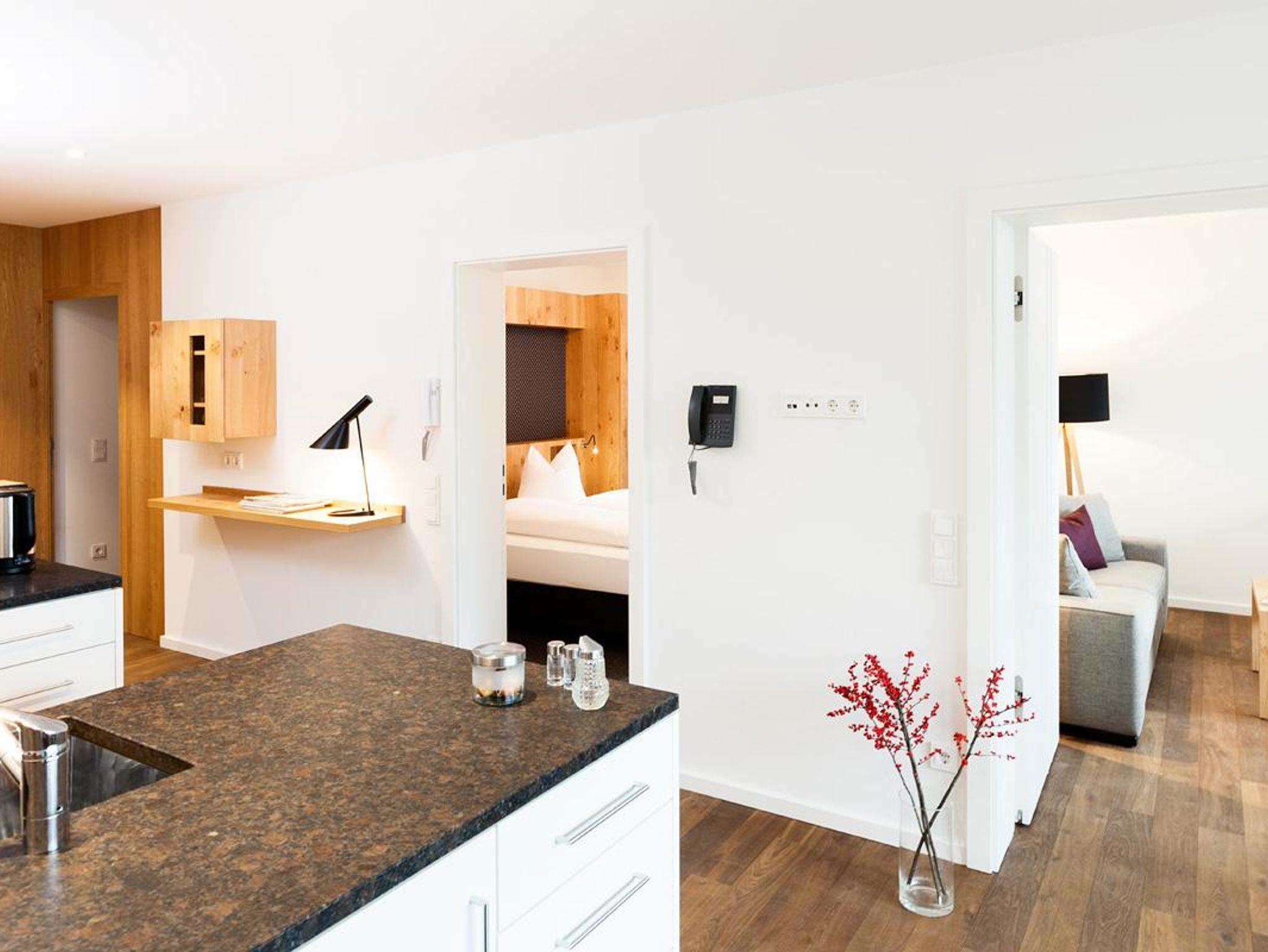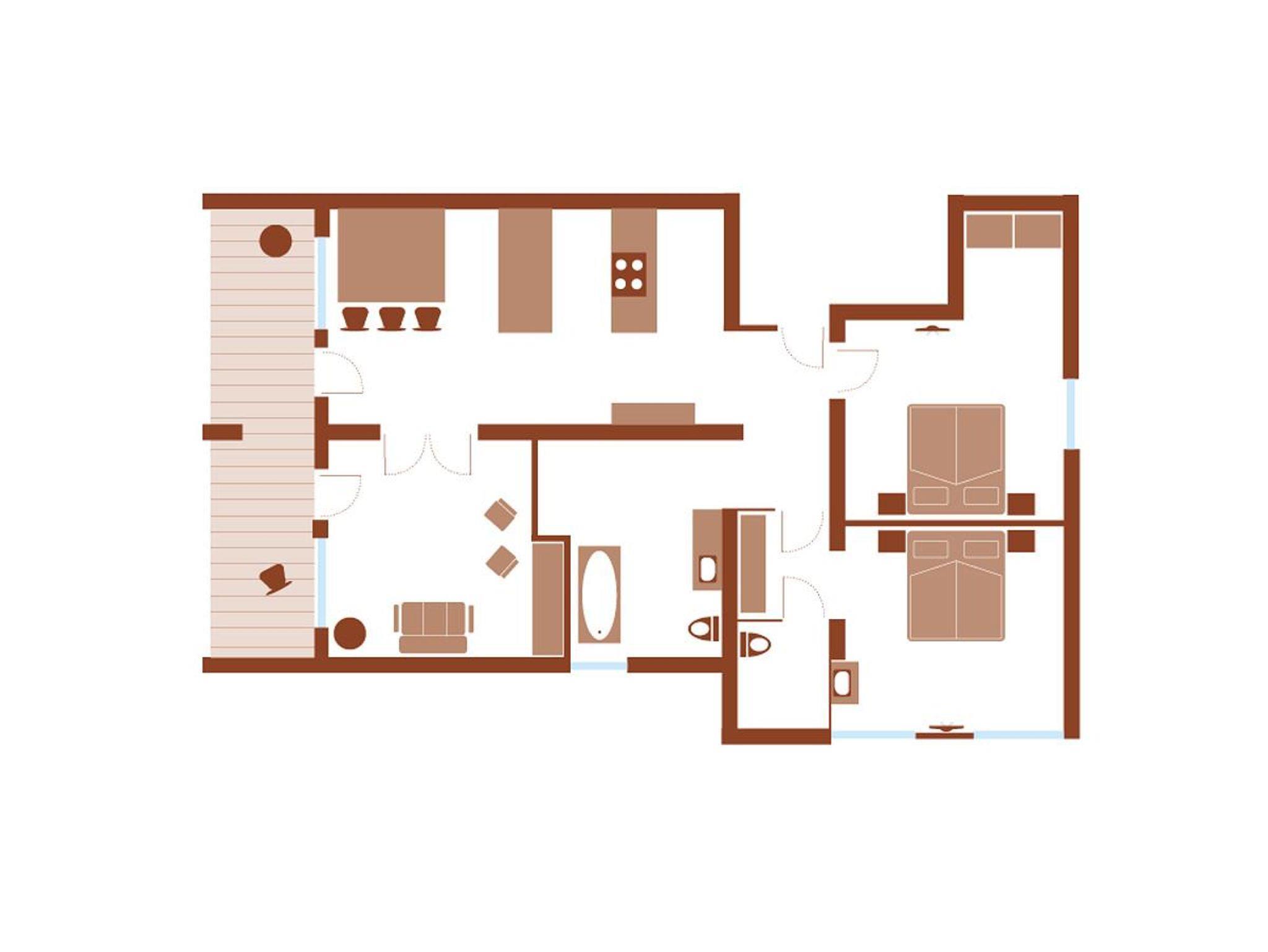 Luxuriös für Zwei, entspannt für Vier oder gemütlich für Sechs. Im Zentrum der Wohnung liegt die großzügige Wohnküche mit großem Esstisch und top eingerichteter Küche. Ein großer Balkon mit mehreren Zugängen lädt zum Verweilen ein. Zum Hauptschlafzimmer gehört ein eigenes Bad, in dem Sie die Infrarotkabine und eine große Badewanne für Ihr privates Spa-Vergnügen finden. Das zweite Schlafzimmer mit eigenem Bad ist ideal für gute Freunde oder ältere Kinder.